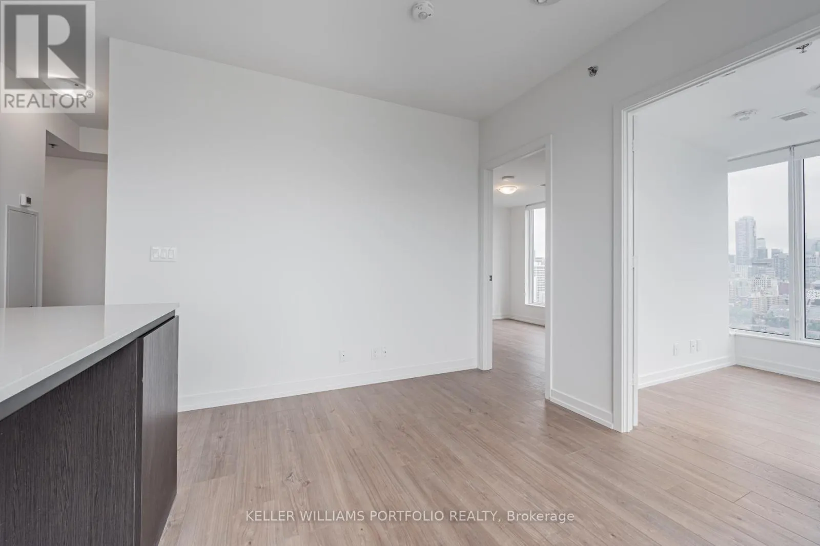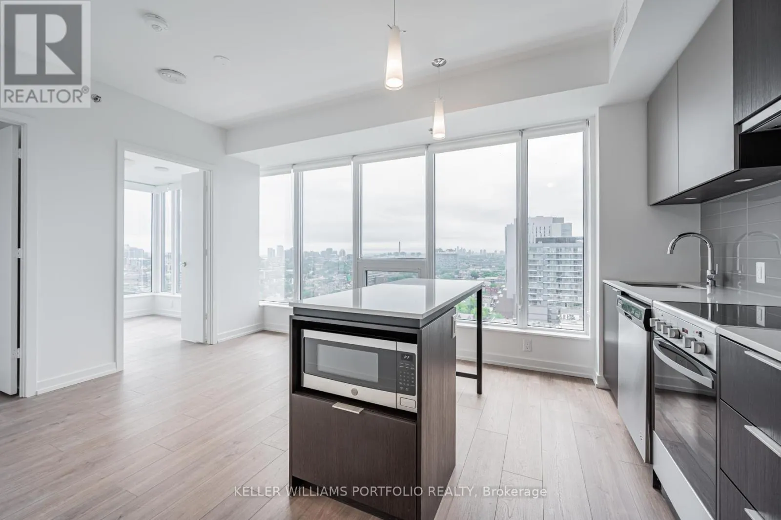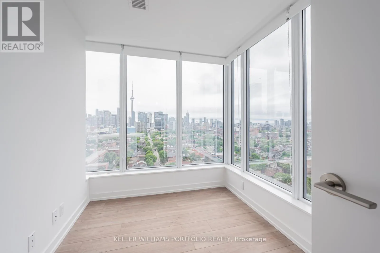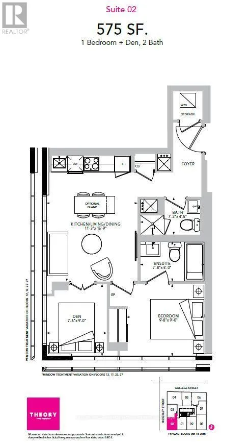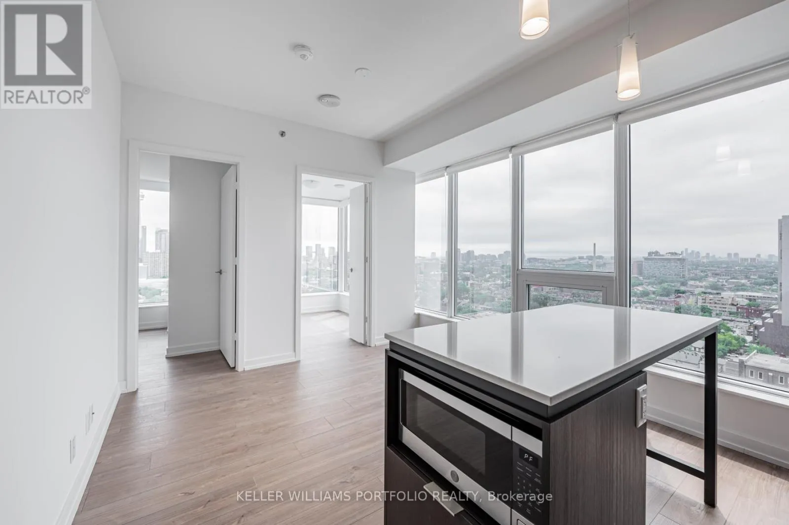 St George / College St Beautiful 1+1 Bedrm. South West Coroner, Den Has South And West Large Window And Door! Unit Comes W/ 2 Full Bathrms! Practical Layout Around 575Sq.Ft No Space To Waste. At The Front Of The South Entrance Of U Of T! Unobstructed Bright CityView, Island Table With Microwave, Quartz Countertop, Laminate Flooring Through Out, Steps To School Banks, Major 5 Hospitals, Restaurants, Queens Park, Shops, Etc. (id:27476)
