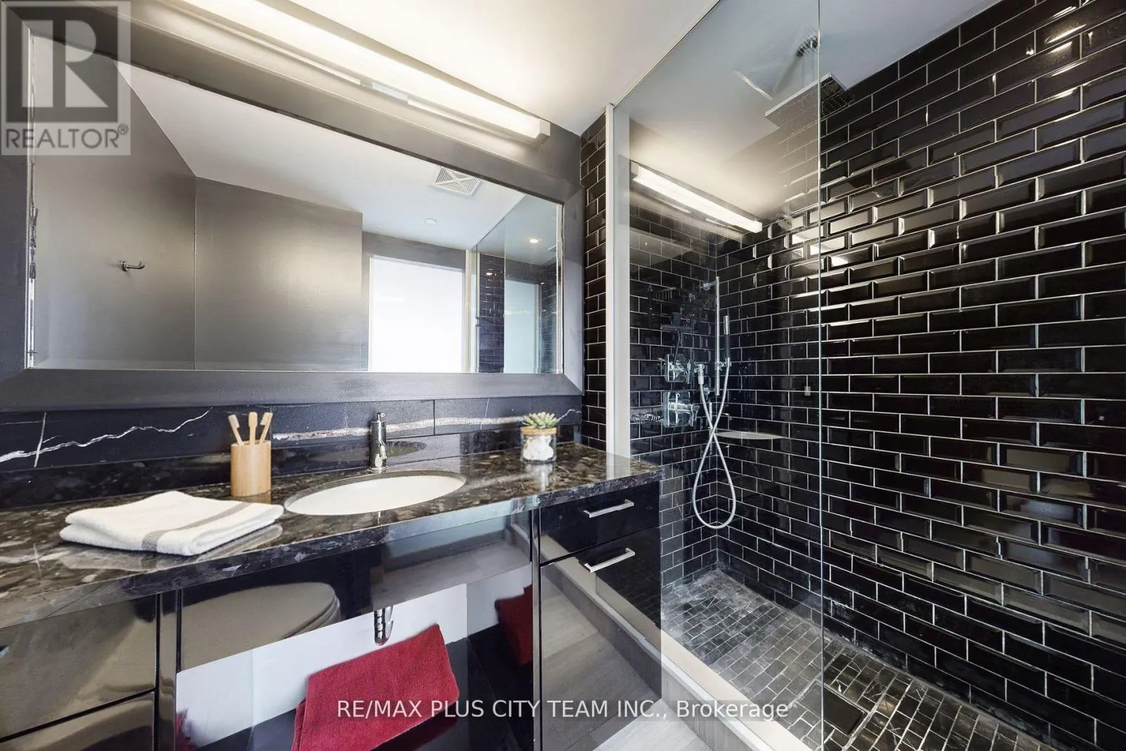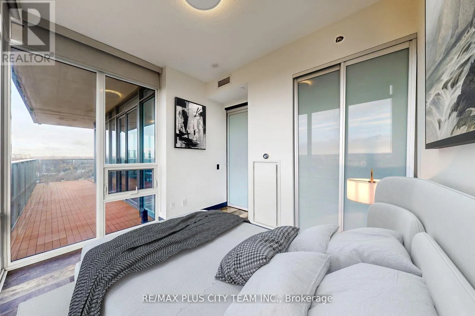 Cross Streets: Lake Shore Blvd & Park Lawn Rd. ** Directions: Park Lawn & Lake Shore Blvd W. Welcome to The Collins, where comfort, style, and convenience come together seamlessly. This beautifully maintained 2-bedroom + den, 2-bathroom corner suite offers 971 sq. ft. of thoughtfully designed living space, highlighted by a rare 237 sq. ft. wraparound terrace - perfect for entertaining, dining, or relaxing outdoors. The open-concept living and dining area (24' x 13'4") is bright and inviting, featuring expansive windows that fill the home with natural light. The modern kitchen is equipped with sleek cabinetry, full-sized stainless steel appliances, a large centre island with breakfast bar seating, and elegant finishes throughout. The split-bedroom layout provides privacy and comfort, ideal for families or professionals. The primary bedroom includes a walk-in closet and a spa-inspired 4-piece ensuite, while the second bedroom offers generous space, large windows, and ample storage. A versatile den makes an excellent home office, reading area, or creative workspace. **Please note that the photos are virtually staged (id:27476)