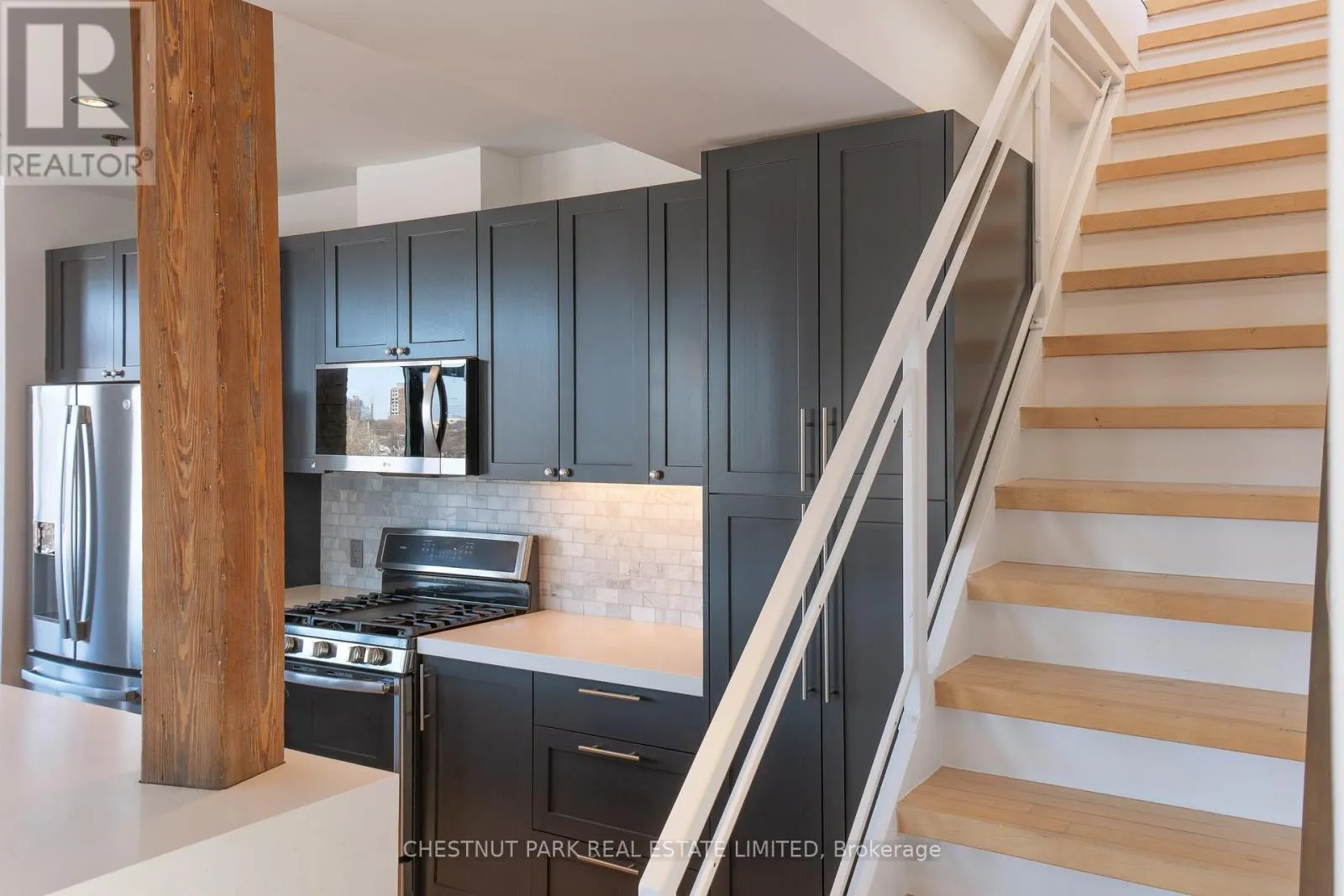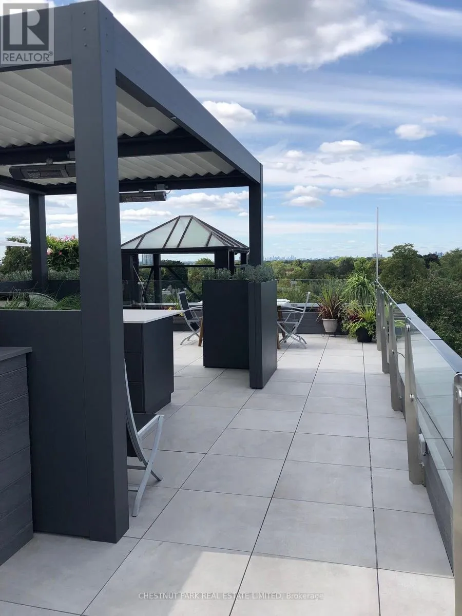 Cross Streets: Roncesvalles Ave & Dundas St W. ** Directions: East of Roncesvalles Ave & South ofDundas St W. This sun-drenched penthouse loft, situated in a boutique, quintessential brick-and-beam loft conversion, features an exceptional 2,400 square feet of indoor living space with direct elevator access, oversized windows throughout, in addition to an expansive 750 square foot rooftop terrace with an outdoor kitchen offering panoramic views of Toronto. The home features soaring ceilings and premium south and west exposure that flood the space with natural light and showcase treetop views and gorgeous sunsets. Located in vibrant Roncesvalles, One Columbus is a former sporting goods factory with only 10 unique & coveted residences. The top level features this beautiful 2-level, 2-bedroom + office, family room, 2-bathroom, charming loft and a rooftop terrace. The generous living room features a wood fireplace, built-in cabinetry and wall-to-wall oversized windows with premium west and north exposures. Walk out to the balcony to enjoy the spectacular sunsets. The living area overlooks the open-concept kitchen, fitted with custom cabinetry, Corian counters, stainless steel appliances, and a gas range. It includes a gorgeous centre island with a double-sided waterfall and a large breakfast bar. The spacious primary bedroom, adjacent to the kitchen, features generous wall-to-wall closets, and a 5-piece ensuite with double sinks, a standalone soaker tub and an oversized glass walk-in shower. The home's second level features a spacious family room, or the option for an additional bedroom, since it includes a convenient 3-piece bathroom. Walk through to the oversized terrace equipped with a kitchen, built-in appliances and breakfast bar -- the perfect backdrop to delight friends, dine al fresco, or enjoy a cocktail at the end of the day. The wall-to-wall, floor-to-ceiling windows offer a seamless transition from indoor to outdoor space. This offering includes an attached 1-car garage with an additional parking space on the private driveway. (id:27476)