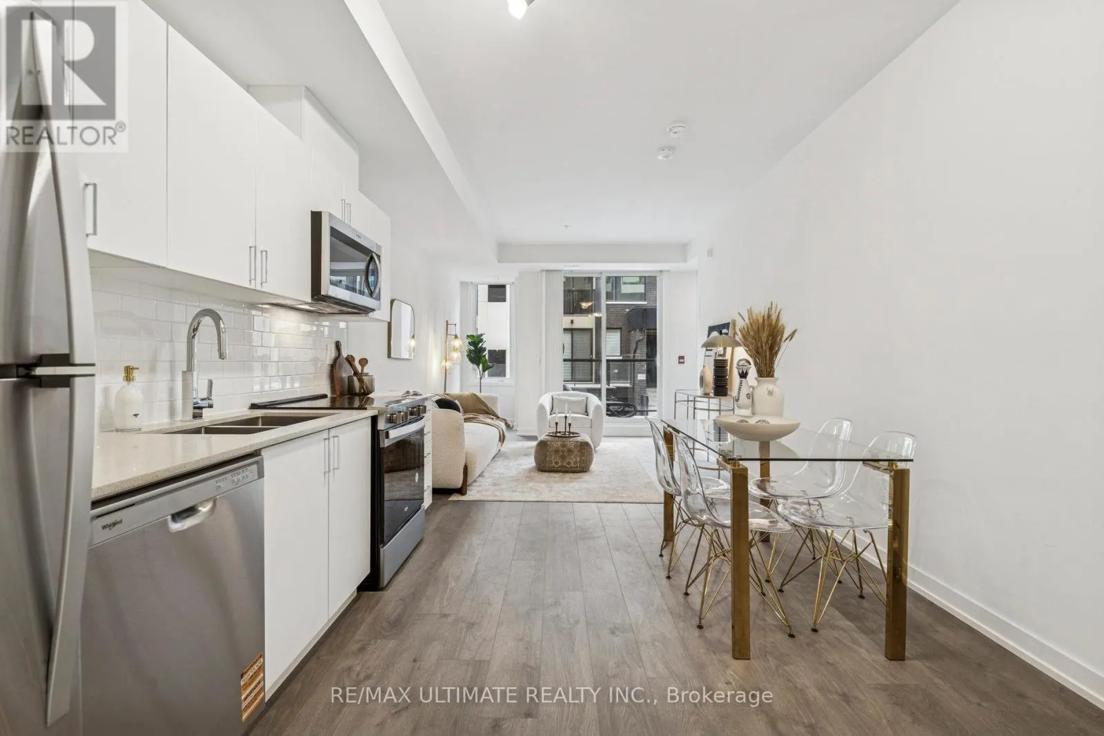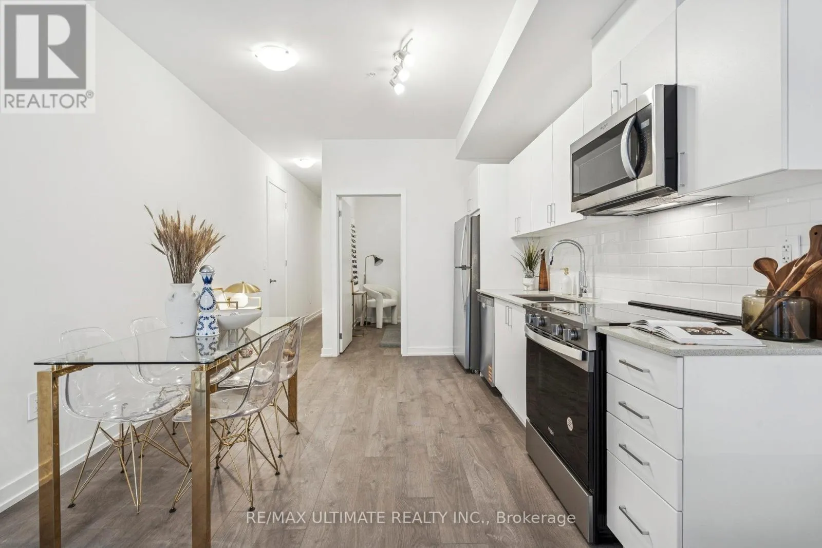 Cross Streets: Victoria Park / Eglinton Ave E. ** Directions: North on DVP, exit at Eglinton E, Left on Sloane Ave and right at Draycott Dr. Discover this never-lived-in, 2-bedroom, 2-bath unit with a secure parking, located at 1680 Victoria Park Ave. This pristine townhouse offers modern finishes, a thoughtful open-concept layout, and abundant natural light and window coverings throughout . The well-appointed kitchen features contemporary cabinetry, quartz countertops, and stainless steel appliances, seamlessly flowing into a bright living/dining area perfect for entertaining. Two spacious bedrooms include a primary suite with a private ensuite with a sleek glassed stand up shower, double sink with quartz top and a walk-in closet, while a second full bathroom adds convenience for guests. The den can be used as an office or guest bedroom. Additional perks include in-unit laundry, ample storage, and a parking space for effortless daily living. Enjoy convenient access to local amenities, the Eglinton LRT transit, shopping at Eglington Square, and quick connectivity to Don Valley Parkway-everything the Victoria Park corridor has to offer, all without ever having lived in this immaculate, move-in-ready residence. The Vic Towns offer additional features such as a party room, pet spa, bike storage, and plentiful visitor parking.1 YEAR ROGERS INTERNET COMPLEMENTARY.ADDITIONAL $35 LOCKER. (id:27476)