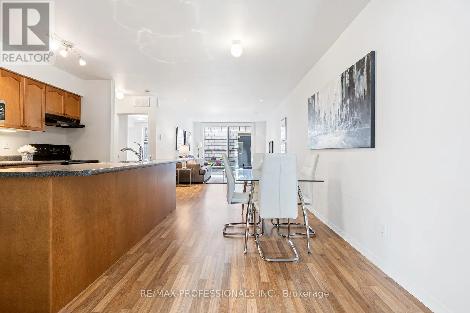 29th Street & Lake Shore Blvd W Welcome to the Lofts on 29th, a boutique 40 unit townhouse complex in the heart of Long Branch offering a rare ground floor suite with versatile live/work potential. This spacious 2 bedroom 1 bath home features a flexible front room that can serve as an office, studio or professional space with direct street access OR the seller is willing to enclose the space to provide a true second bedroom if preferred. The open concept kitchen features a large centre island, double sink and breakfast bar flowing seamlessly into the dining and living areas with laminate floors, pot lights and flat finished ceilings. A walkout leads to a private patio with exclusive direct entry into the underground parking garage and bike storage - a unique & convenient feature enjoyed by only a handful of units! Upgrades include California shutters and recently replaced windows and sliding doors. The primary bedroom is generous in size and the unit also includes ensuite laundry. Perfectly located in a vibrant and fast developing neighbourhood withTTC at your doorstep and close to Long Branch GO station, parks, the lake, restaurants, schools and easy access tohighways, this home offers the ideal blend of convenience, lifestyle and value in one of Toronto's most desirable lakeside communities. ** Seller is willing to enclose the front room to a 2nd bedroom upon request** (id:27476)