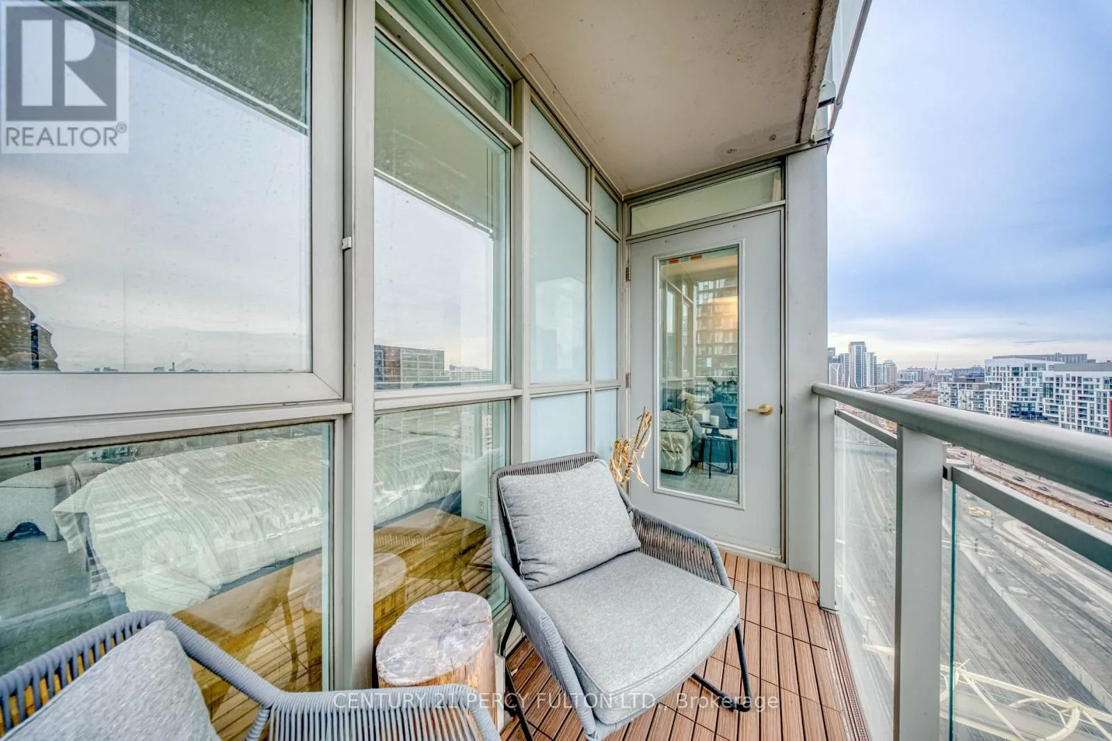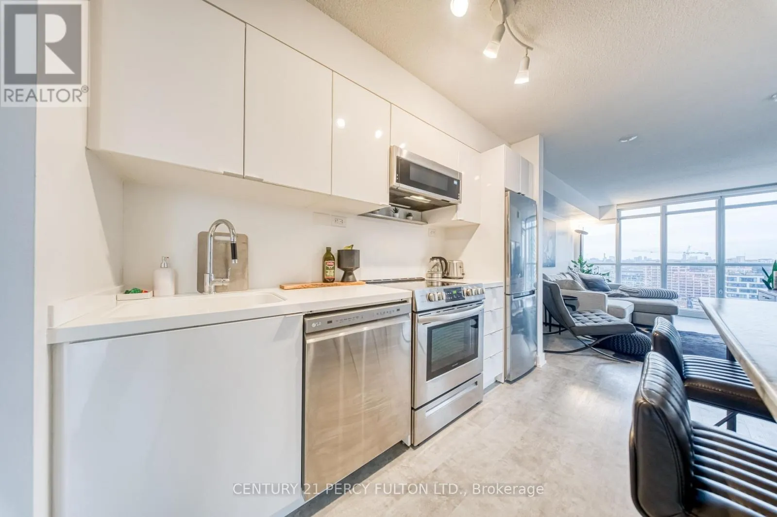 Spadina/Fort York Bright and well-maintained corner unit featuring updated grey vinyl flooring and a modern kitchen with stainless steel appliances. Floor-to-ceiling windows on two sides provide abundant natural light and an airy feel. The unit includes a conveniently located parking spot on P2near the elevators, a large cage locker situated between the parking and elevators, and access to recently renovated building common areas with updated hallway carpets and walls completed in 2025. Can come furnished as well. Inquire for details. (id:27476)