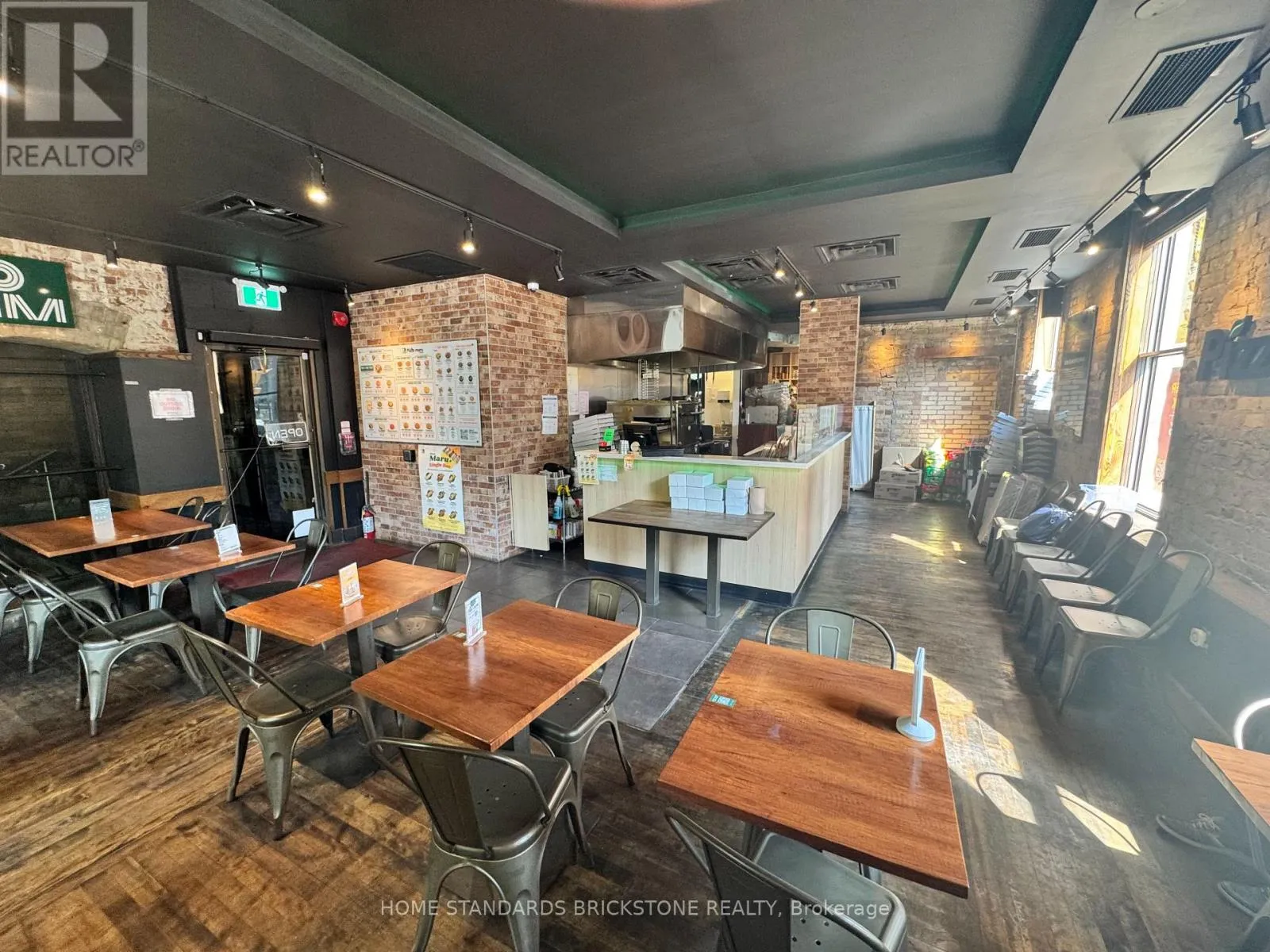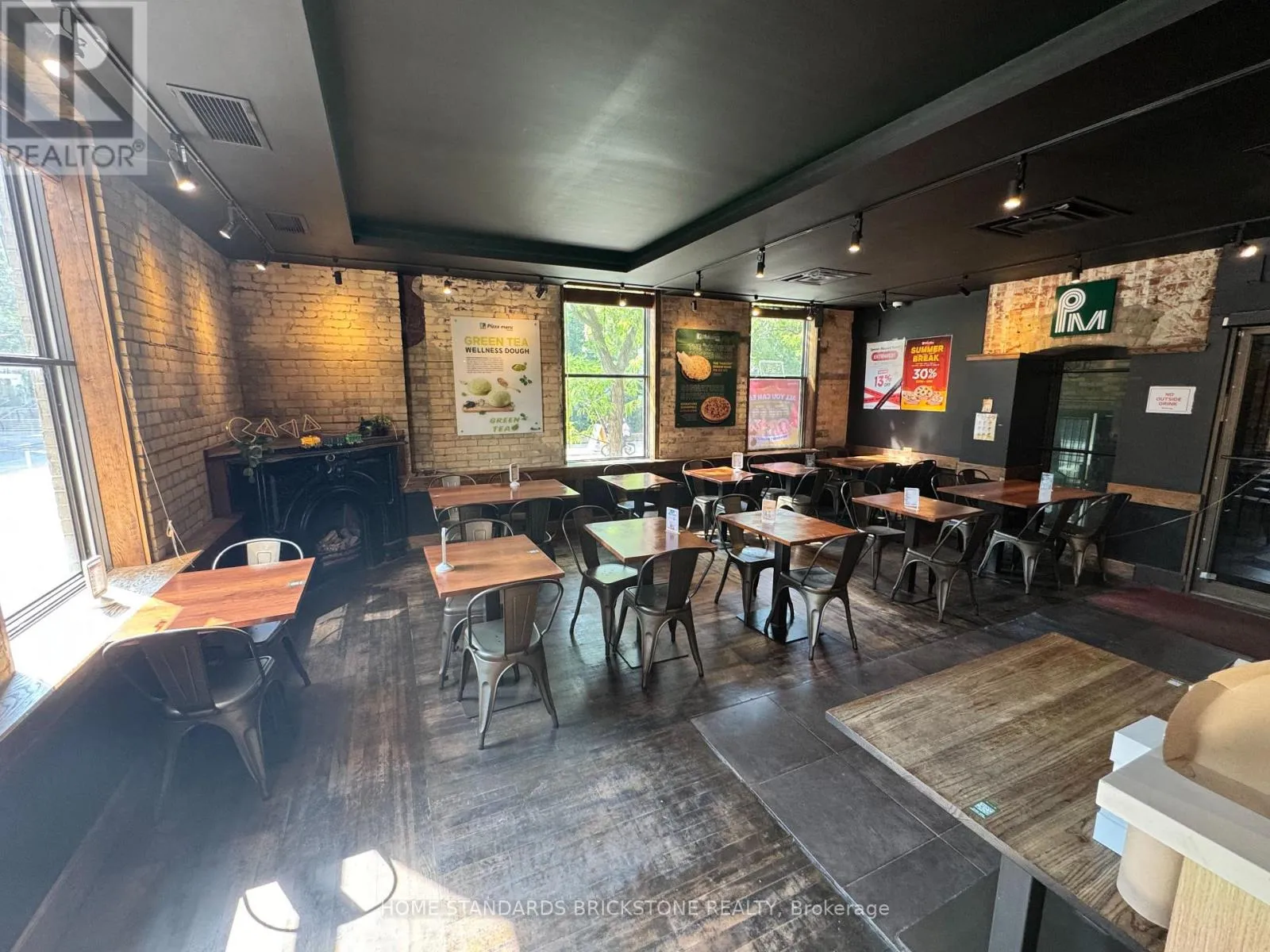 Church St & Gerrard St. Prime corner at Church & Gerrard, a rare opportunity! Turn-key restaurant/retail space featuring double entrances and highly visible dual exposures, fronting two busy streets with constant pedestrian and vehicle traffic day and night. Approx. 1,650 sq. ft., formerly Starbucks and currently operating as a pizzeria, ideally located in the heart of downtown just steps to TMU (Ryerson) campus, University of Toronto, and surrounding student residences. High-visibility corner unit filled with natural light. Features an open kitchen concept with ample prep space and storage, perfectly suited for a wide range of food and beverage operations. - ready to be transformed into your pizzeria, bakery, bar, café, or any eatery concept. (id:27476)