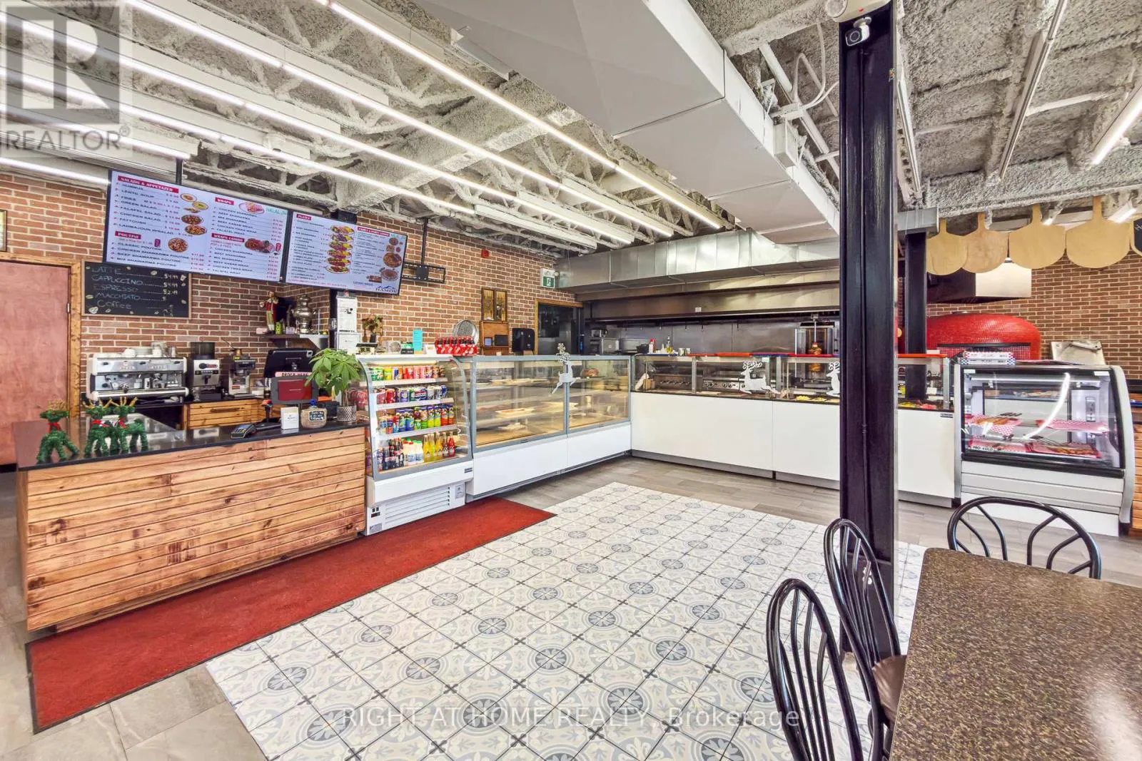 Cross Streets: Right Across Yorkdale Mall, 401 and Dufferin St. ** Directions: West side of Dufferin Street, directly across from Yorkdale Shopping Centre. Opportunity to acquire a business operating from a high-exposure commercial location directly across from Yorkdale Shopping Centre. The business occupies an approximately 2,500 sq ft street-front premises on Dufferin Street. Lease is available and negotiable, subject to landlord approval.The sale includes a significant commercial kitchen build-out and related improvements, installed by prior operators, creating a versatile environment that has supported restaurant operations. The premises may be suitable, subject to approvals, for a range of concepts including restaurant, café, pizzeria, catering operation, commissary or delivery-focused kitchen, or hybrid food and experiential uses such as virtual reality, simulator, or interactive entertainment concepts. (id:27476)