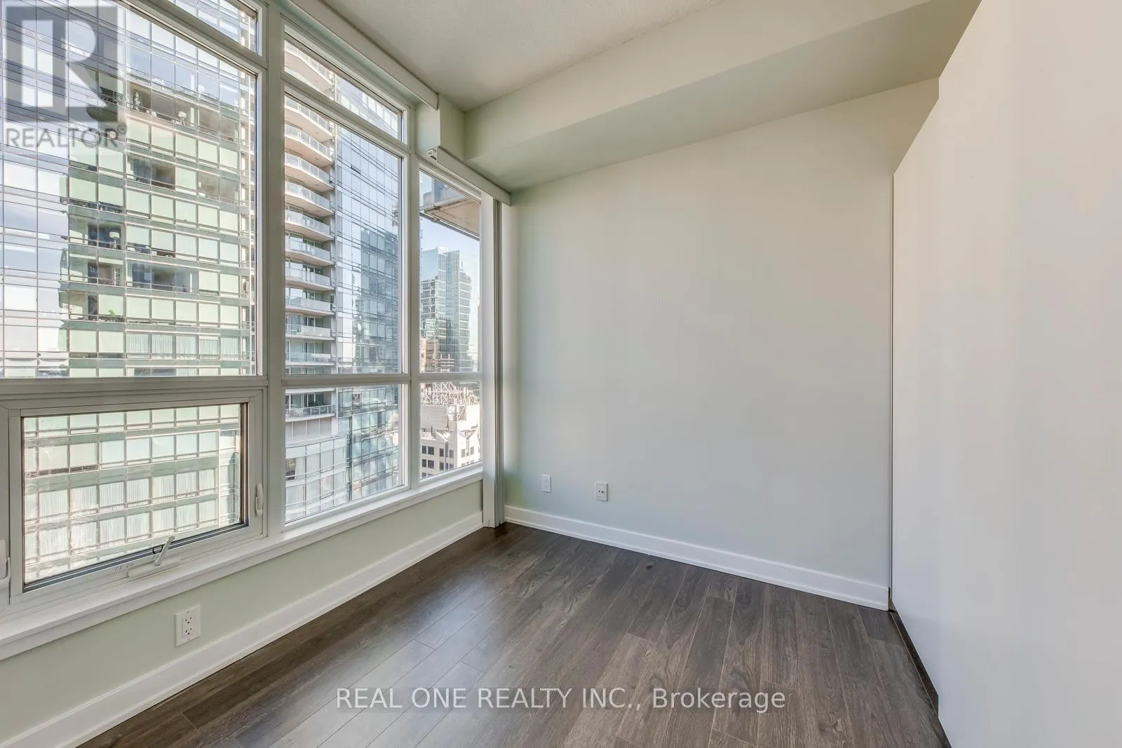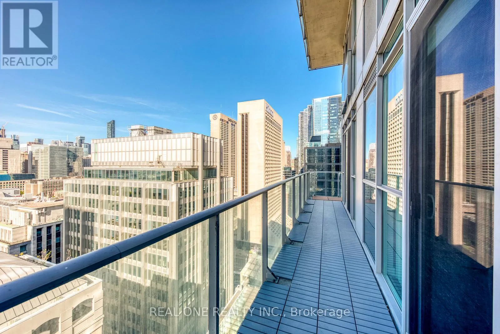 University/Richmond Beautiful Corner Unit with Wrapped-up Balconies, Lots of Natural Lights and Clear Views. One Bedroom Plus Large Enclosed Den (Can Be Used As 2nd Bed with Door and Floor to Ceilling Windows), Open Concept Layout, New Kitchen Cabinets, Granite+Stainless Steel Appliances. Carpet Free Flooring Throughout. Directly Across From Shangri-La Hotel, Walk To Financial District, Subway, Restaurants, The Path, Hospitals. (id:27476)