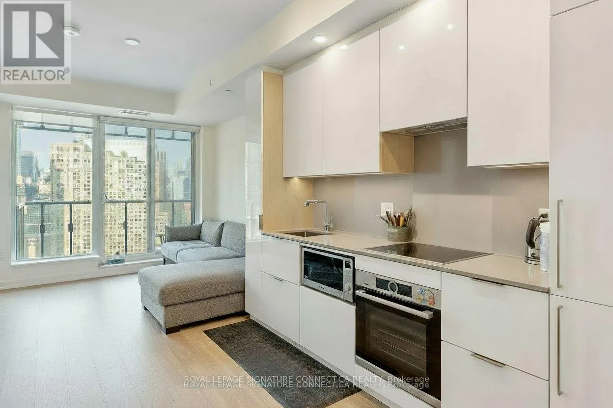 Cross Streets: Yonge St and Queens Quay E. ** Directions: From Queens Quay turn north onto Freeland st. Experience the pinnacle of luxury urban living at The Prestige perfectly situated in the vibrant heart of downtown Toronto. This stunning 1+den suite features 9-foot smooth ceilings, expansive windows, and abundant natural light throughout. Sleek laminate flooring adds a modern, sophisticated touch, while the gourmet kitchen is equipped with high-end built-in appliances and contemporary finishes.The versatile den can be used as a second bedroom or a private home office, ideal for today's urban lifestyle. Residents of 28 Freeland Street enjoy access to exceptional building amenities, including a 24-hour concierge, state-of-the-art fitness and weight areas, yoga and spin studios, sports lounge, business, board, meeting, study, and party rooms, and a kids' zone. Outdoor amenities include a rooftop walking track with exercise stations, rooftop terrace lounge areas with fireplace, outdoor dining and barbecue areas, tanning deck, lawn bowling, and a children's play area. Additional conveniences include a pet spa and grooming room, guest suites, and direct access to the One Yonge Community Recreation Centre, offering expanded recreational and community facilities. (id:27476)