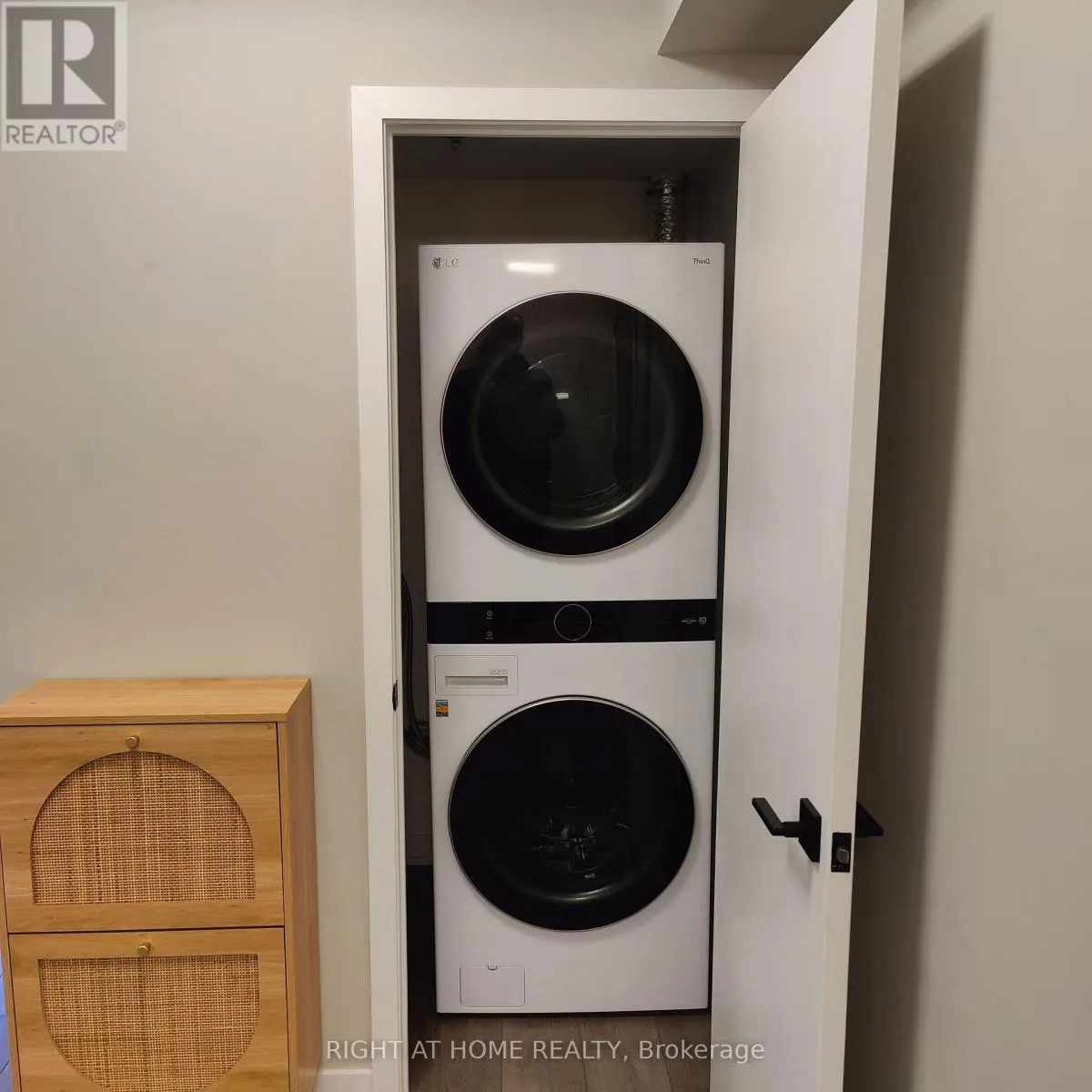 Cross Streets: O'Connor Drive & Yardley Avenue. ** Directions: DVP To Eglington Ave East To Bermondsey Road South. Modern Boutique Style Condo With Excellent Layout, Corner Suite with South West Exposure, Open Concept Floor Plan, 2 Beds With 2 Full Baths, Each With Their Own Bathrooms!, Modern Laminate Throughout, Kitchen With S/S Appliances, Moveable Centre Island With Two Leather Chairs, Extended Cabinets, Pentry - Perfect For Professionals, Relocations, or Those In Between Homes. Ensuite Laundry with Storage Shelving & Full Size LG Washer/Dryer, Open Balcony, The Strike Club, Skyview Fitness, Yoga Centre, Skydock Lounge With BBQ"s! Transit, Shopping, Schools & Parks @ Your Doorstep! (id:27476)