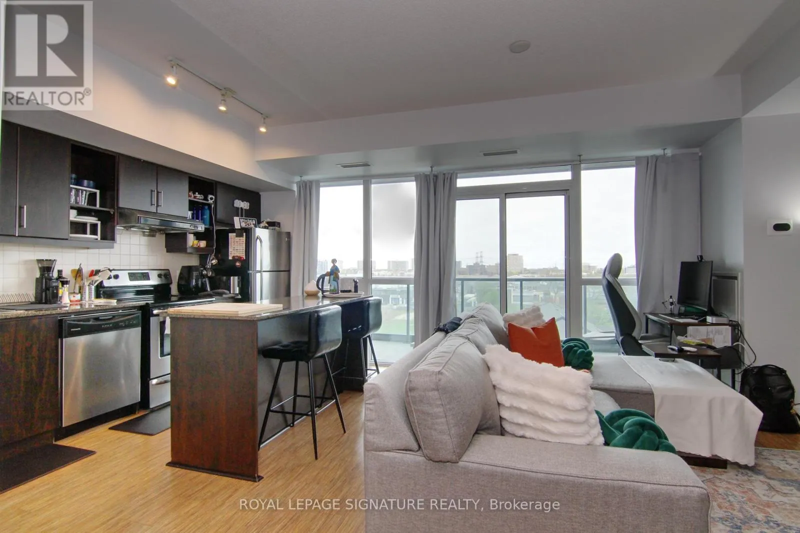 Cross Streets: Leslie & Eglinton. ** Directions: Buzz security in roundabout at Brian Peck Cres; garage entrance through Glassworks Dr. This is a great south-facing 1BR unit located at Scenic on Eglinton in Leaside! Bright & spacious open concept layout, bamboo laminate throughout, stainless steel appliances, large balcony with unobstructed south views. Short walk to many shops, restaurants, & services in the area, including future LRT stations! One of the city's best park networks nearby. Multiple grocery stores in the neighbourhood. Great building amenities including 24h security, gym, party room, pool, guest suites, plenty of visitor parking, & more! (id:27476)