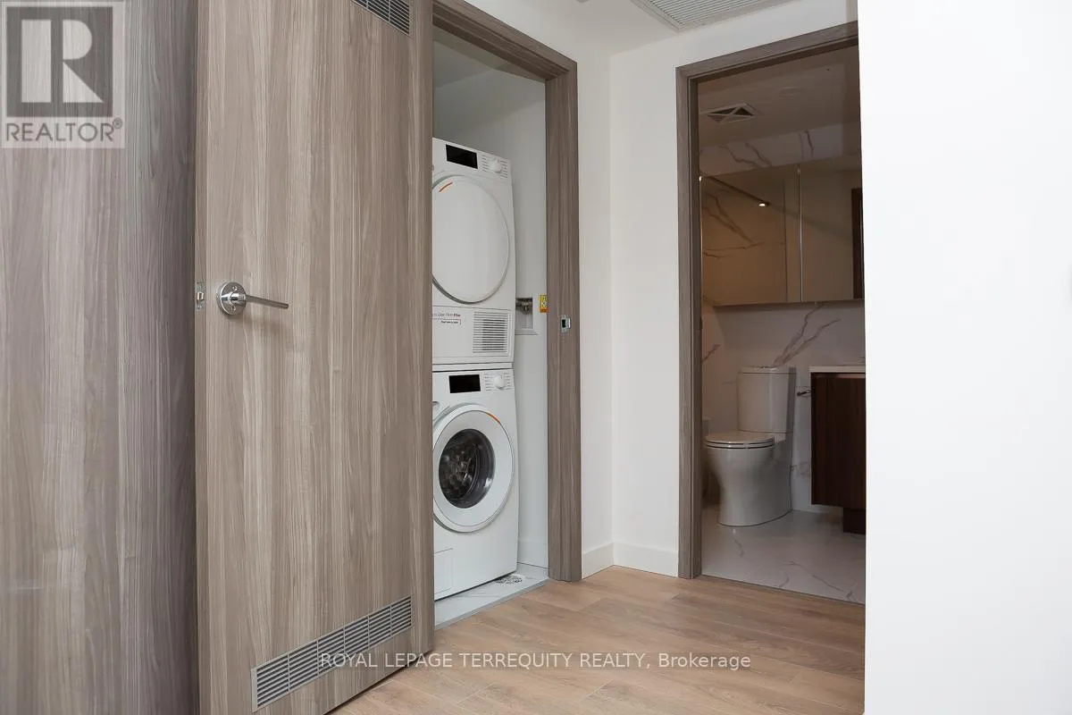 Spadina & Bremner Blvd The brand-new luxury building, Concord Canada House is conceived as the most luxurious residential development within Concord CityPlace. This modern, one-bedroom and one-bathroom open-concept corner unit offers approximately 540 sq. ft. of efficient, elegantly designed interior living space. It is within minutes' walk to the CN Tower, Rogers Centre, Scotiabank Arena, Union Station, The Well, the Financial District, the Waterfront, and various dining and entertainment venues. There is also easy access to trails along the marina and Billy Bishop (YTZ) Airport. Enjoy an impressive collection of amenities, including: A state-of-the-art fitness centre and Sky Gym, The 82nd-floor Sky Lounge and lobby lounge, An indoor swimming pool, hot tub, and sauna, An outdoor ice skating rink and BBQ area, Wine lockers, guest suites, and smart parcel lockers. The suite features premium finishes throughout, including a modern gourmet kitchen with high-end Miele appliances, engineered flooring, and an abundance of natural light. Additional perks include a year-round heated balcony, one storage locker, and all utilities included except for hydro. (id:27476)