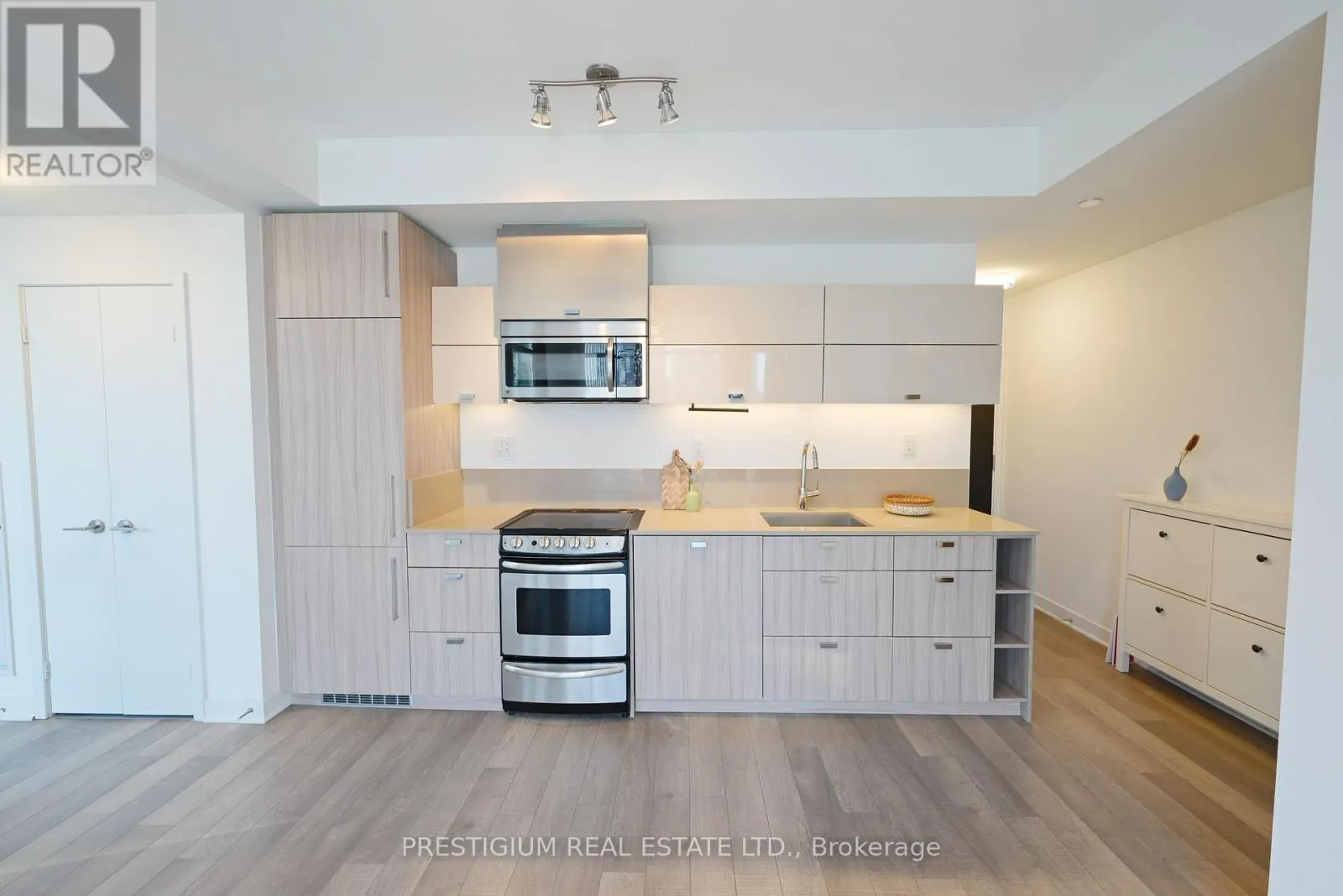 Adelaide St W/John St Welcome to this stunning southeast-facing corner suite offering over 800 square feet of bright, beautifully designed living space. Floor-to-ceiling windows wrap the unit, filling it with natural light and showcasing spectacular city views. Every detail reflects modern elegance - from the 9-foot ceilings and contemporary cabinetry to the designer bathrooms and sleek finishes throughout.The gourmet kitchen features premium stainless steel appliances, quartz countertops, and an undermount sink, perfect for both entertaining and everyday living. The open-concept layout creates a seamless flow, maximizing functionality with no wasted space.Located steps from Toronto's most iconic landmarks, the Financial District, premier dining, world-class entertainment, and effortless transit access, this residence captures the essence of sophisticated downtown living. (id:27476)