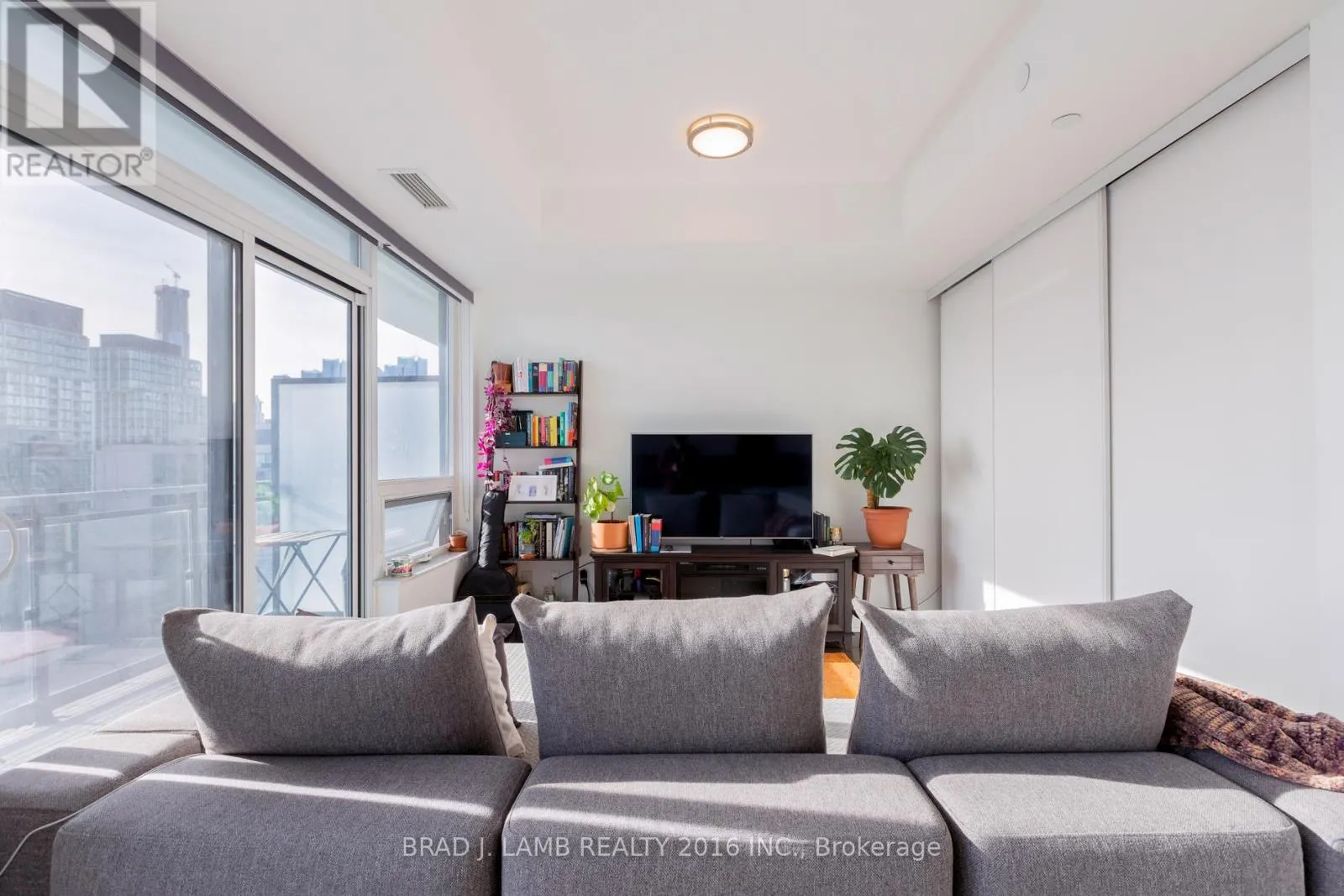 Adelaide St. + Sherbourne St. Flooded with natural light, this south-facing studio features soaring 9-ft ceilings and floor-to-ceiling windows with blackout blinds. A smart, modern layout includes an integrated kitchen, a private balcony, and a well-appointed 4-piece bathroom with a deep soaker tub. Ideally located in the heart of downtown Toronto, just steps to streetcars, St. Lawrence Market, cafés, and nearby parks-offering an exceptional walkable urban lifestyle. Includes: 1 Storage Locker and Ensuite Laundry. (id:27476)