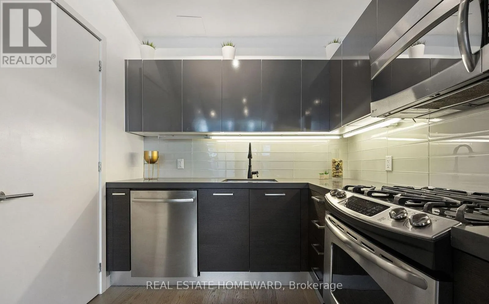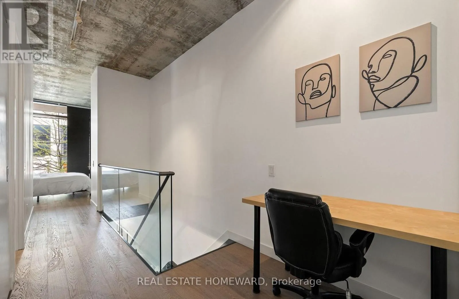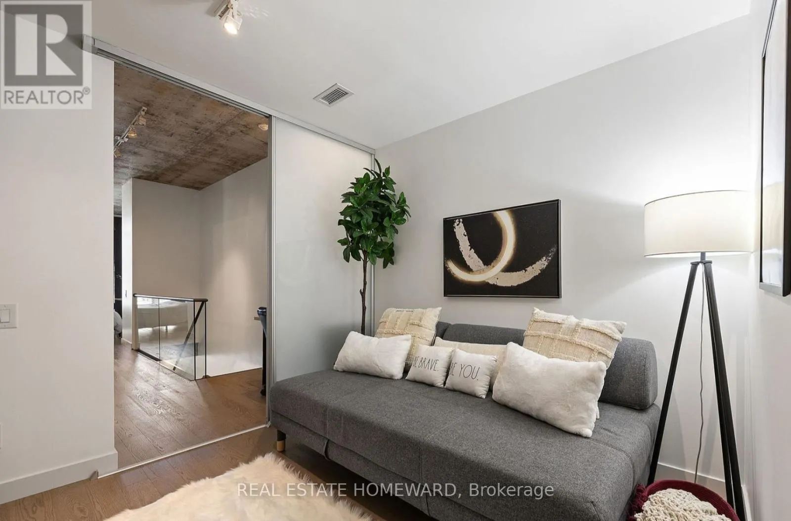 Cross Streets: Stafford/King. ** Directions: South of King on Stafford. Fully Furnished Rental with Parking & Utilities Included! Welcome to TH9 at Parc on Stanley Park, an exclusive boutique residence on quiet Stafford Street that has earned a loyal following for its modern simplicity and understated elegance. This spacious two-storey townhome offers a large one-bedroom plus a generous 11' x 10' den perfect as a second bedroom, home office, or guest space. Featuring soaring ceilings, exposed concrete feature walls, and an architectural steel I-beam staircase, the home blends industrial character with contemporary comfort. The open-concept main floor boasts a sleek modern kitchen with gas cooking and a seamless walkout to your private patio. Enjoy the convenience of direct outdoor access thats right, no elevators! Building amenities and the neighbourhood complete the lifestyle: Stanley Park with off-leash dog run, Trinity Bellwoods Park, Queen West, and King Street West all just a 5-minute walk away. 504 Streetcar stop around the corner for easy downtown access. This rental includes furnished interiors, parking, locker, and utilities a true turnkey living experience in one of Torontos most desirable pockets. (id:27476)