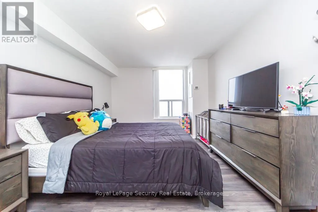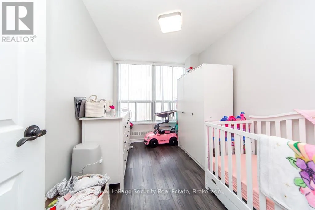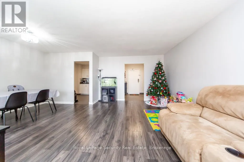 Eglinton / Scarlett Welcome to 85 Emmett. This bright & spacious north facing apartment is clear of any obstructions. Freshly painted with large primary bedroom & den. Laminate throughout the unit, updated kitchen & bath. Maintenance fees include heat, water, parking, TV, internet. Amenities include gym, kids play area, 24 hour security, pool room, sauna, outdoor pool, BBQ area, party room and kids outdoor playground. TTC in front, future LRT, parks, highways, schools and shopping all nearby. (id:27476)