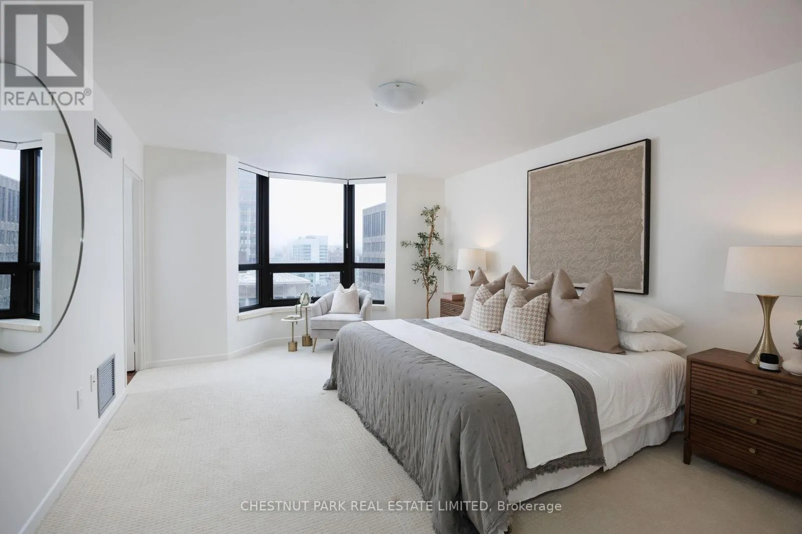 Cross Streets: Wellesley St W/Bay St. ** Directions: Between Bay St and University Ave. Introducing Suite 1903 - a refined and spacious 2 Bedroom + Den, 2 Bathroom residence offering more than 1,600 sq.ft. of elevated living in one of Toronto's most distinguished boutique addresses. Positioned high on the 19th floor, this impressive suite is wrapped in brilliant natural light, showcasing sweeping south-facing city views that create a striking backdrop from morning to night. Extensively updated with a modern, cohesive design, the home features a beautifully renovated kitchen with clean contemporary finishes, luxuriously refreshed bathrooms, newly refinished hardwood flooring, smooth ceilings, and a sophisticated designer paint palette. Automated blinds throughout provide effortless comfort, while generous in-suite storage blends seamlessly into the home's elegant aesthetic. Both bedrooms are thoughtfully proportioned, including a serene primary retreat with a large walk-in closet complete with custom organizers. The versatile den offers endless possibilities - ideal as a dedicated office, quiet reading nook, or personal library. Built-in speaker wiring throughout the main living areas and primary bedroom enhances the overall living experience. Located just steps from Yorkville, Bay Street, Queen's Park, and the University of Toronto, this exceptional suite delivers a rare combination of scale, light, and urban convenience. Notable Upgrades: updated electrical thermostats, new automatic blinds throughout, refinished hardwood floors, fresh paint, new countertop in second bathroom, updated outlets and lighting, built-in closet organizers in the primary suite, and freshly cleaned bedroom carpets. 1 Parking Spot + 1 Bike Spot. Building Amenities: squash court, fitness centre, outdoor terrace, beautiful indoor pool, 24/7 concierge/security, and abundant visitor parking. (id:27476)