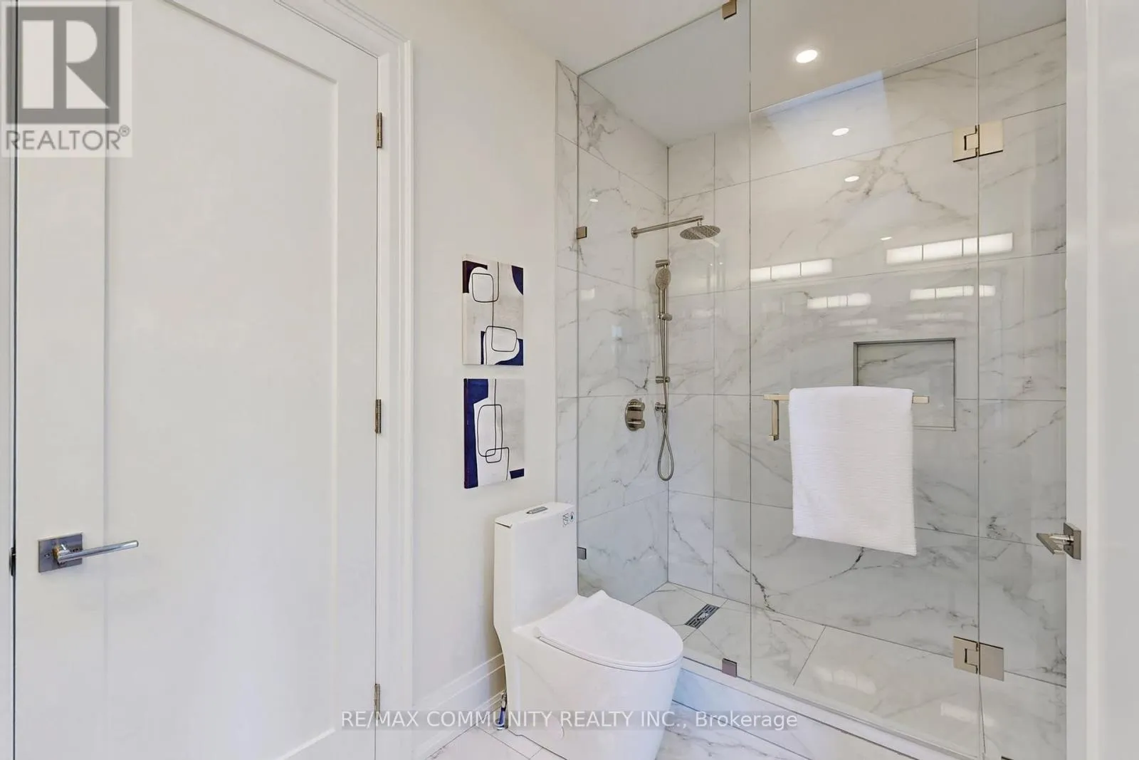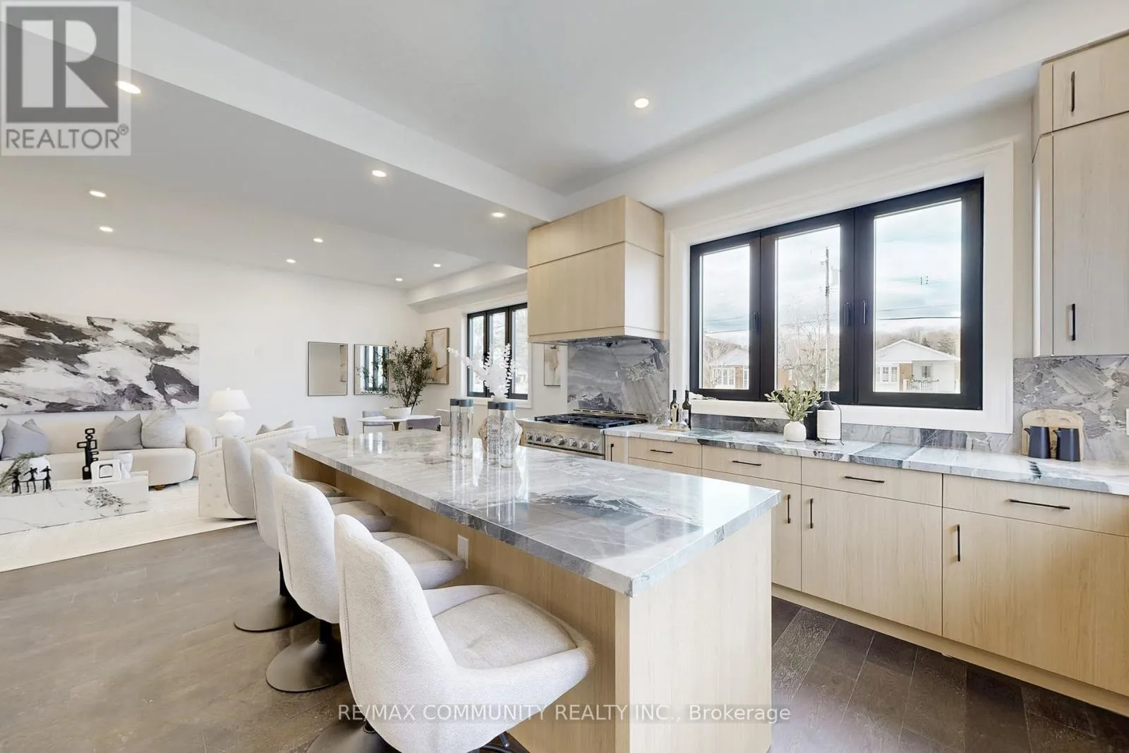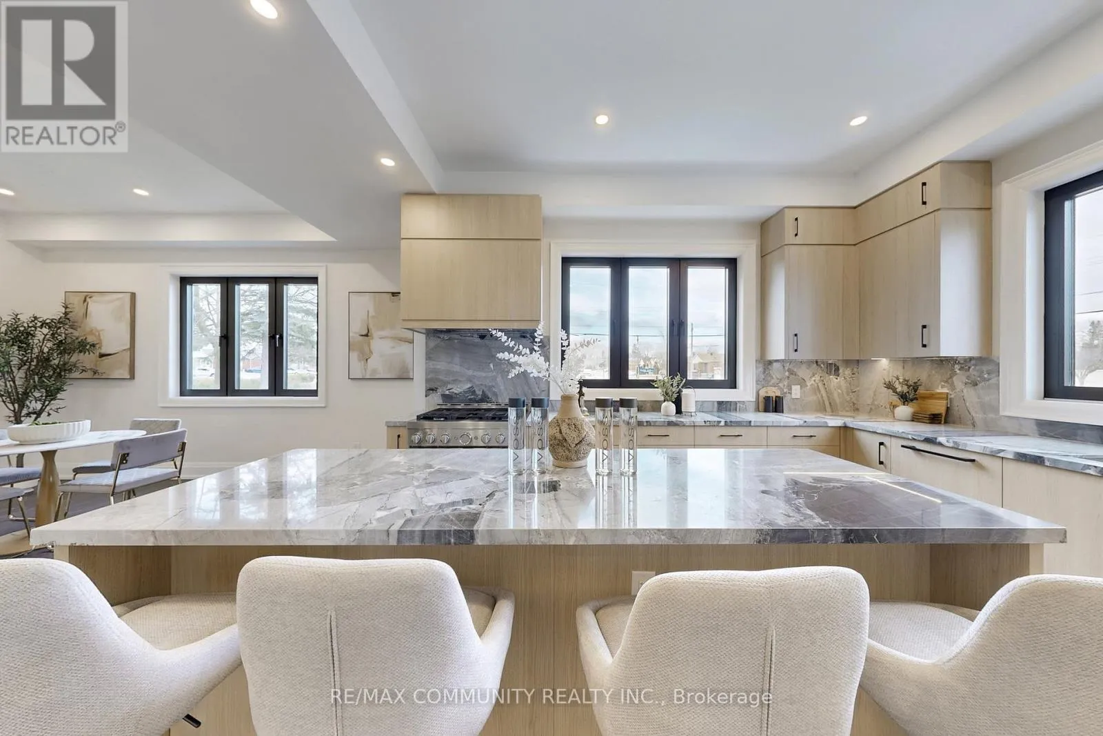 Cross Streets: WARDEN/LAWRENCE. ** Directions: Right onto Marble Arch Cres, Corner lot #122. Welcome to this newly built luxury residence in Toronto's GTA, designed for discerning buyers seeking both elegance and practicality. Set on a generous lot, the stone and brick façade with gabled rooflines, covered porch and Juliette balcony set an impressive tone. Inside, wide-plank hardwood flooring, soaring ceilings and a striking floating staircase introduce the main level. A light-filled family/dining room with fireplace flows to the expansive chef's kitchen, which showcases custom flat-panel cabinetry, a waterfall-edge island with seating, professional 6-burner range, built-in refrigerator and a secondary dirty kitchen for prep. A formal living/dining area, full guest suite, powder room and mudroom with garage access complete this floor. Upstairs, the principal bedroom retreat boasts room for a sitting area, a massive walk-in closet and a spa-inspired 5-piece ensuite with freestanding tub, oversized glass shower and double vanity. Three additional bedrooms -- one with its own ensuite -- share a stylish 4-piecebath, while a central laundry room and a versatile den/office provide everyday convenience. The lower level is unique: one side contains a rec room, den, mechanical/storage and bath, perfect for a home theatre or gym, while the other side is a legally registered 2-bedroom suite featuring its own entrance, full kitchen, living/dining area, bath and laundry -- ideal for income, extended family or a nanny. High-efficiency HVAC, sump pump, abundant storage and thoughtful sound/fire separation deliver peace of mind. A single built-in garage plus paved driveway, rear deck and fenced yard complete the package. (id:27476)