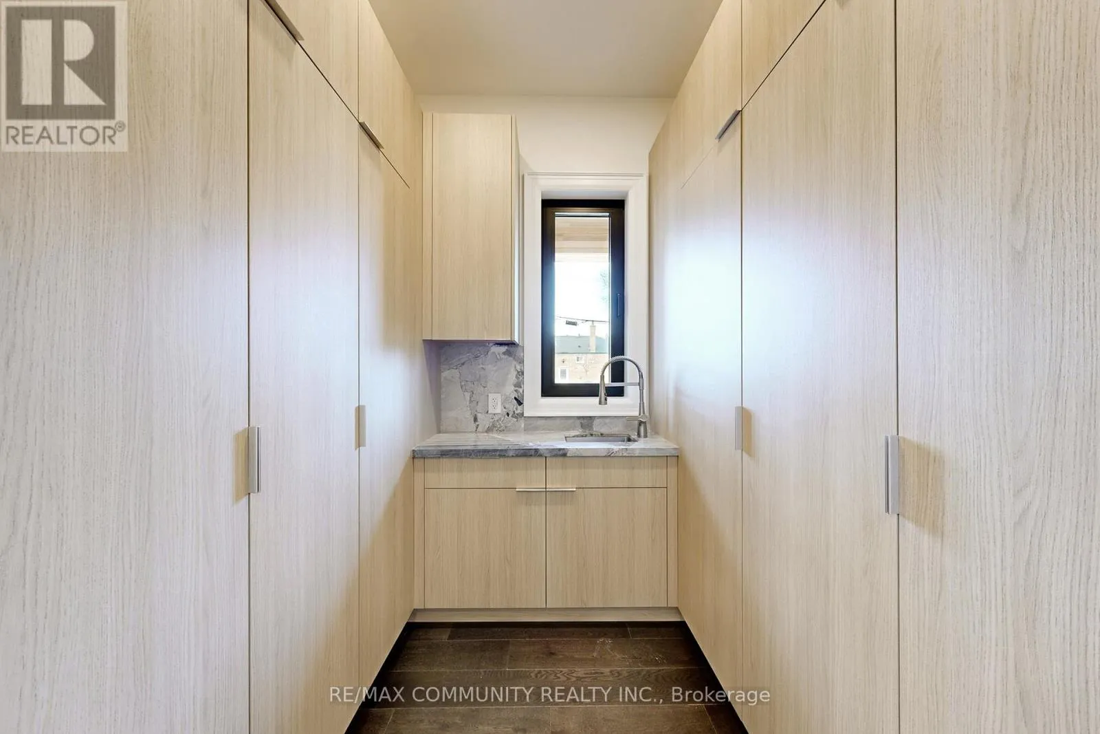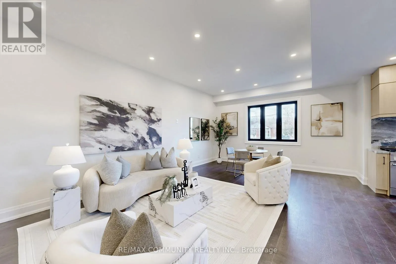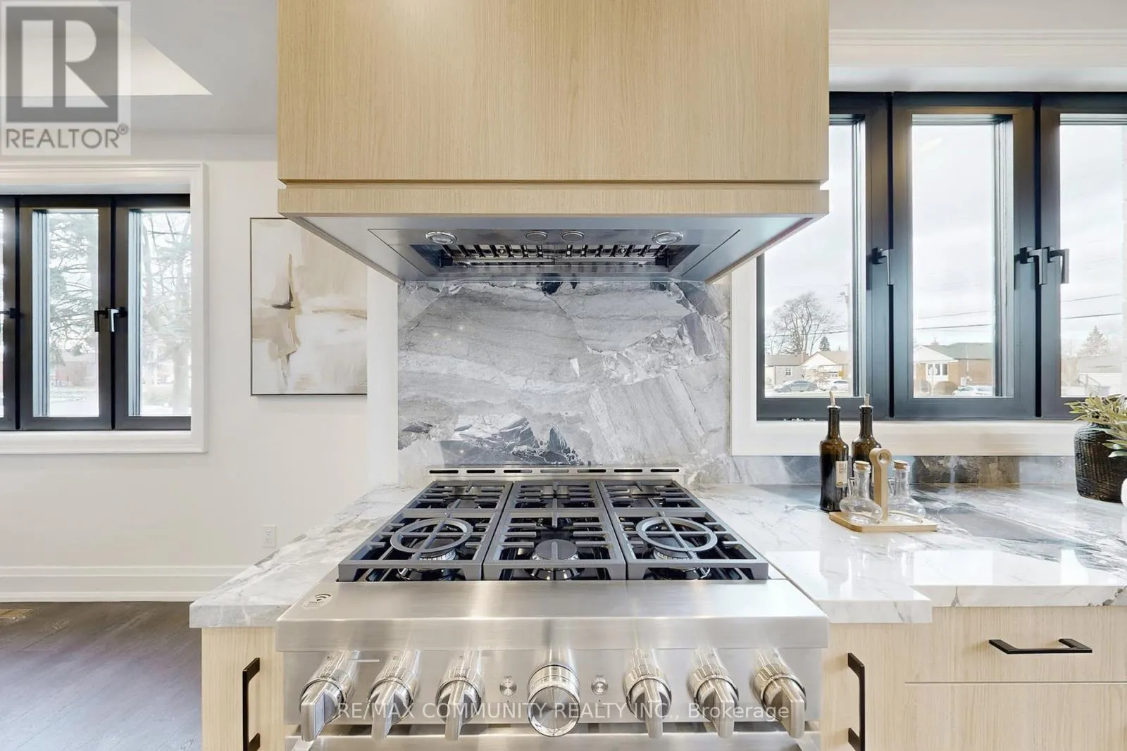 Cross Streets: WARDEN/LAWRENCE. ** Directions: Right onto Marble Arch Cres, Corner lot #122. Welcome to this newly built luxury residence in Toronto's GTA, designed for discerning buyers seeking both elegance and practicality. Set on a generous lot, the stone and brick façade with gabled rooflines, covered porch and Juliette balcony set an impressive tone. Inside, wide-plank hardwood flooring, soaring ceilings and a striking floating staircase introduce the main level. A light-filled family/dining room with fireplace flows to the expansive chef's kitchen, which showcases custom flat-panel cabinetry, a waterfall-edge island with seating, professional 6-burner range, built-in refrigerator and a secondary dirty kitchen for prep. A formal living/dining area, full guest suite, powder room and mudroom with garage access complete this floor. Upstairs, the principal bedroom retreat boasts room for a sitting area, a massive walk-in closet and a spa-inspired 5-piece ensuite with freestanding tub, oversized glass shower and double vanity. Three additional bedrooms -- one with its own ensuite -- share a stylish 4-piecebath, while a central laundry room and a versatile den/office provide everyday convenience. The lower level is unique: one side contains a rec room, den, mechanical/storage and bath, perfect for a home theatre or gym, while the other side is a legally registered 2-bedroom suite featuring its own entrance, full kitchen, living/dining area, bath and laundry -- ideal for income, extended family or a nanny. High-efficiency HVAC, sump pump, abundant storage and thoughtful sound/fire separation deliver peace of mind. A single built-in garage plus paved driveway, rear deck and fenced yard complete the package. (id:27476)