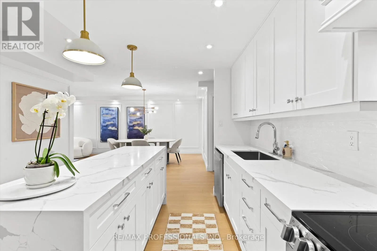 Burnhamthorpe/Mill Welcome to this beautifully renovated, boutique-like 3-bedroom, 2-bathroom corner unit, offering over 1,100 square feet of modern living space. Flooded with natural light from multiple exposures, the layout feels open and airy the moment you walk in. The home features Canadian-made laminate floors throughout, elegant wainscoting, sleek pot lighting, and custom-built closets that maximize storage. The custom-designed, open-concept kitchen with a waterfall island is a true showstopper, complete with all-new appliances and refined quartz countertops-perfect for cooking, entertaining, and everyday living. Luxury is redefined in both bathrooms, featuring Italian-made tiles and tasteful modern finishes. Every room feels bright, spacious, and inviting. Fully updated from top to bottom, this move-in ready unit truly redefines luxury and comfort. Maintenance fees are all-inclusive, covering hydro, heat, water, air conditioning, Rogers cable, and high-speed unlimited internet. The building offers an impressive array of amenities, including indoor and outdoor pools, sauna, a newly renovated recreation center with gym, ping pong, squash court, golf simulator, party room, outdoor playground, basketball court, and tennis court. Ideally located next to top-rated schools and Centennial Park, with TTC at your doorstep and quick access to Highways 427, 401, and QEW, airport, shopping, golf, and more-just move in and enjoy! (id:27476)