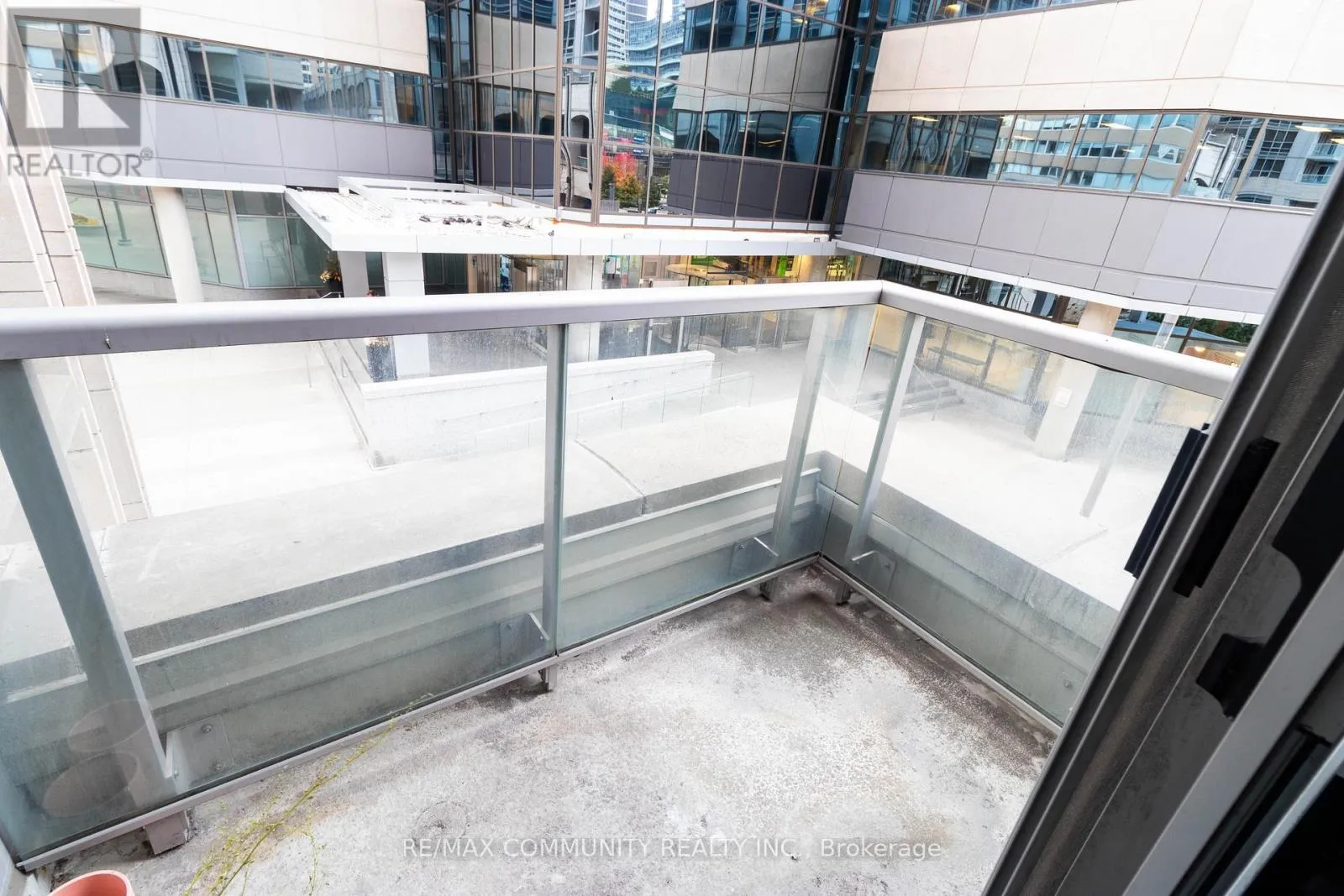 Cross Streets: Bay & College. ** Directions: Right on the intersection South East Corner of Bay and College. Experience refined downtown living at the Residences of College Park! Suite 202 offers a bright and functional layout with soaring ceilings and full-height windows that flood the space with natural light. The modern kitchen boasts granite countertops, a breakfast bar, and quality appliances, opening to a spacious living and dining area that extends to a private balcony overlooking College Park. The primary bedroom features generous closet space and a serene retreat after a long day. Enjoy five-star amenities including 24-hour concierge, indoor pool, fitness centre, party room, and direct underground access to the subway, shopping, and restaurants. Steps to U of T, Toronto Metropolitan University, hospitals, and the Financial District -- ideal for professionals, students, or investors seeking premium urban convenience. (id:27476)