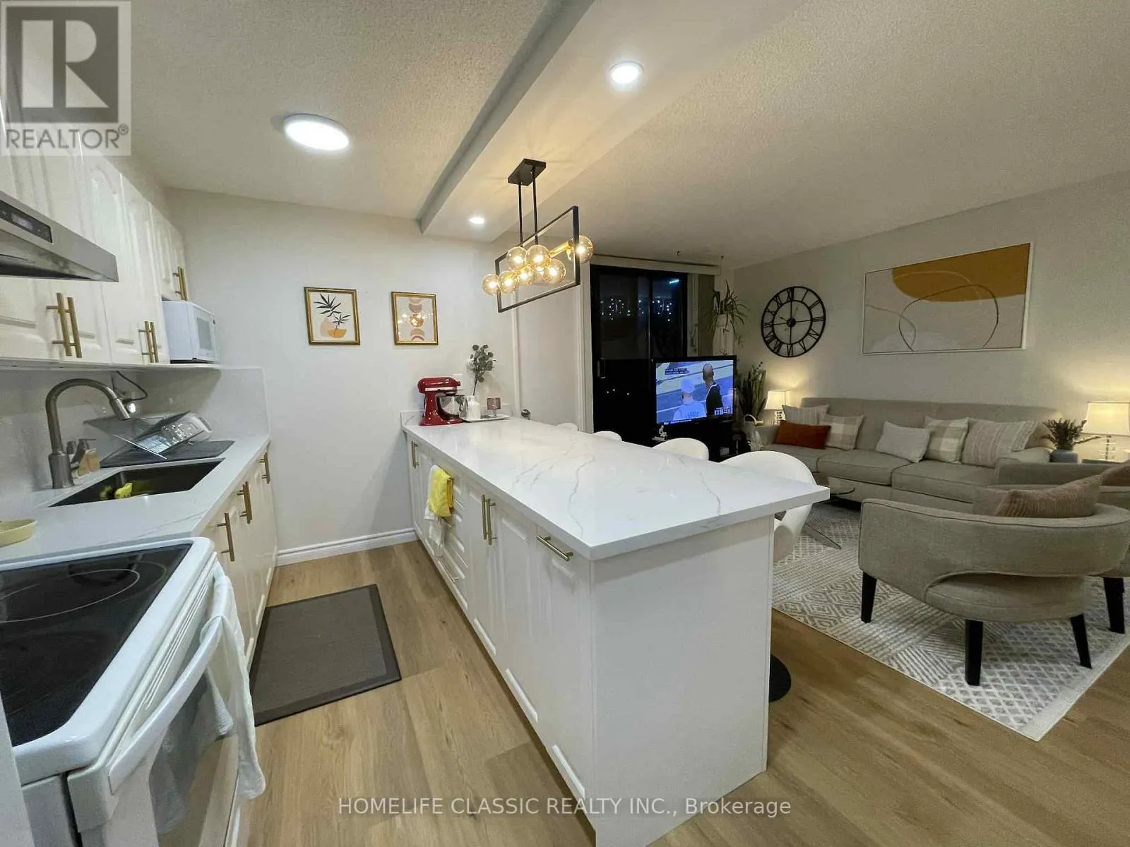 MORNING SIDE/LAWRENCE Move-in ready! Stunning, well maintained end unit, 3 bedroom, 2 bathrooms, updated open concept kitchen with quartz countertop and backsplash combined with quartz countertop dining with new pendant light. Living room and kitchen lightings are updated. Updated flooring (2024) in kitchen, living room and hallway. Plus built-in shelves in the ensuite storage. Den was converted into 3rd bedroom. Extra enclosed space with built-in desk can be used as an office. Living room walk out to balcony. Building offers outdoor pool, Gym, Party Room, Sauna, Tennis court, Bicycle parking, and visitor parking. The building is currently working on garage water proofing project. Conveniently located closed to university of Toronto and Centennial College (Morningside). Few steps to Bus stop with 24 hours bus service, closed to commercial complex (Banks, groceries, restaurants, churches, public library, and community center and police station, and Morningside park,. Few minutes drive to H-way 401 and Go train station. (id:27476)