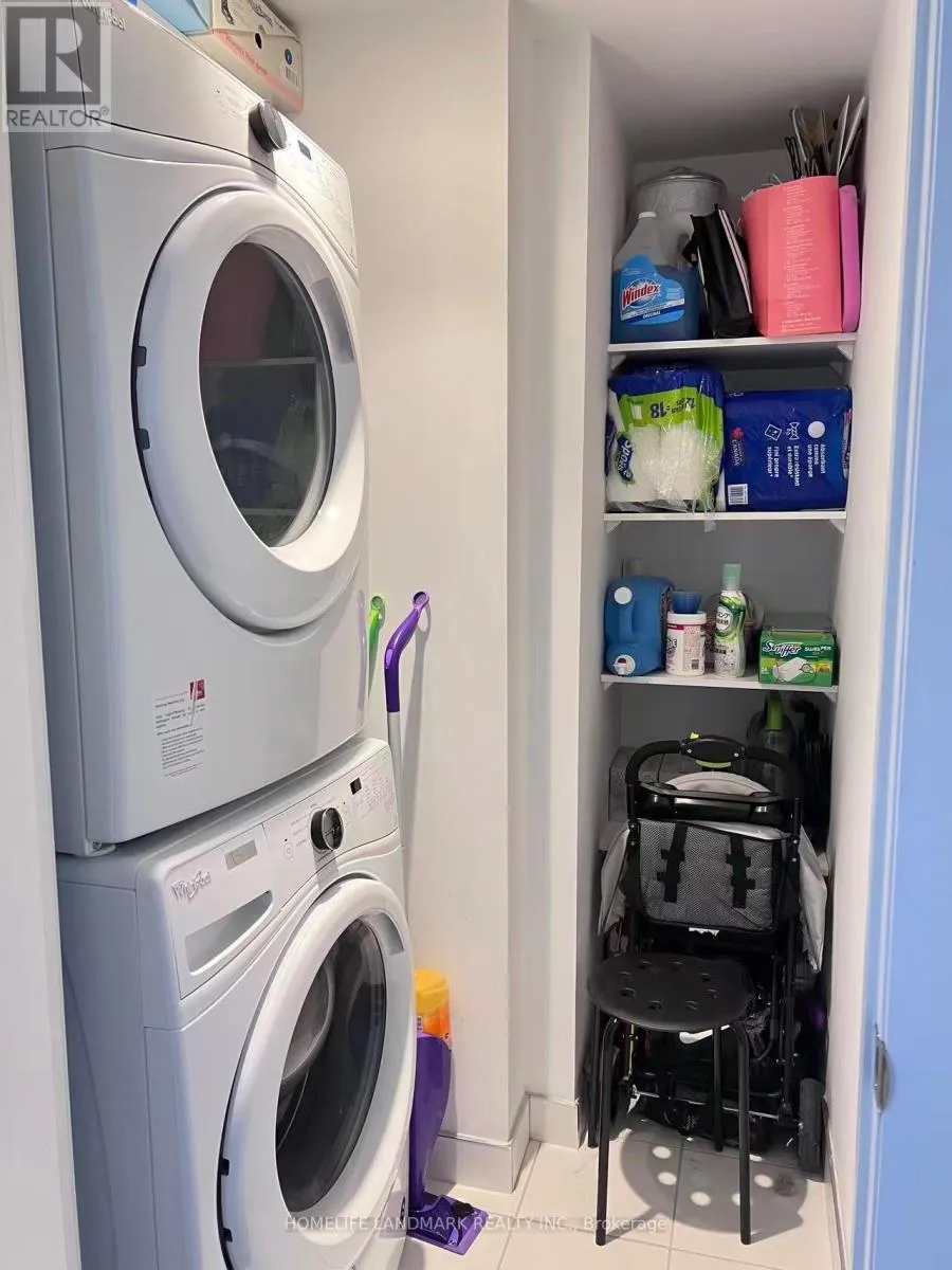 Sheppard & DVP This sun-filled, spacious corner condo in North York offers 2 bedrooms and 2 bathrooms with an open-concept layout, private balcony, 9-foot ceilings, and large windows. The unit features laminate flooring throughout and an L-shaped kitchen with ample cabinetry, newer stainless steel appliances, and an in-suite washer and dryer. Residents enjoy a well-maintained, eco-conscious building with resort-style amenities including a modern gym, yoga studio, lap pool, theater, private dining room, steam room, BBQ terrace, and party room. The condo provides panoramic city views and is conveniently located near Highways 404 and 401, TTC transit, and within walking distance of parks, shops, and restaurants. (id:27476)