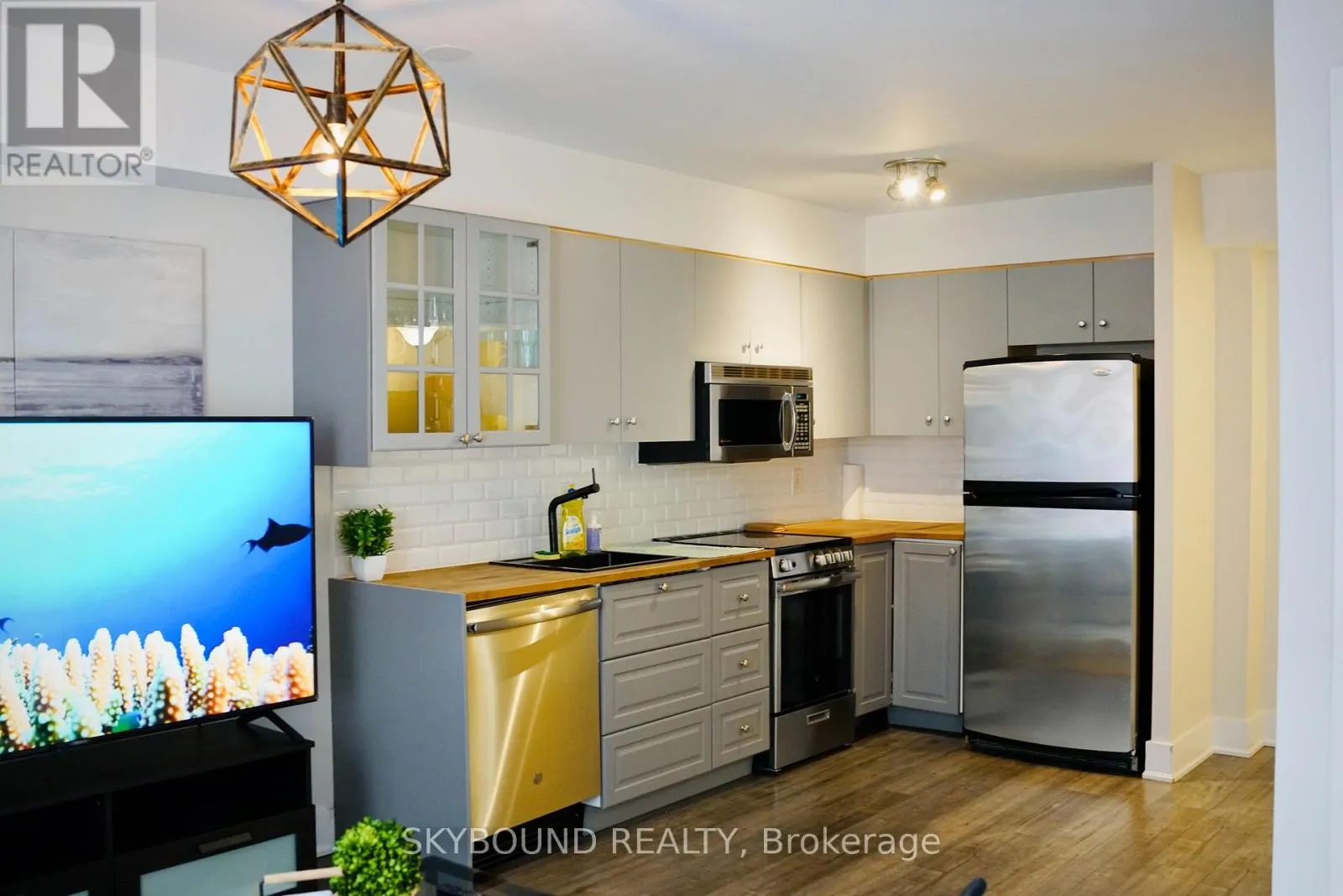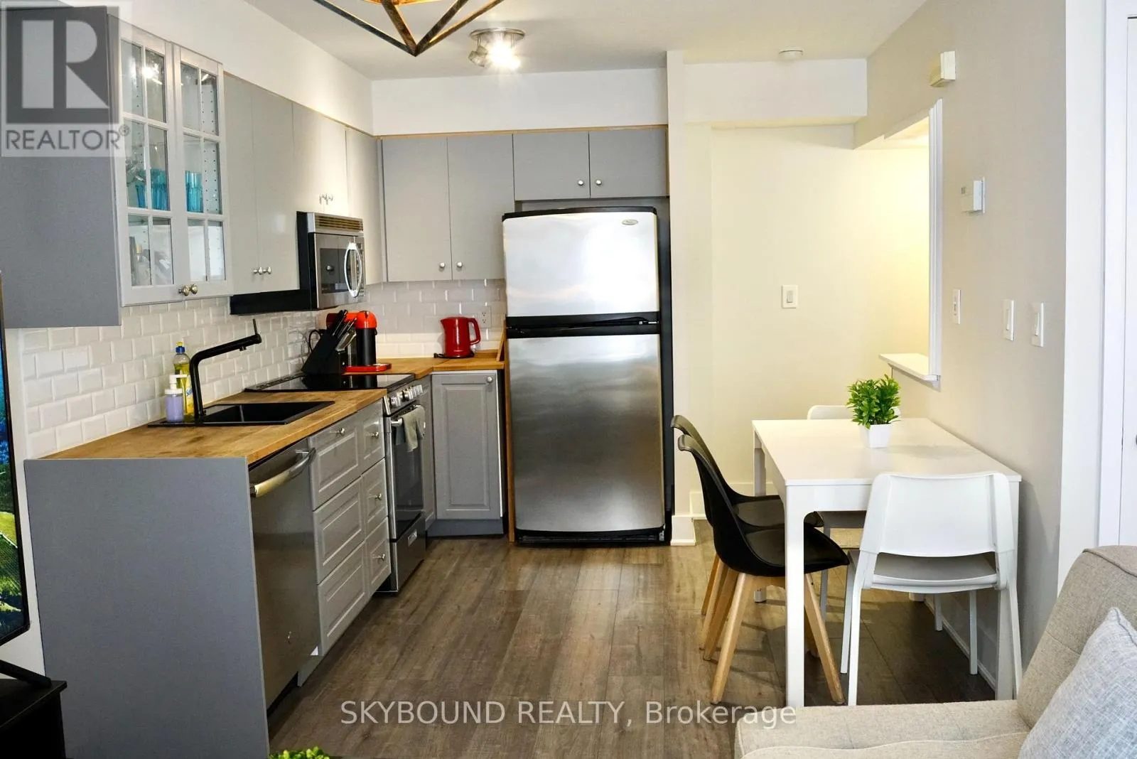 Cross Streets: Jarvis Street and Carlton Street. ** Directions: From DVP, exit at Carlton St, head west to Jarvis St, then south to 415 Jarvis St. 415 Jarvis, The Central is your tranquil urban oasis in a community of townhomes. This recently renovated 2 bedroom, multi level townhouse condo (870 sq ft) features a spacious open concept layout and contemporary design with a glorious rooftop patio in the heart of Toronto. Modern appliances line the renovated kitchen (2019), opening up space to dine comfortably. The cozy gas fireplace lights up the dining and living room and ambience. The updated bathroom (2023) features a deep soaker tub while the new deck (2021) on the rooftop terrace has natural gas and water hook-ups to nurture a garden oasis, BBQ or simply to unwind and enjoy breathtaking views of the city skyline. Enjoy the ensuite laundry, heated underground parking, and all the perks of downtown living. (id:27476)