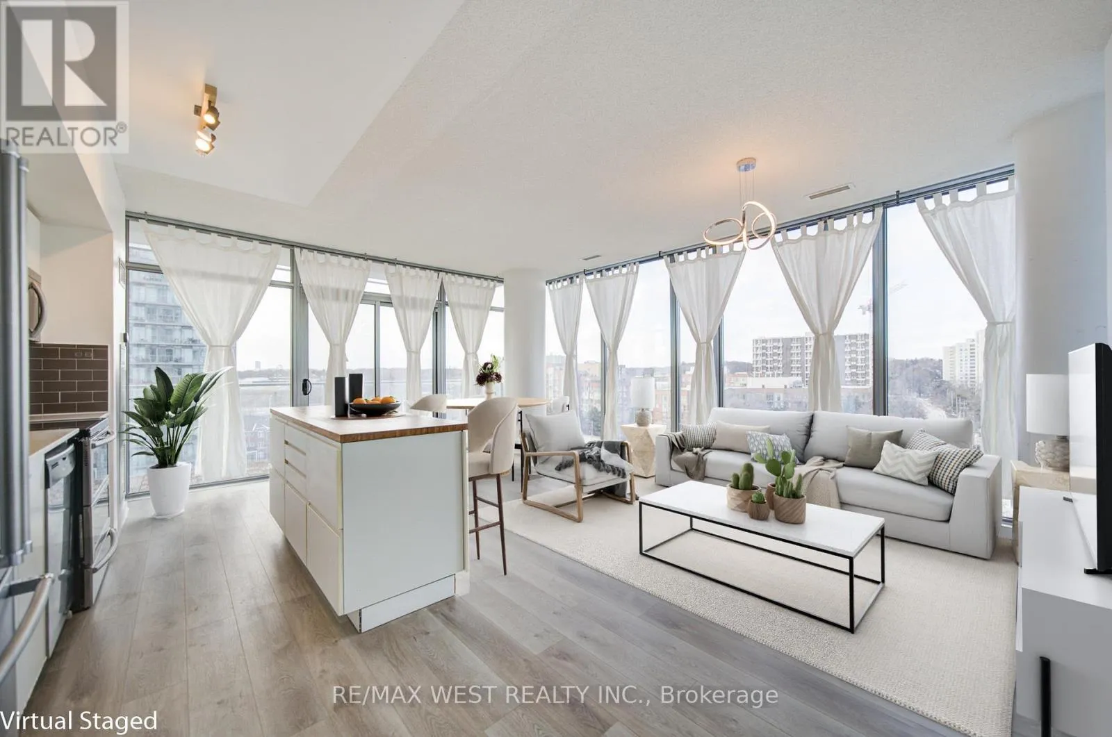 Winderemere/The Queensway refined urban living just minutes from downtown Toronto. Expansive floor-to-ceiling windows and soaring ceilings create a bright, open atmosphere, while the corner exposure allows natural light to flow throughout the space from multiple angles.Thoughtfully designed, the open-concept layout seamlessly blends style and functionality, ideal for both everyday living and entertaining. The living and dining areas extend to an expansive private balcony featuring two separate walk-outs-an impressive and rare feature that enhances indoor-outdoor living and provides the perfect space to relax or host guests.The residence includes two well-appointed washrooms, offering comfort and privacy, along with parking for added convenience. Brand new flooring has just been installed throughout, allowing you to move in and enjoy a fresh, modern finish from day one. With 24-hour concierge and security services, residents experience peace of mind and a true luxury lifestyle.This prestigious building offers resort-calibre amenities rarely found in the city, including indoor and outdoor swimming pools, a tennis court, and a state-of-the-art fitness centre.Designed to elevate everyday living, these amenities rival those of a high-end hotel.Ideally located close to transit, dining, shopping, and entertainment, this residence provides easy access to the energy of downtown while offering a private retreat above the city. A perfect opportunity for end-users, professionals, or investors seeking space, light, and sophistication in a prime Toronto location.A truly exceptional offering that combines luxury, comfort, and convenience-this corner unit must be experienced to be fully appreciated (all furniture is digitally staged for illustration purposes) (id:27476)