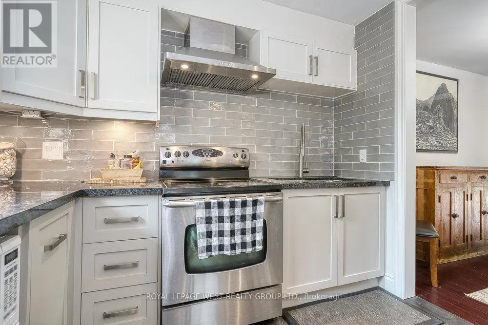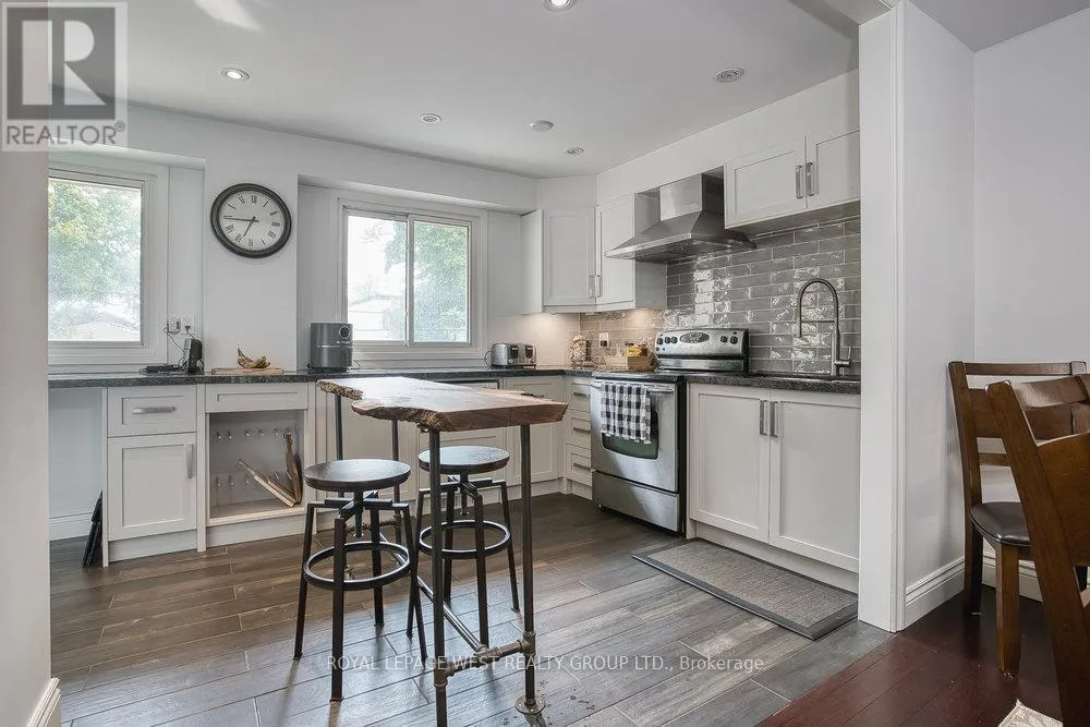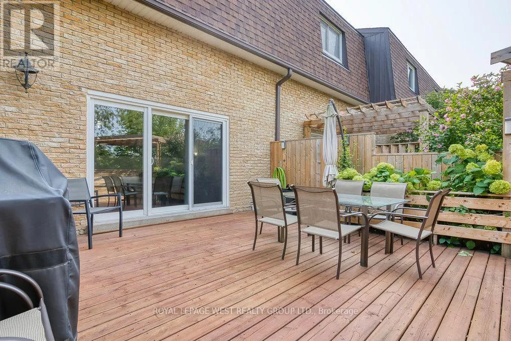 Elder and Thirtieth Welcome to Long Branch Village, where space, privacy, and convenient living come together. Tucked away on a quiet private cul-de-sac of just 10 exclusive townhomes, this rarely offered 3-bedroom, 3-storey residence delivers the feel of a freehold with the convenience of condo living. Step inside to discover a bright, open-concept updated kitchen featuring stone countertops and stainless steel appliances, seamlessly connected to a formal dining area overlooking the expansive living room. The sun-filled living room boasts cathedral ceilings and a walk-out to a generous private deck-perfect for entertaining or relaxing outdoors. This unit is complete with three bedrooms, an updated 3-piece bathroom, a finished basement, built-in garage, and two parking spaces provide everyday convenience and flexibility. Enjoy a walkable lifestyle just steps to the lake, parks, schools (including French Immersion), TTC, GO Transit, and all the charm Long Branch has to offer. This is a move-in-ready home with outstanding space, location, and value in one of South Etobicoke's most sought-after communities. **low maintenance fees** (id:27476)