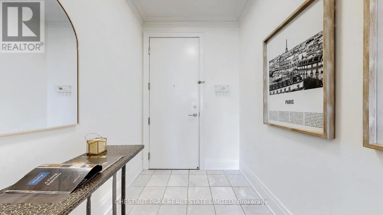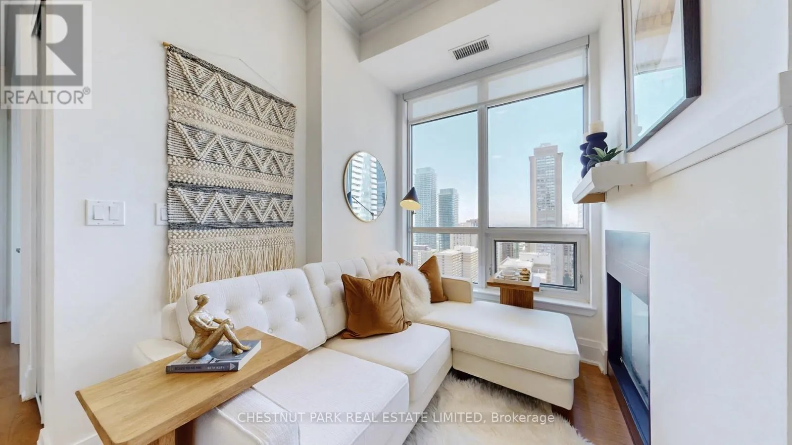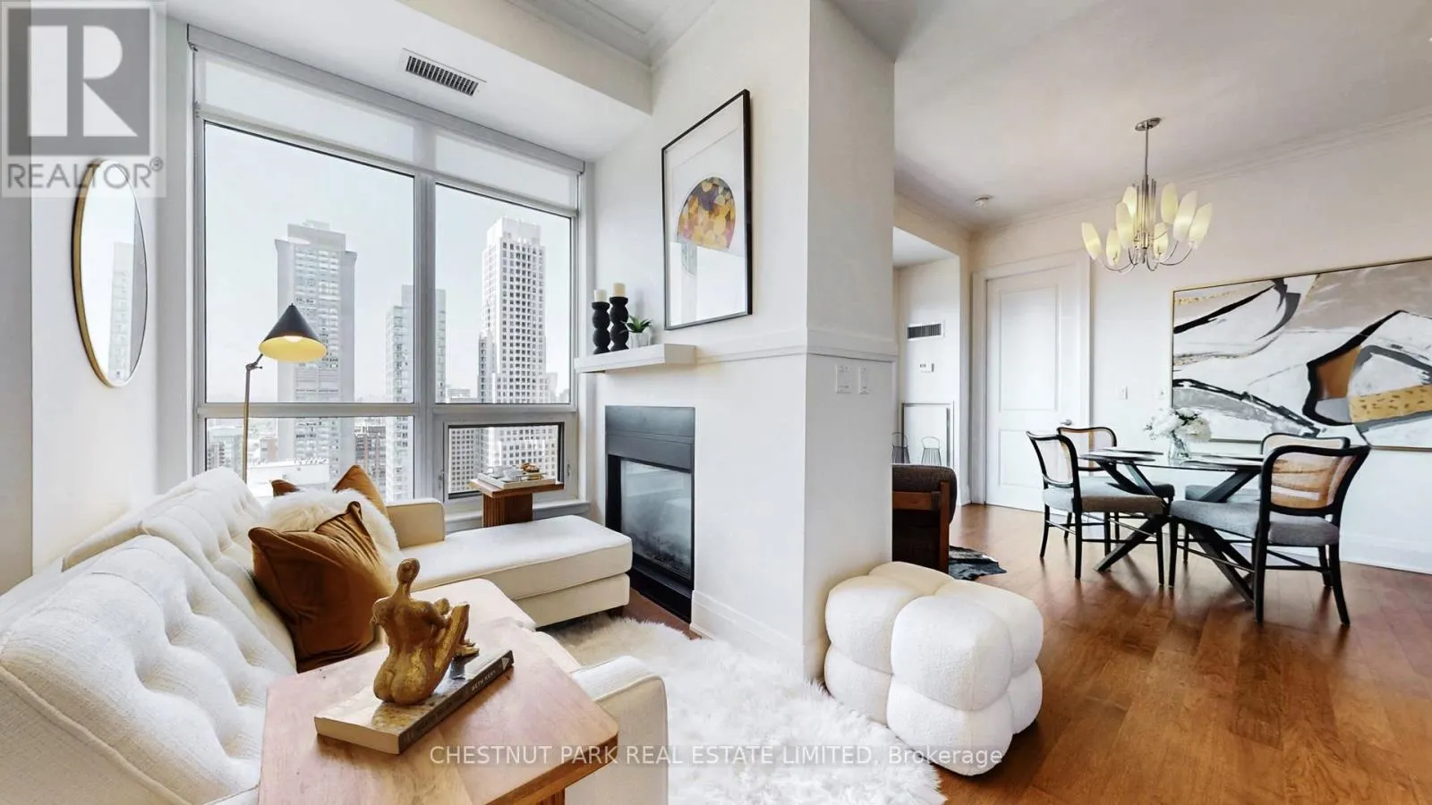 Cross Streets: Yonge And Bloor. ** Directions: Head East on Hayden St. Price to sell. Unveiling an exceptional two-bedroom plus den sub-penthouse suite, where luxury and comfort seamlessly intertwine. Boasting soaring 10-foot ceilings adorned with elegant crown moldings, this residence exudes sophistication. The cozy gas fireplace invites you to unwind and relax, while the state-of-the-art Downsview kitchen, equipped with premium appliances, inspires culinary adventures. Every bedroom leads out to one of the two private terraces, offering panoramic unobstructed views and an abundance of natural light. Gleaming hardwood floors flow throughout, creating a cohesive and inviting ambiance. This exclusive enclave features only three suites per floor, ensuring privacy and tranquility. Its prime location offers effortless access to upscale shops, convenient public transportation, and the city's finest dining establishments, catering to your every need and desire. (id:27476)