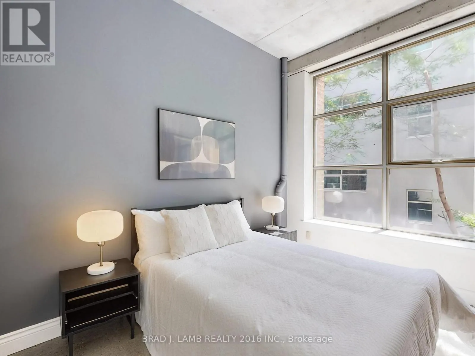 King/Brant/Richmond Loft living on the quiet side of King St. W. with a boutique hotel feel at the ultra chic Camden Lofts. 959 square feet, two bedrooms, high ceilings and polished concrete floors. Fullyrenovated with modern kitchen and bathroom. Perfect wide/shallow floorplan with 40+ feet of windows. Located next to the ACE Hotel across from Waterworks Park and Dog run. Camden is a quiet street on the edge of everything King St. W. has to offer when you want it. Parking and Locker included. Staging and styling provided by Scott Shallow & Co. (id:27476)