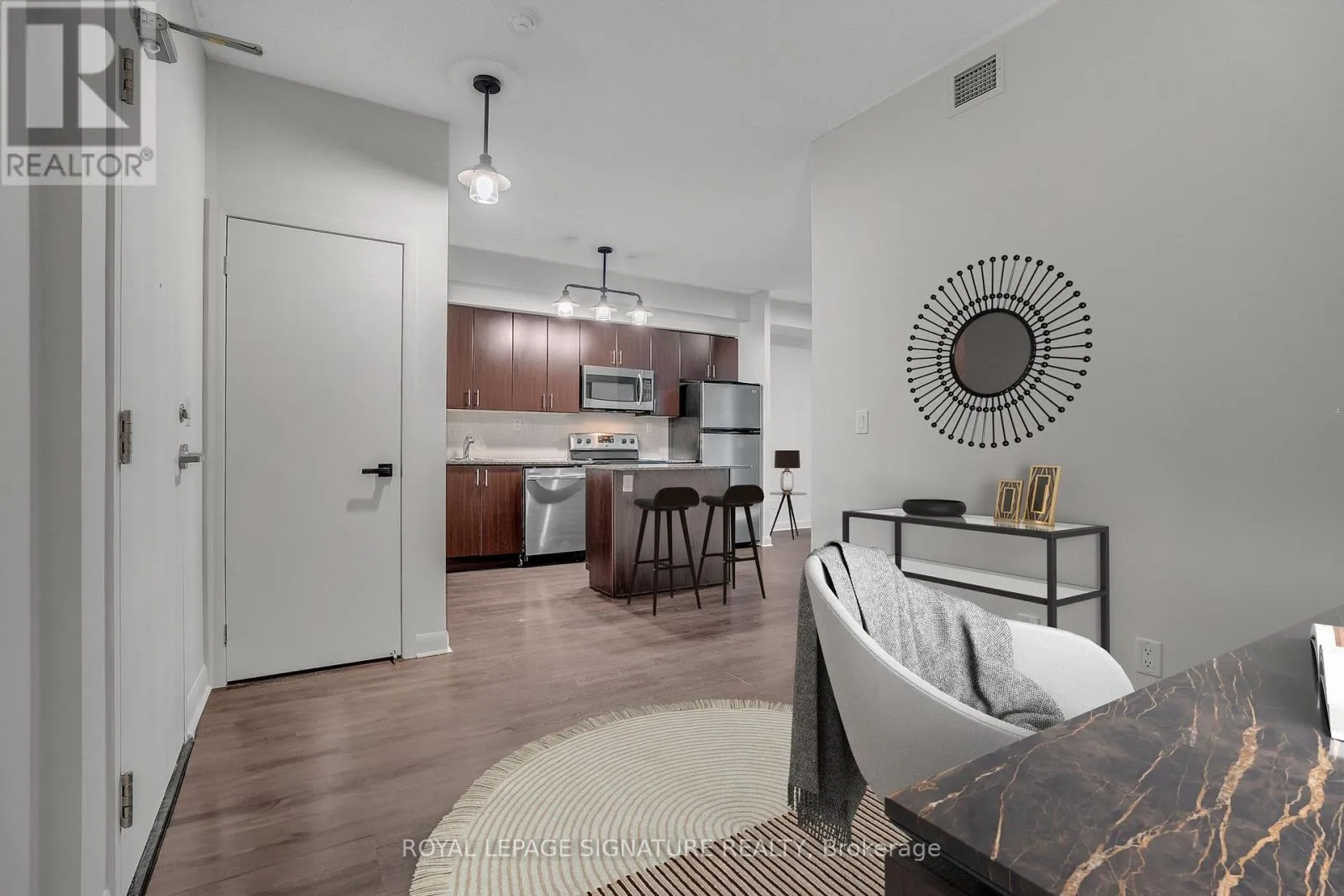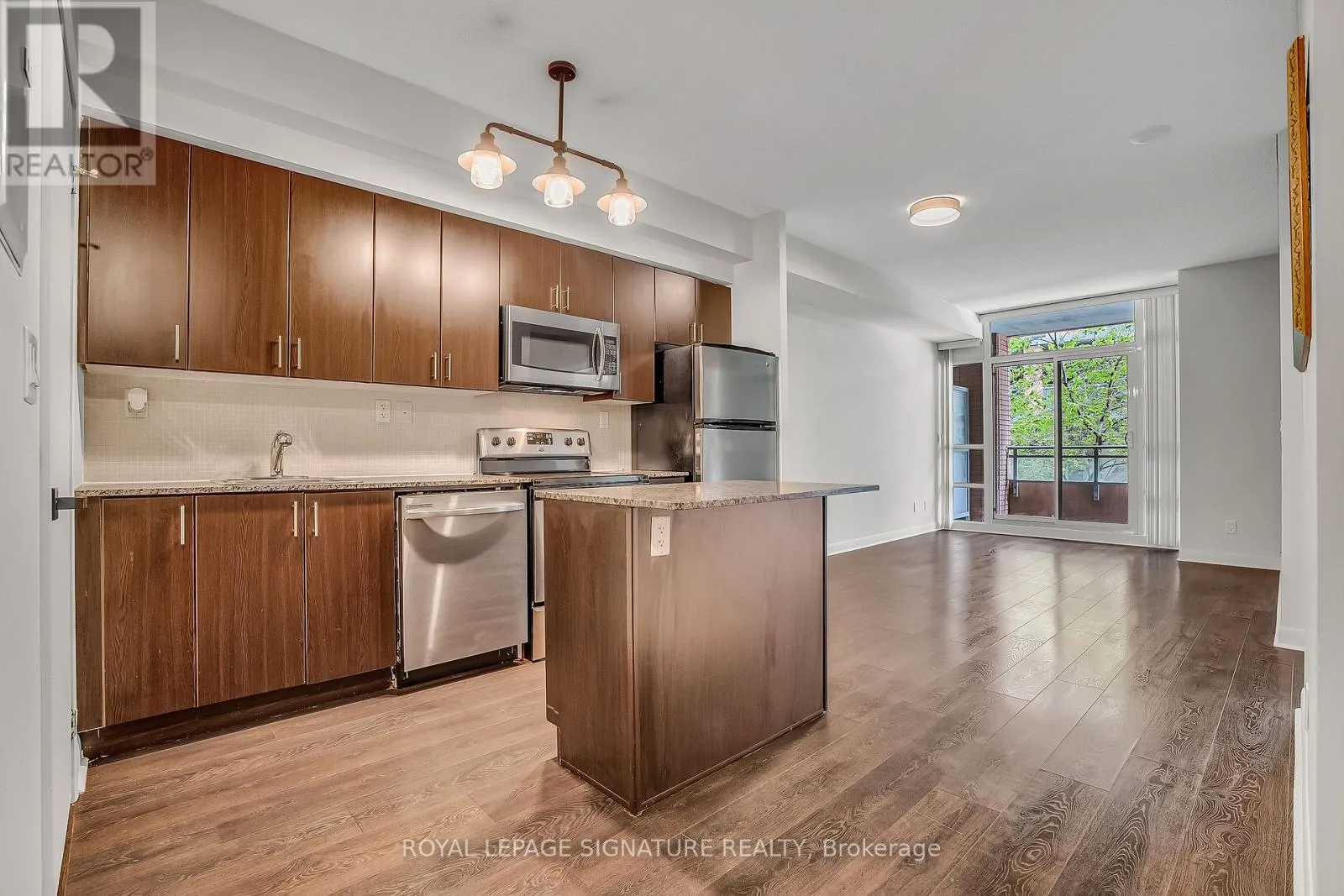 Cross Streets: Bathurst/Lakeshore. ** Directions: North of Lakeshore/West of Bathurst. Spacious 1+ den condo with walk-out balcony in a prime downtown location with parking & locker. This bright and functional 1+den layout features a spacious living room with walk-out to a private balcony, a modern kitchen with granite countertops, stainless steel appliances, and a centre island with breakfast bar perfect for entertaining or casual meals. The primary bedroom impresses with wall-to-wall, floor-to-ceiling windows and a large walk-in closet. Stylish laminate flooring flows throughout the unit. Amenities include: Concierge, fitness centre, party/meeting room, rooftop garden, visitor parking. Situated in a centrally located boutique building near the Lake, Billy Bishop Airport, CNE, major sports stadiums, financial and entertainment districts, plus steps to the grocery store and LCBO. Ideal for professionals, investors, or anyone seeking vibrant downtown living! (id:27476)