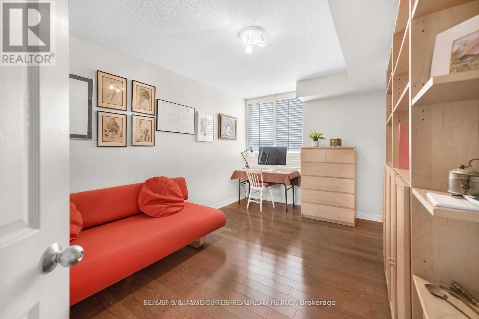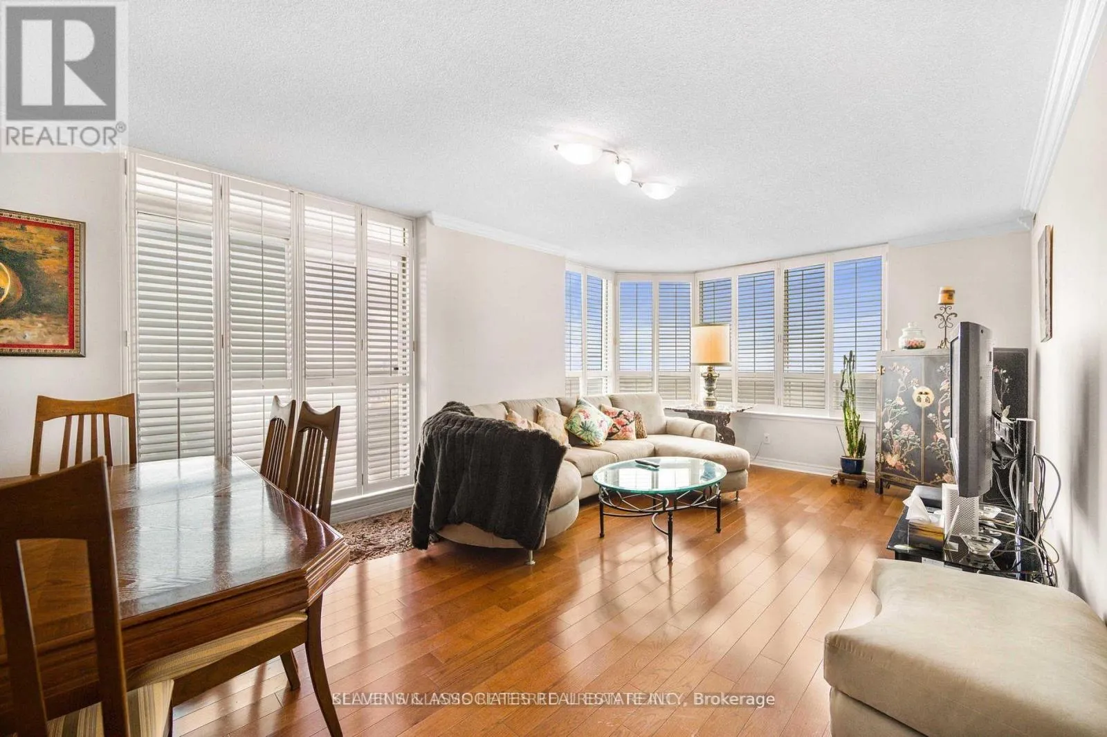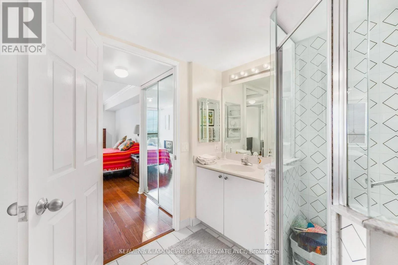 Bathurst and Lawrence Penthouse corner suite at Encore Towers! Bright and spacious 2-bedroom, 2-bath layout with split bedrooms and open above-the-treetops views. Large windows with California shutters provide great light and privacy. Updated family-sized kitchen with ample cabinets, double S/S sink and eat-in area. Primary bedroom with 2 closets and private ensuite. Hardwoods floors, covered balcony, parking and locker included. Well-managed building with 24-hr concierge, Sabbath elevator, outdoor pool, guest suites and visitor parking. Steps to Lawrence Plaza, TTC, Allen Rd & 401. (id:27476)
