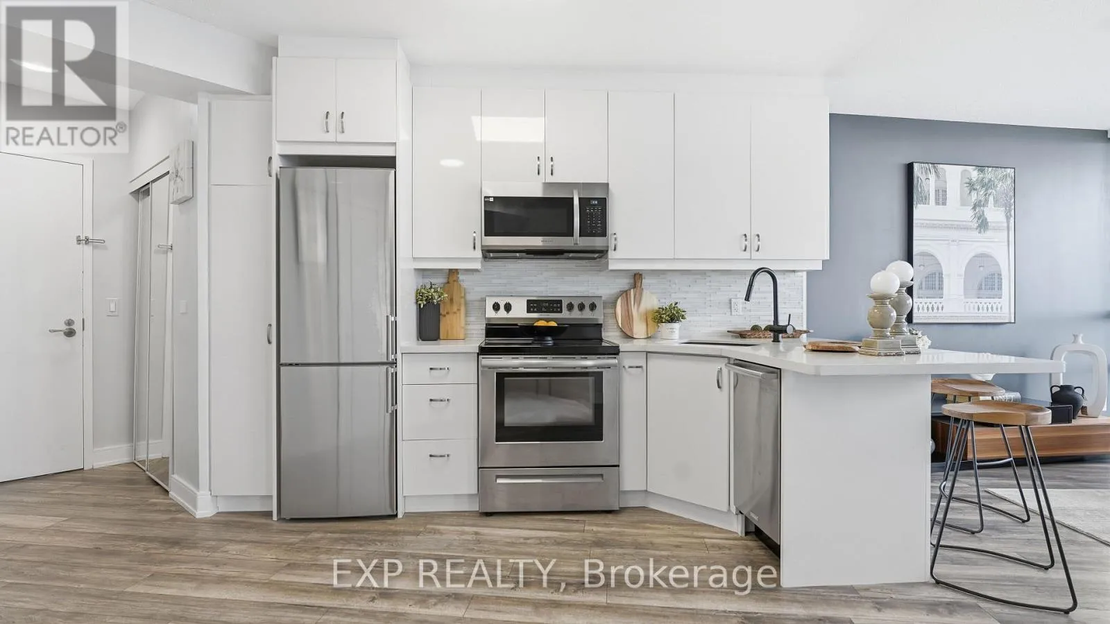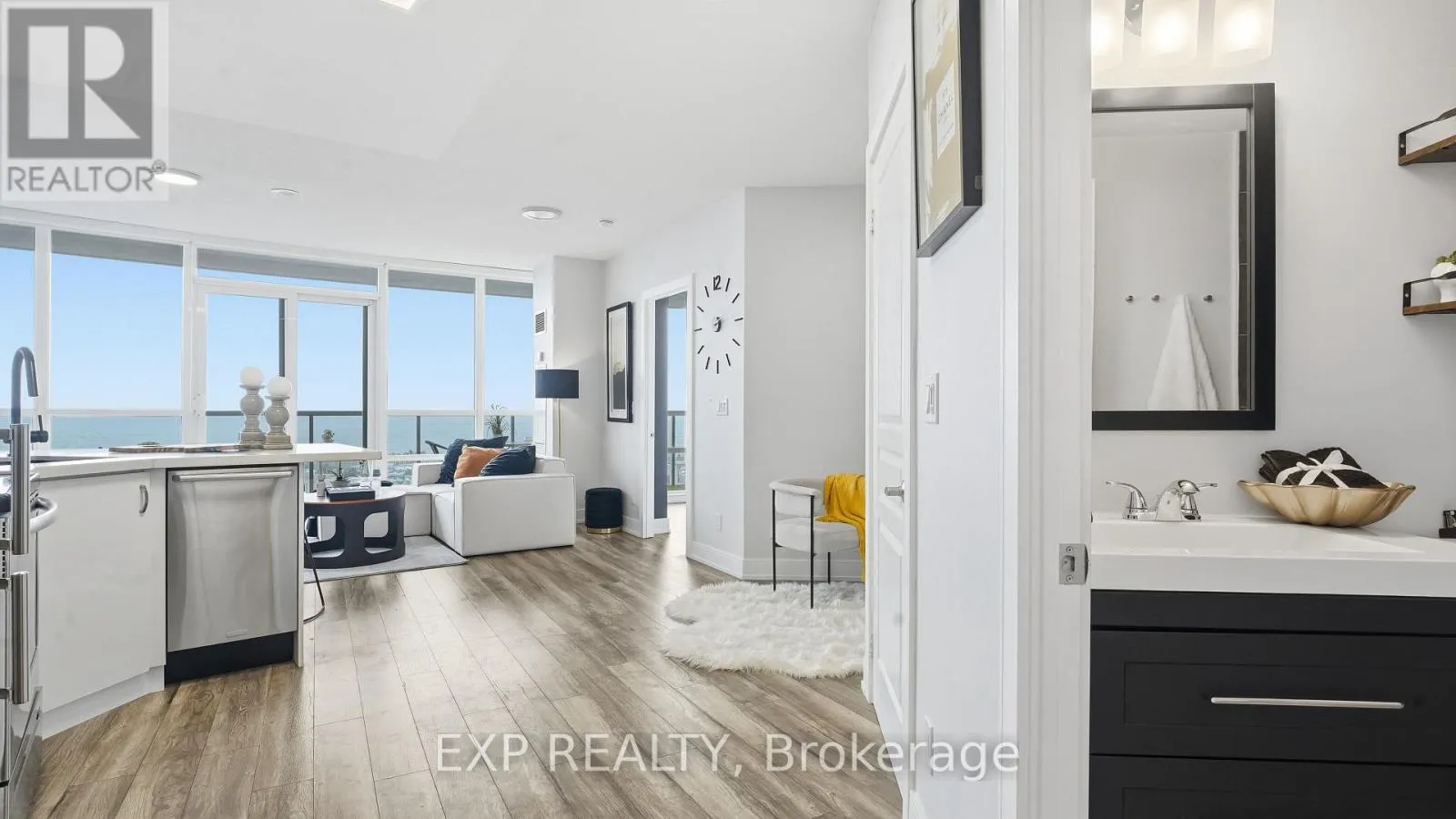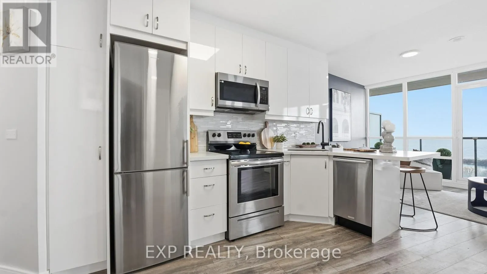 Cross Streets: Park Lawn & Lake Shore Blvd W. ** Directions: Visitor Parking in the Underground Parking Garage (P1). Five-Star Lakefront Living Awaits in Humber Bay Shores! Why choose between Toronto's dazzling skyline or serene lake views when you can have both? Enjoy panoramic, unobstructed views of the CN Tower, city lights, and gorgeous lakefront - all from your private balcony, where you can take in the sunrise and sunset in perfect tranquility. This rare 1 + den condo boasts a bright, functional layout, good sized walk-in-closet, with floor-to-ceiling windows, and a spacious balcony enhanced with the perfect outdoor space (manicured with synthetic lawn grass), creating your own private outdoor oasis. Inside, enjoy modern upgrades throughout - including a new bathroom, refreshed kitchen with backsplash and breakfast bar, stylish flooring, and stainless steel appliances. Located in the heart of Mimico's prestigious Humber Bay Shores, you're just steps to the Martin Goodman Trails, Lake Ontario, cozy cafes, gourmet restaurants, groceries, TTC, GO Transit, and quick highway access. Live where luxury meets lifestyle, and every day feels like a home away from home. Shows A++++ Amenities Include: Private, Residents-Only Fitness Club, Theatre room, Kids' Play Room, Yoga Room, Cardio Room, Wine Tasting Room, Library, Saunas, Terrace with BBQs, Billiards Table & Ping Pong Table. (id:27476)
