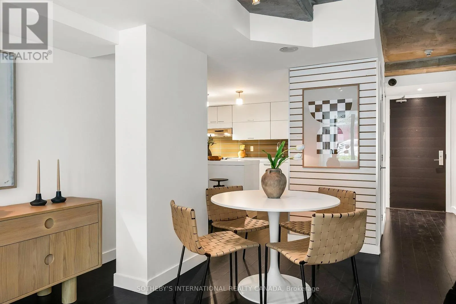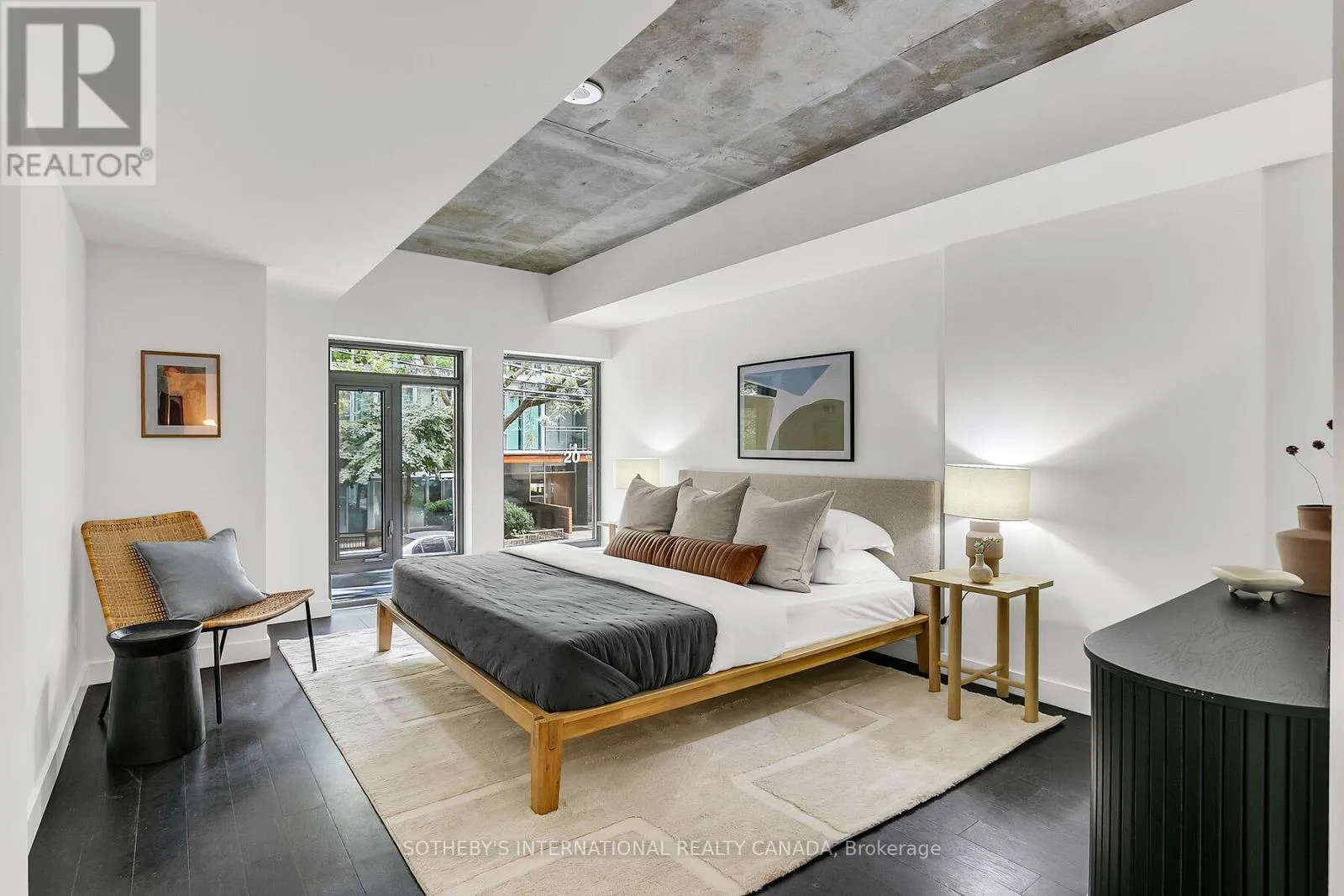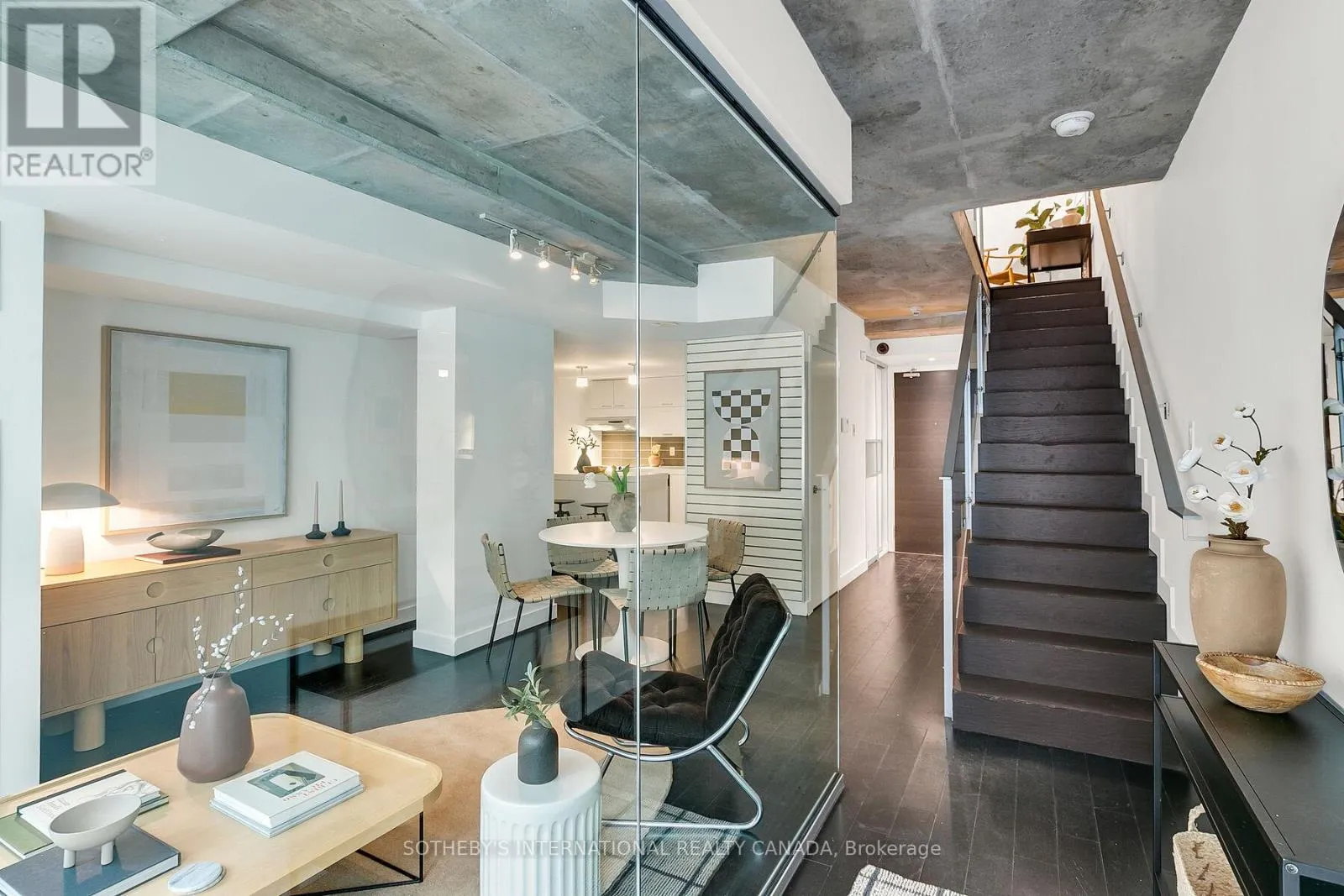 Cross Streets: King St. & Bathurst St. ** Directions: One block south of King St. West off Bathurst St. An authentic live/work opportunity located in the heart of King West. Welcome to the Residences at 1 Hotel and specifically the townhomes addressed on Stewart St. #25 provides 1410 square feet of exceptional proportions on two levels. A multi purpose living/dining/work area with spacious kitchen on the main level. The second level boasts a large family/great room with two bedrooms, each with their own bathroom and good sized closets. Freshly painted, dark wood flooring throughout, some exposed concrete ceilings and large floor to ceiling north facing windows. An ideal opportunity for professionals and or creative entrepreneurs looking to be located in a lively and dynamic neighbourhood with easy access to all the daily amenities one requires, public transit, highways, Billy Bishop Airport, world class restaurants and cafes, entertainment and sporting venues. (id:27476)