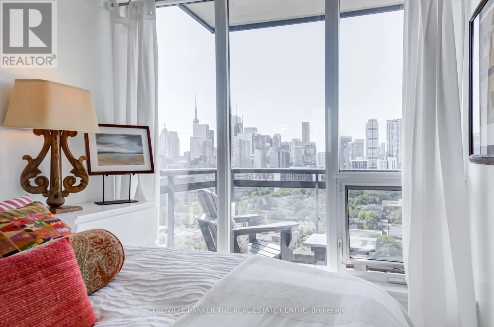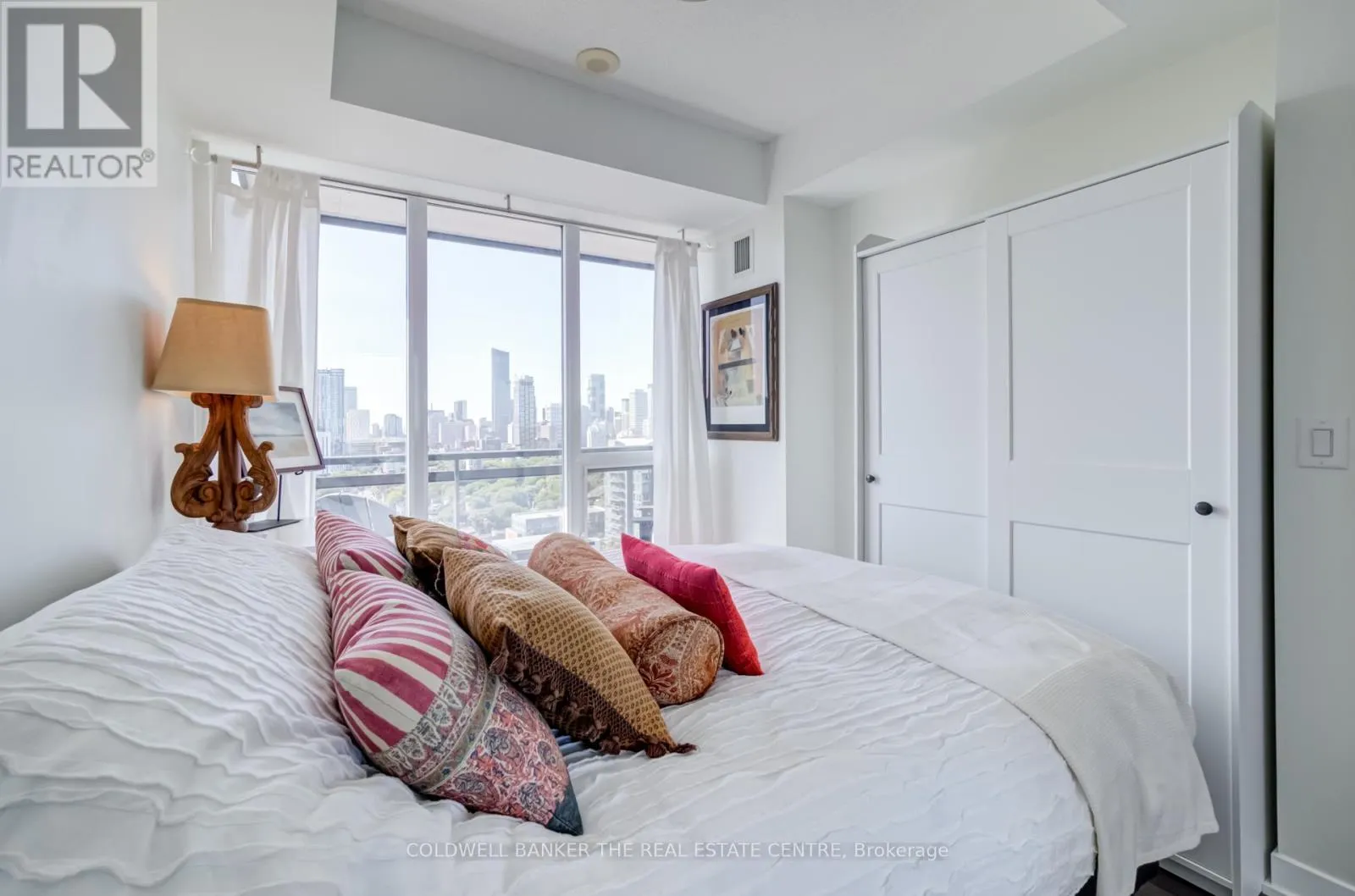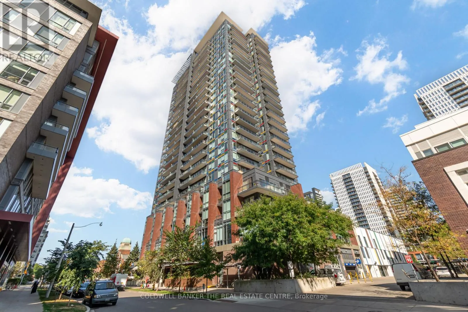 Cross Streets: Parliament St & Dundas St E. ** Directions: Parliament St & Dundas St E Dundas St E to Sackville St make a left onto Sackville St. Luxury at 225 Sackville St, Suite 2205, in the iconic "Paintbox" by Daniels. Breathtaking, cinematic panorama of the complete Toronto skyline and Lake Ontario. A living masterpiece, from sparkling sunrise to glittering city lights. Spanning over 700 sq ft of executive living space, bathed in glorious natural sunlight. Oversized, wall-to-wall windows and soaring 9-foot ceilings create an airy, sophisticated feel. Practical and functional open-concept layout for tranquil living and elegant entertaining. The gourmet kitchen is appointed with sleek granite countertops, premium stainless steel appliances, and a breakfast bar. This space flows seamlessly into the main living area, offering access to an oversized private balcony. Step outside and immerse yourself in that staggering city and lake vista, an entertainer's dream. Retreat to the palatial primary bedroom. Wake up to the same mesmerizing, unobstructed city/lake views, and enjoy an oversized closet with custom built-ins. An indulgent 4-piece ensuite complements this escape. The versatile, spacious den provides brilliant flexibility as a second bedroom or home office. A separate 3-piece main bathroom and in-suite laundry add functionality. Includes a premium underground parking spot and an exclusive storage locker. The "Paintbox" has five-star amenities: ( major renovations done throughout all amenity areas)sprawling BBQ garden terrace, chic Wi-Fi lounge, party room, exercise room, visitor parking, and 24-hr concierge. Nestled in a vibrant neighbourhood, steps from a 6-acre aquatic park, community centre, theatres, shops, and restaurants. Explore the nearby Distillery District. Seamless connectivity with TTC, DVP, and Gardiner. Meticulously maintained, Suite 2205 is an executive lifestyle defined by luxury, light, and an extraordinary view. (id:27476)
