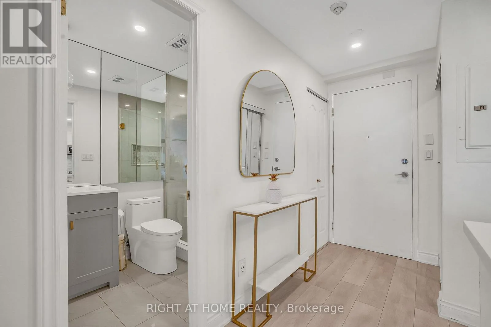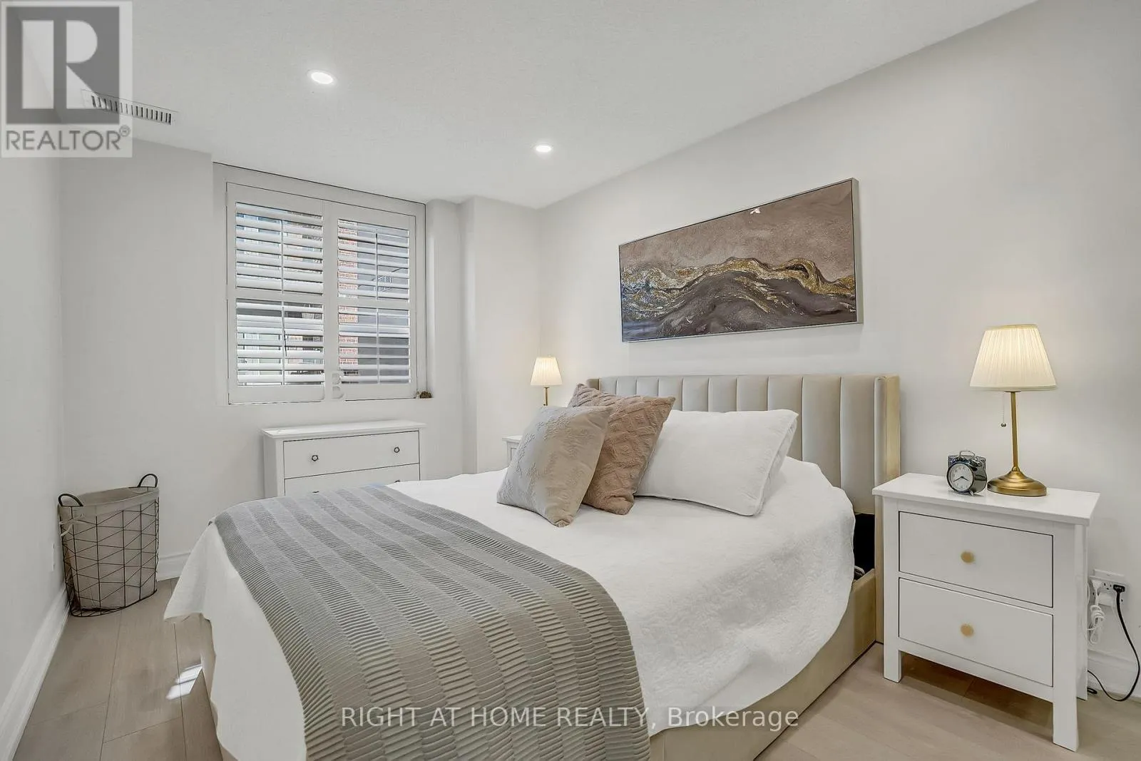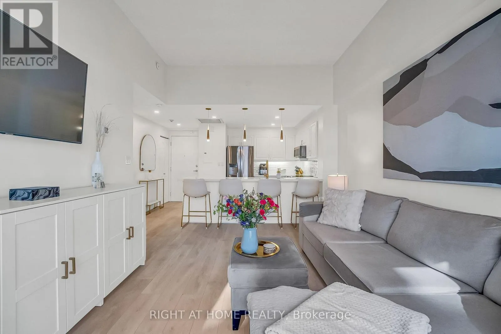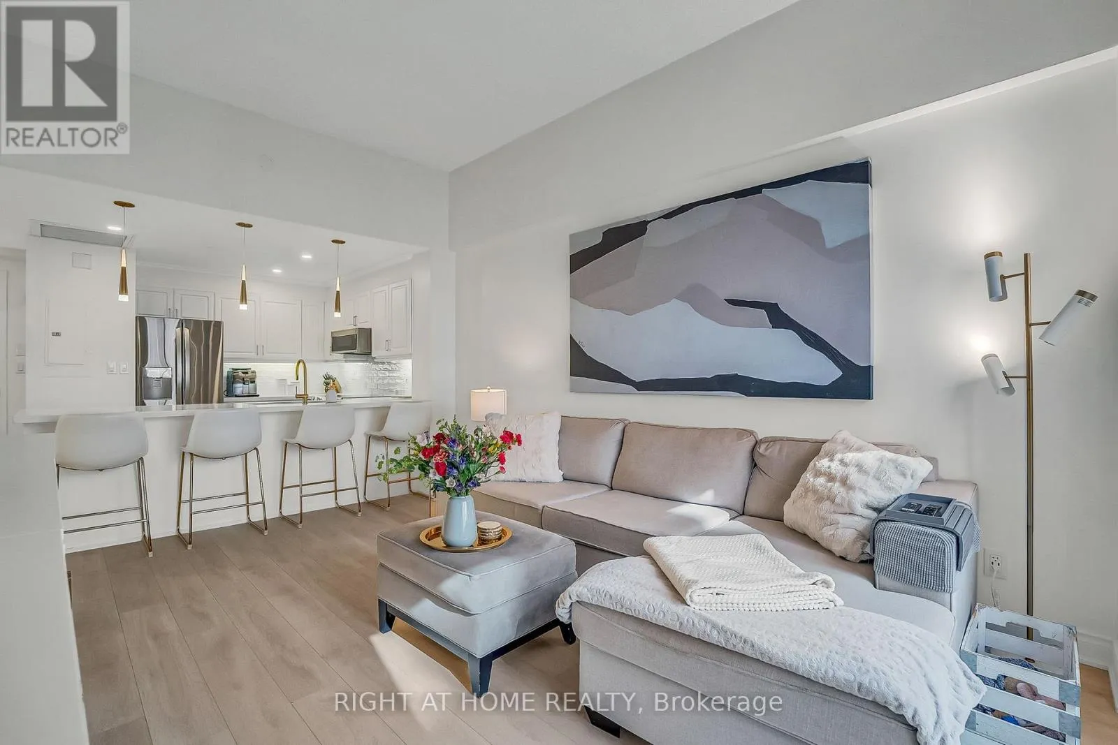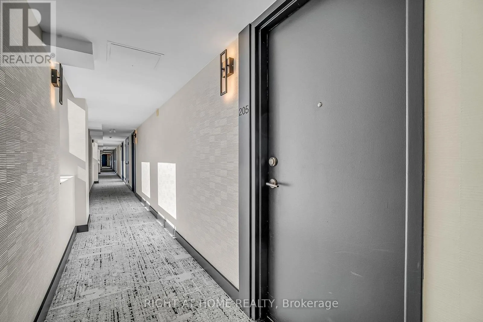 Cross Streets: Royal York & Dundas St W. ** Directions: North Side Of Dundas BetweenRoyal York & Prince Edward Dr N. Welcome to Suite 205 at the Humber Lofts - an intimate boutique residence of only 24 units, ideally situated in the heart of Central Etobicoke. Enjoy the convenience of being only steps to Dundas St W, Bloor St W, shopping, cafes, transit, Royal York Subway Station, Lambton Park, and scenic walking and cycling trails along the Humber River. Beautifully renovated with contemporary finishes, this suite offers a bright and functional open-concept layout enhanced by new laminate flooring, high-profile baseboards and fresh, neutral tones throughout. The thoughtfully updated kitchen serves as the centerpiece of the home, featuring modern stainless steel appliances, abundant hardwood cabinetry accented with brushed gold hardware, chic beveled subway tile, upgraded pendant and recessed lighting, and quartz countertops with an extended peninsula for additional seating. The spacious living and dining area boasts soaring 10 ft ceilings and a Juliette balcony that invites an abundance of natural light. The stylish 4-piece bathroom has been fully redesigned with large-format porcelain tile, a modern vanity, and a glass-enclosed shower accented with gold fixtures. The serene primary bedroom offers a mirrored double closet, recessed lighting, and a large window complete with California shutters. Residents also enjoy access to the recently updated rooftop terrace, offering a peaceful outdoor retreat with lounge seating, gazebo, and barbeque area - perfect for relaxing or entertaining. Elegantly upgraded and lovingly maintained by its current owner, Suite 205 presents a rare opportunity to own a refined, move-in-ready home in a highly desirable community. (id:27476)