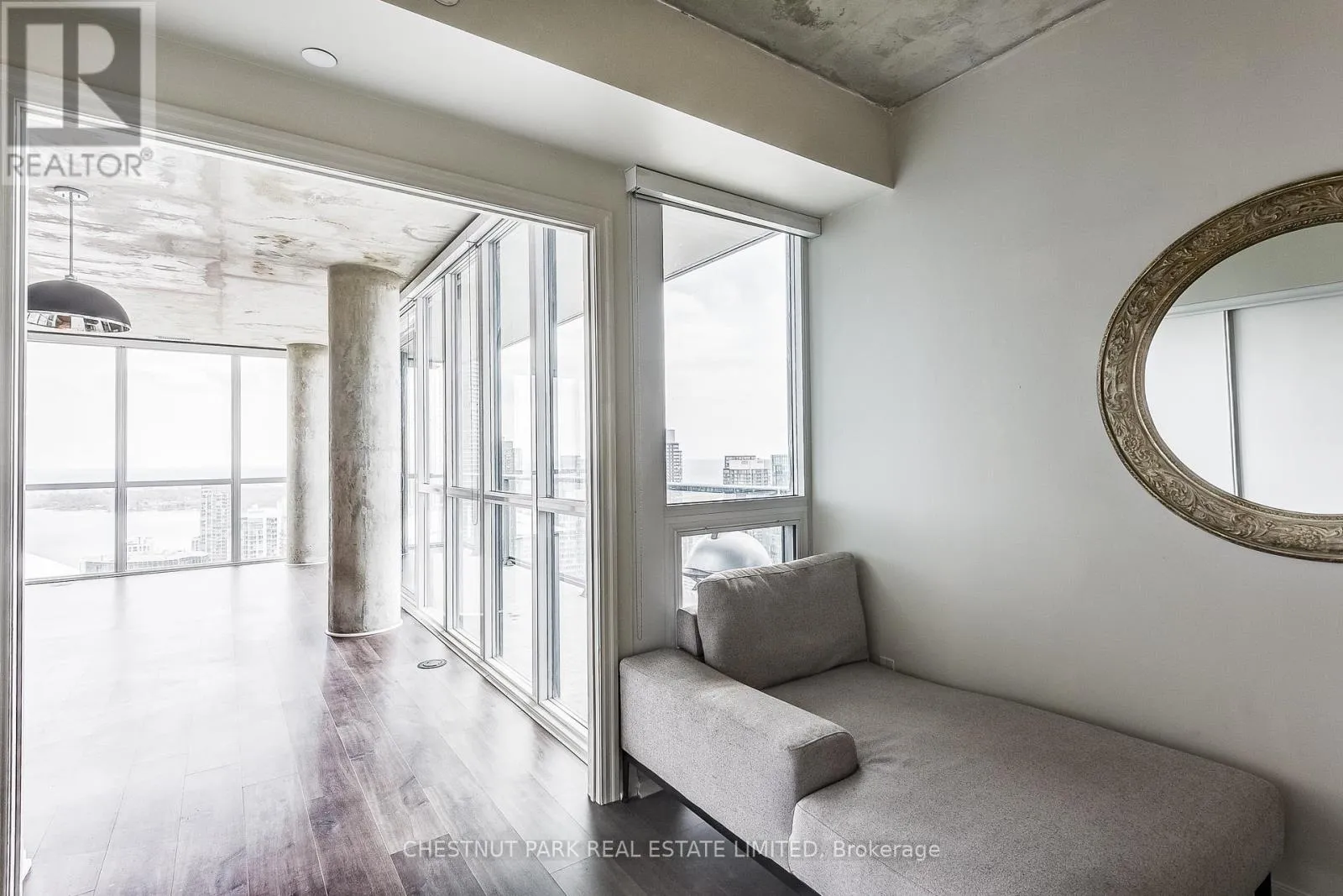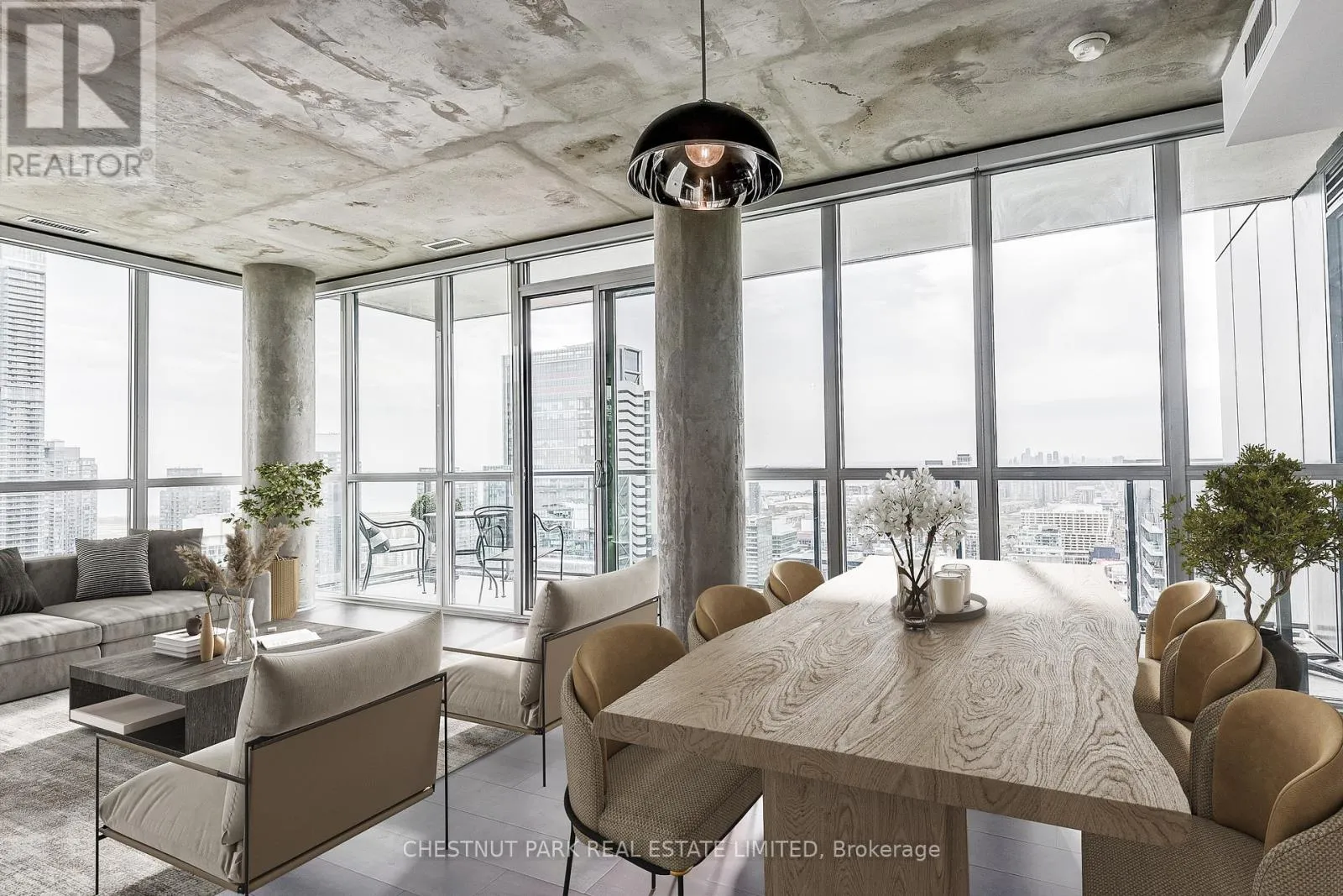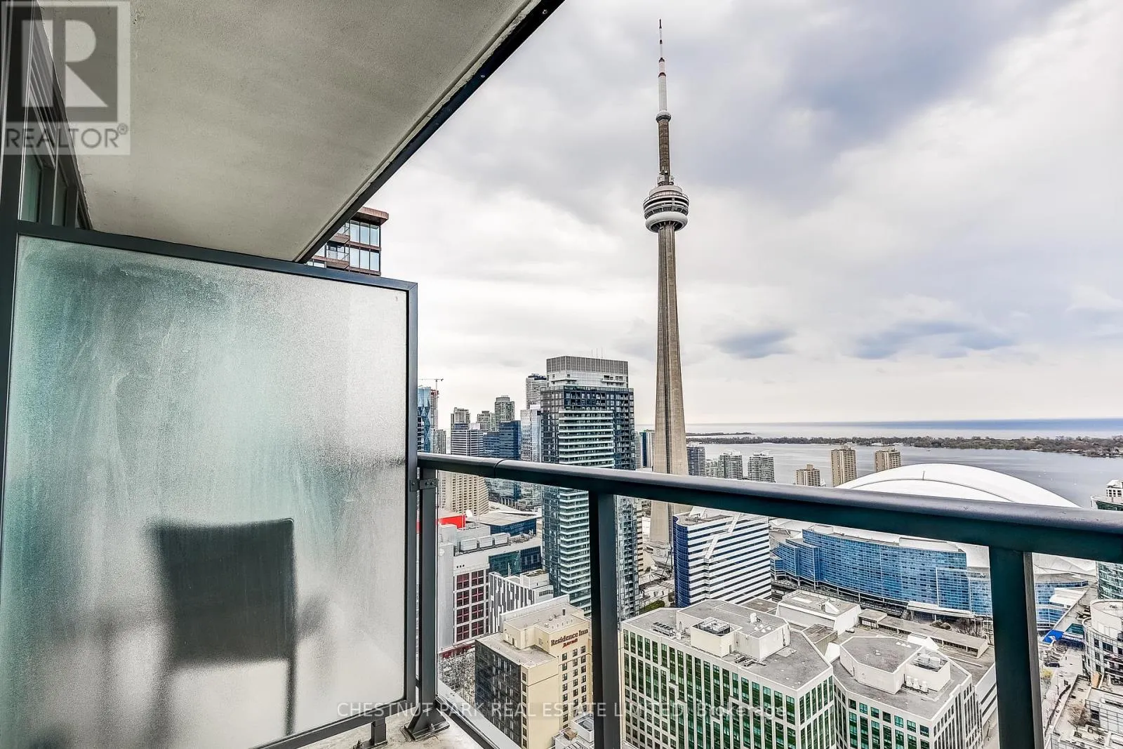 King St. & Blue Jays Way Unobstructed southwest views of the CN Tower and Toronto skyline from the 40th floor of the iconic Bisha Residences. 2 + 1 bed, 3 Bathroom, 1,502 sq ft with 1 parking & 1 locker. Floor-to-ceiling windows flood the space with natural light, open-concept layout offers flexibility for both everyday living and entertaining. Two outdoor balconies, Second balcony off Primary bedroom. Located in the heart of the Entertainment District, just steps from the city's best dining, nightlife, and culture. Residents enjoy access to world-class amenities, including a rooftop pool, fitness centre, and 24-hour concierge. Some photos are virtually staged. (id:27476)