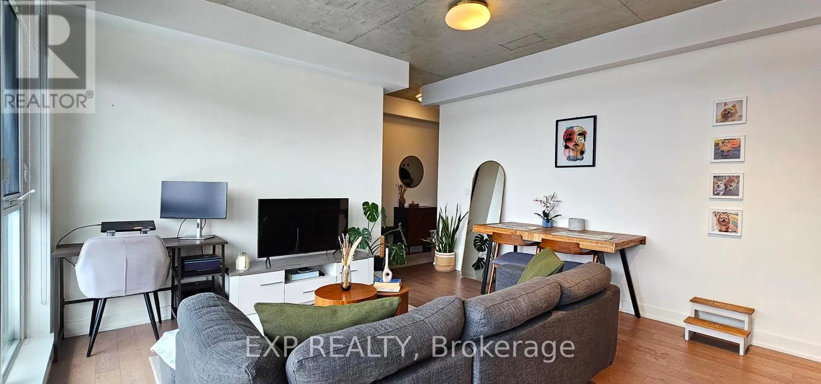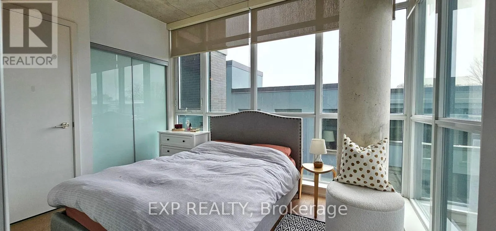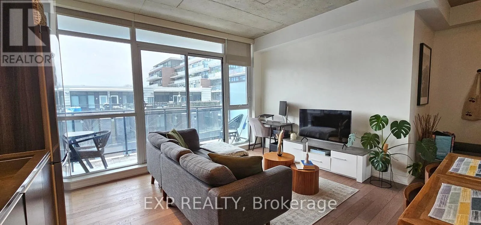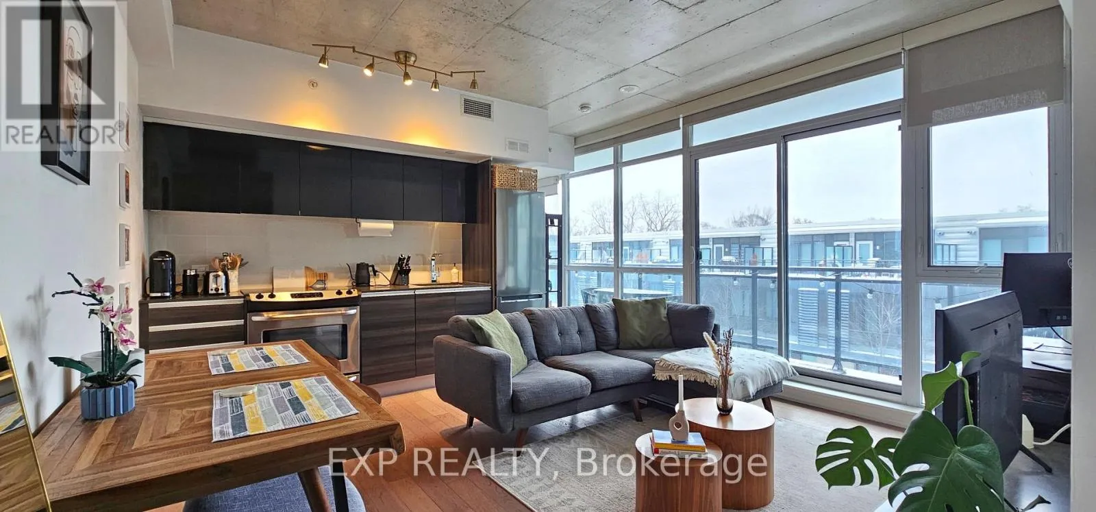 Dundas E & Carlaw Enjoy Leslieville living at it's finest in this cozy one bedroom loft. The Carlaw is a boutique condo building that's situated above the highly rated Crowe's Theatre. Minutes away from multiple streecar and bus lines to take you downtown. Walking distance to all the shops and restaurants on Queen St East and Gerrard Square Shopping Centre. Garden Bar & Bodega, with its wonderful outdoor patio, is just across the street. Popular Riverdale Park is a 7 minute walk away. The loft is a desirable corner unit with high ceilings and floor to ceiling windows, which provide an unlimited amount of natural light. The layout is sensible, the open concept kitchen and bathroom are modern and comfortable. Relaxation is guaranteed on the large balcony with barbecue hookup. For additional storage the unit comes with a locker. Parking is available at an additional fee. (id:27476)