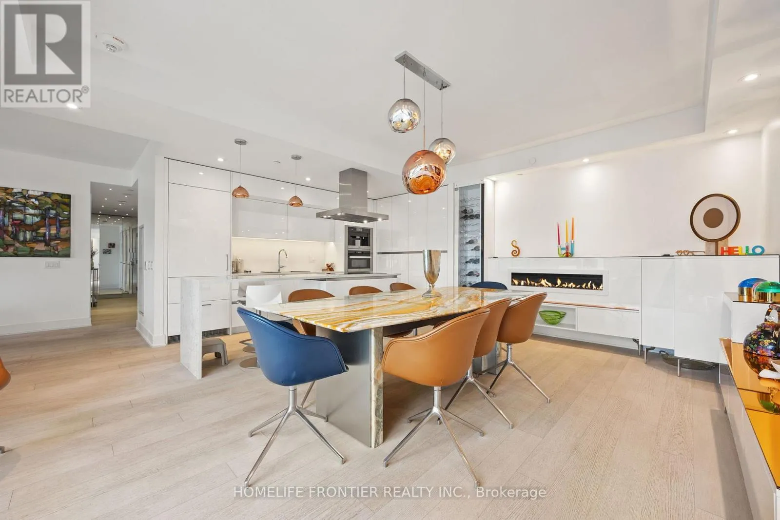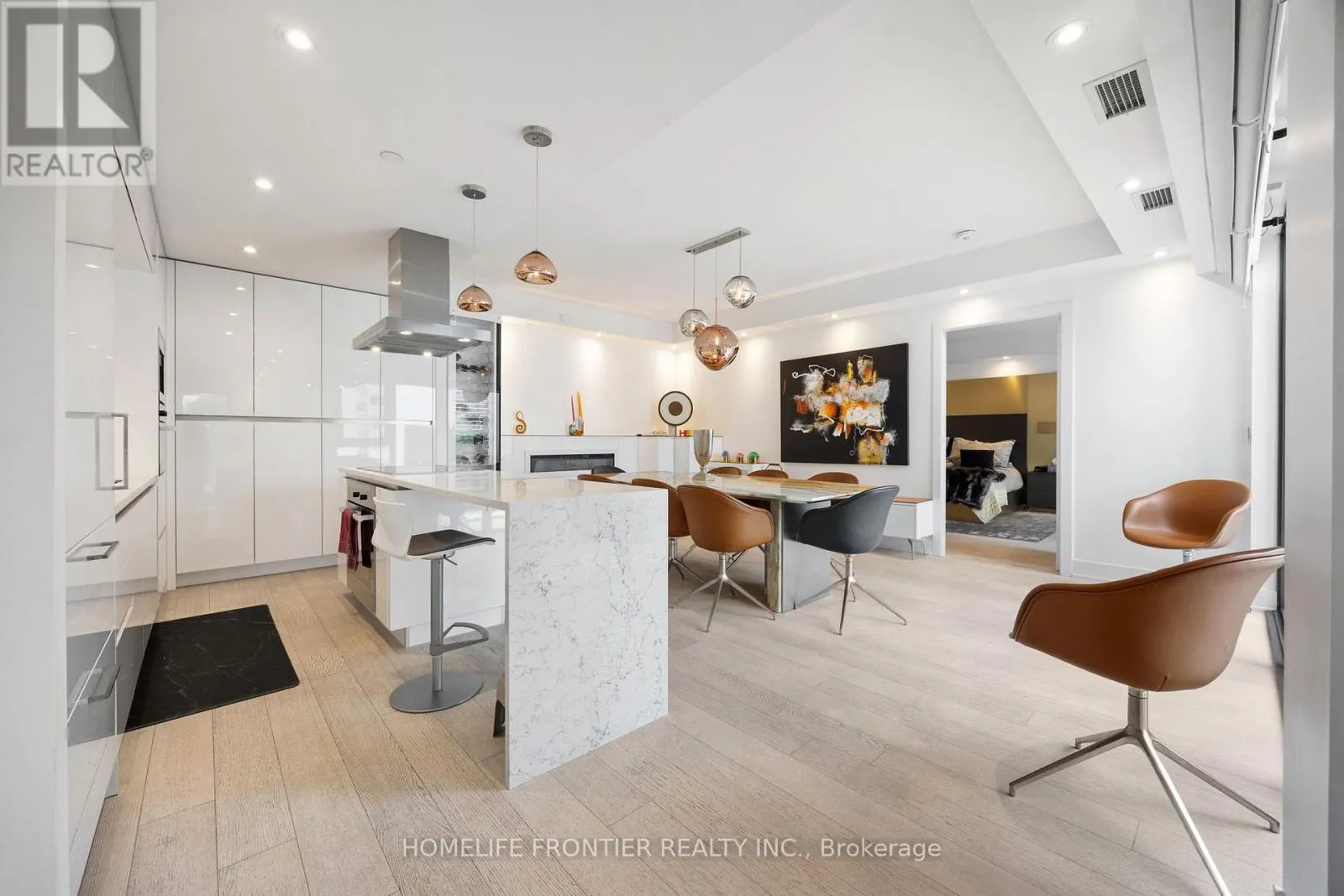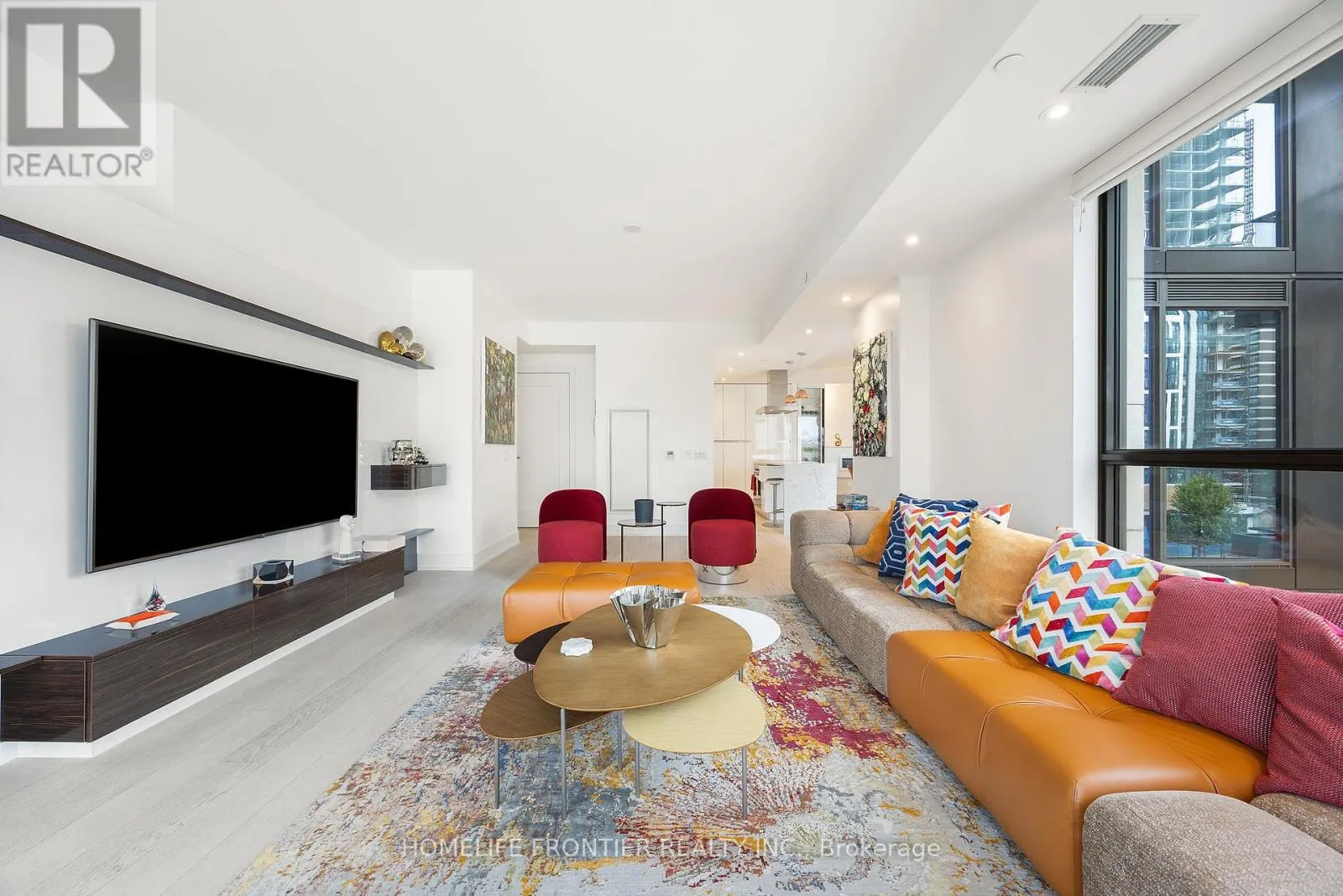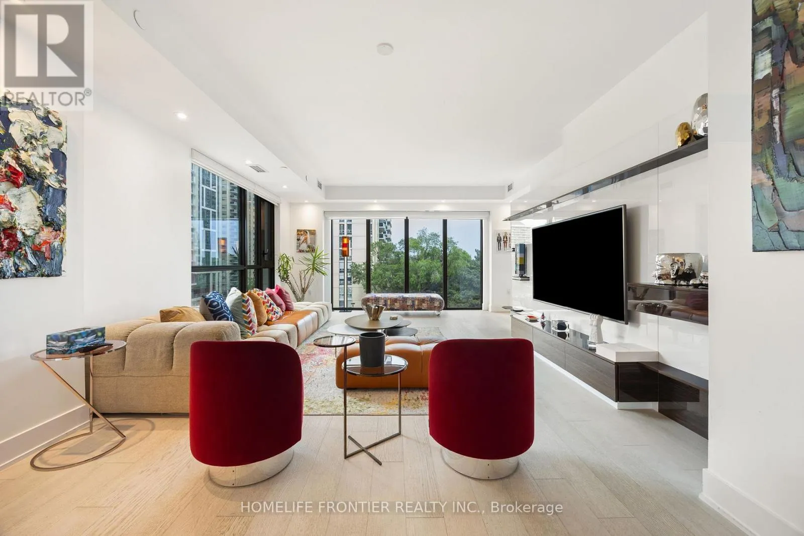 Cross Streets: Yonge St & St Clair Ave. ** Directions: Through Front Entrance. Experience refined luxury in this exceptional two-bedroom, three-bathroom residence in one of Midtown's most prestigious buildings. Thoughtfully designed for both elegance and comfort, this rare layout includes soaring 9-foot ceilings and a spacious family room in addition to open living and dining areas-ideal for entertaining or everyday living. The primary suite offers the feel of a private retreat, complete with two custom walk-in closets and a spa-inspired ensuite featuring upgraded tile and vanities, heated floors, dual sinks, a large walk-in shower, a soaker tub, and a private water closet. The split-bedroom plan ensures privacy, with the second bedroom featuring its own ensuite. A discreet powder room with designer hand-painted walls and elegant ceiling lighting adds a sophisticated touch. Throughout the suite, upgraded wide-plank hardwood floors, recessed pot lighting, and remote-control curtains create a seamless and elevated ambiance. The kitchen is fully customized with upgraded cabinetry, designer lighting over the island and dining area, and top-of-the-line Miele appliances, including a built-in coffee machine and microwave. The family room is enhanced with a bespoke TV wall unit, while a mirrored entrance wall provides a dramatic, welcoming impression. Two private balconies extend the living space outdoors. The residence also includes valet parking and professional valet services, adding everyday ease and convenience. Residents enjoy a full-service concierge and world-class amenities, including a state-of-the-art fitness centre, stylish party room, and a beautifully landscaped rooftop terrace. Located just steps from the shops, dining, and conveniences of Yonge & St. Clair, this home offers the ultimate in urban luxury living. (id:27476)