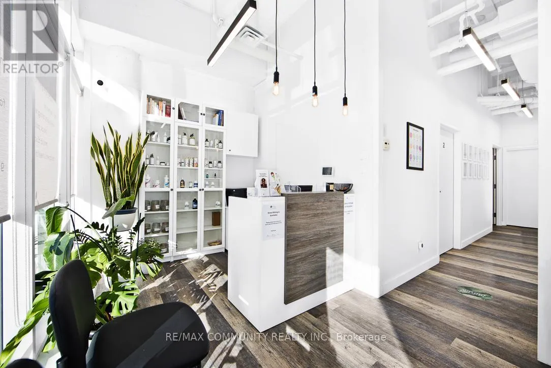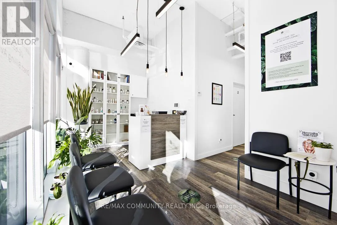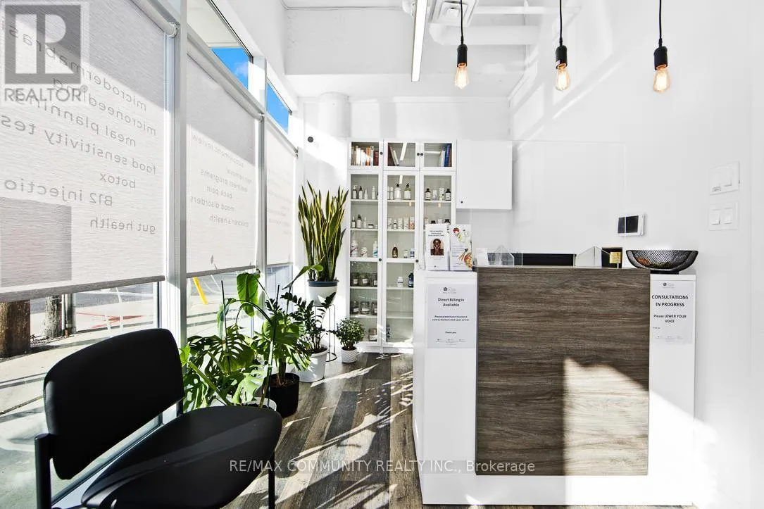 Warden/ Danforth Absolutely stunning and fully modernized retail space, currently operating as a professional doctor's office, located at the northeast corner of Danforth Avenue and Warden Avenue within the prestigious Terrace on Danforth Boutique Condominiums. This prime commercial unit offers exceptional visibility, large street-facing windows, and excellent signage potential, attracting both high foot and vehicle traffic in one of Toronto's most vibrant corridors. Ideally situated just steps from TTC transit, it ensures convenient access for clients and customers. The interior is fully built out and move-in ready, featuring a welcoming reception area, three private offices, a fully accessible washroom, a kitchenette, and a conference room that can also serve as a fourth office. Perfect for professional services, boutique retail, or any business looking to establish itself in a high-demand location, this turnkey space allows you to start operating immediately without additional investment (id:27476)