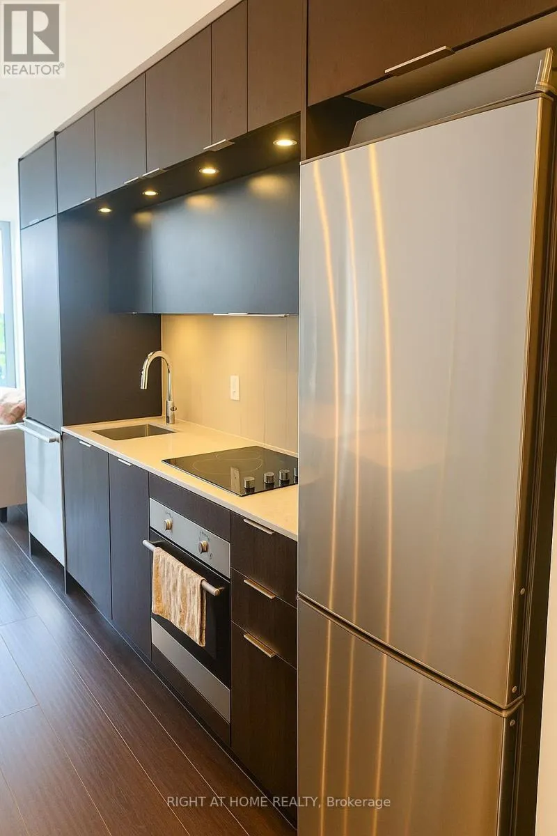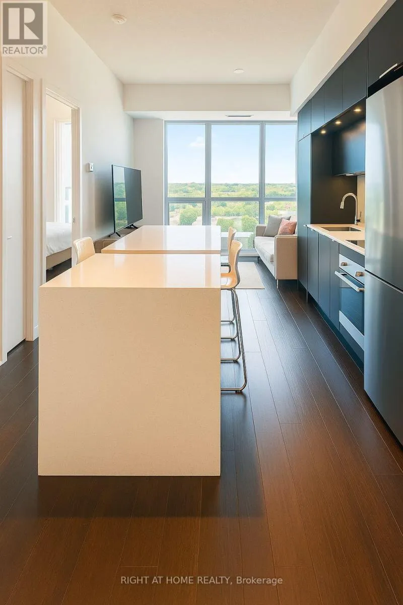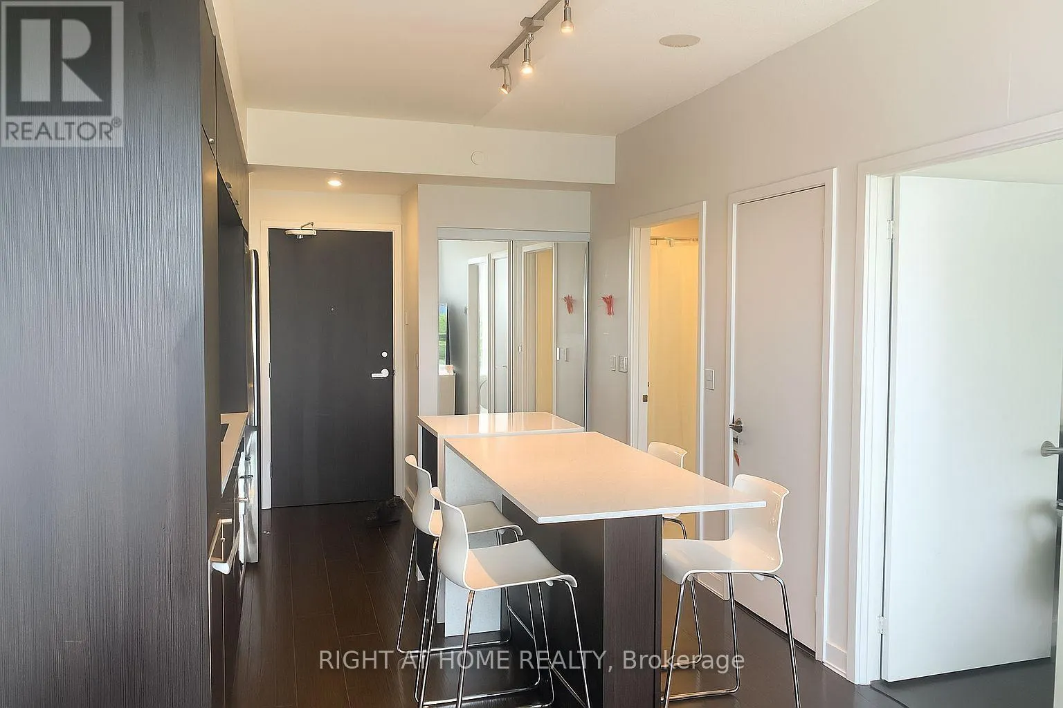 DUNDAS E & SUMACH Fantastic Regent Park location in this bright & open 1-bedroom suite w/ unobstructed northern views over the 6-acre community park & Pam McConell aquatic center in One Park Place by Daniels. Floor to ceiling windows, laminate flooring throughout, modern kitchen w/ quartz counters, stainless steel appliances, and huge kitchen island with dining for 4. Ensuite laundry, 4'6" x 11' open balcony, large above grade locker, and easy streetcar access. Excellent building amenities, 24-hour concierge, visitor parking, restaurants, grocery, and shops nearby. Very well cared for unit in move-in condition. Available immediately. No pets permitted.Large above grade (4th floor) locker measuring approximately 3'2" wide x 4'10" deep x 7'6" tall. (id:27476)