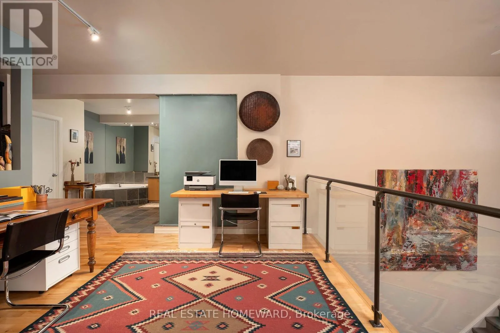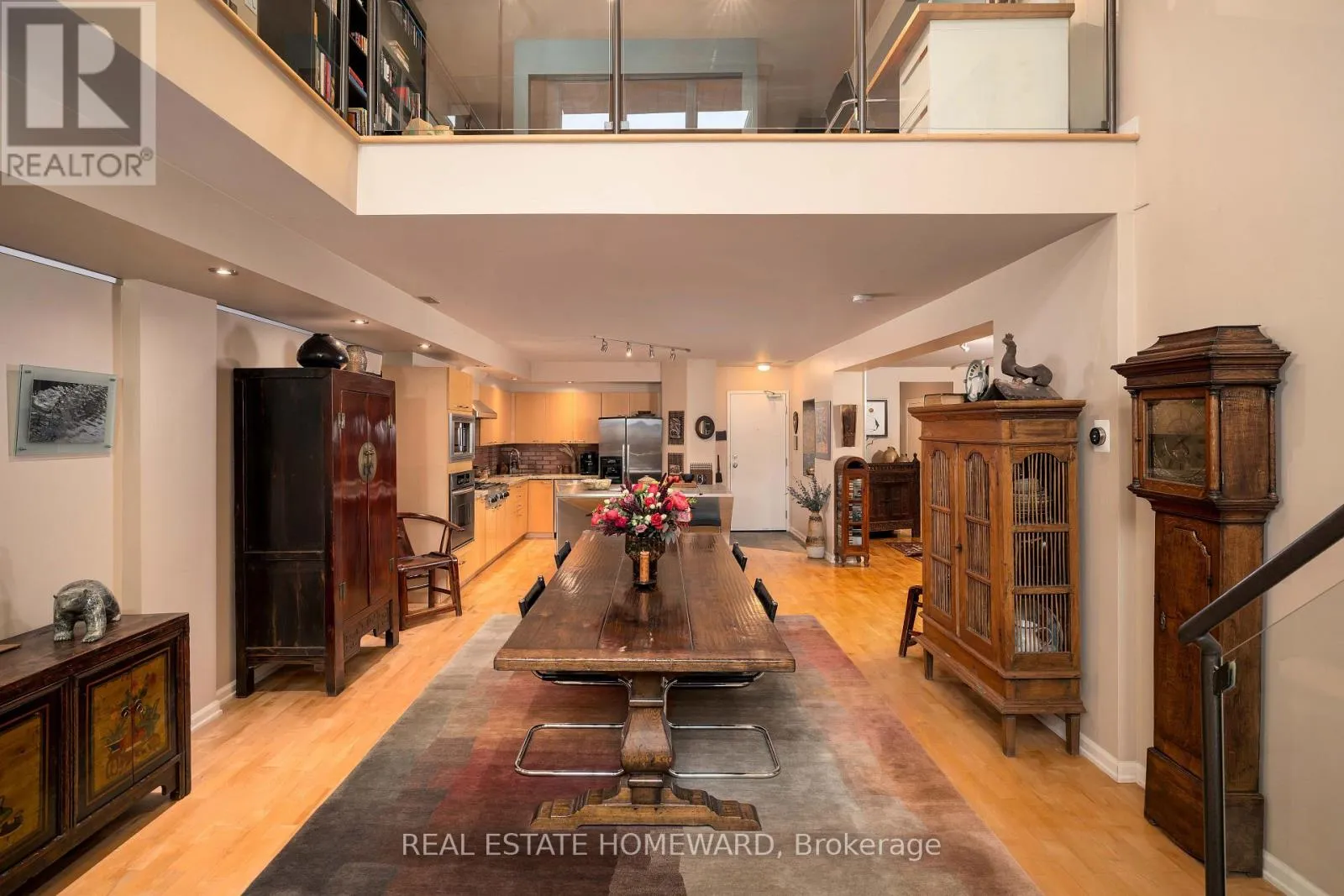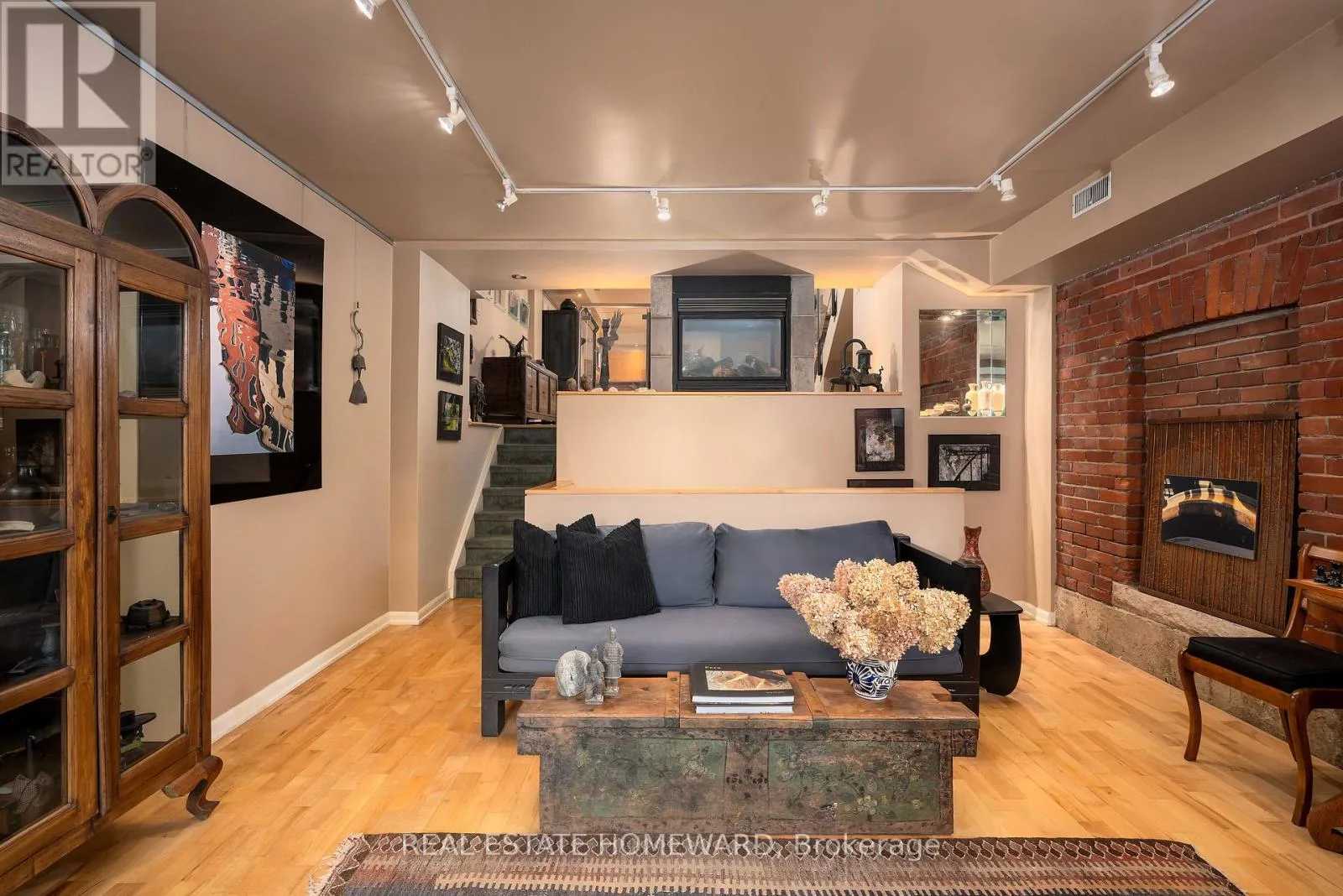 Cross Streets: Pape Avenue & Danforth Avenue. ** Directions: South of Danforth West side of Pape. Unique church loft spanning over 2,250 square feet in desirable Riverdale neighbourhood. Once the Riverdale Presbyterian Church, this is remarkable 2004 Bob Mitchell conversion. Exposed brick walls and sculptural staircases are combined with warm hardwood floors and a two sided gas fireplace. Open and bright with floor-to-ceiling windows from the upper & lower levels yet also private. Enjoy your own private street level patio entrance and second level enclosed terrace. The main floor has a second bedroom with sliding doors and bath ideal for guests and additional entertaining room. The kitchen is outfitted with marble counters, a geometric island & breakfast bar which leads to dramatic dining area framed with 17 ft ceilings and exposed brick walls. A few steps down and you enter an inviting living area with access to additional below grade room ideal for wine tasting, workout space, or reading room. Upstairs is a expansive primary suite containing a 4- pc ensuite, walk-in closet, and open office. This is the largest suite in the building, and one of the most unique and appealing offerings you will find. Steps to incredible schools, parks, subway, shops and restaurants. (id:27476)