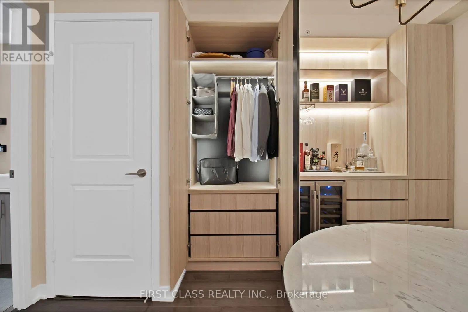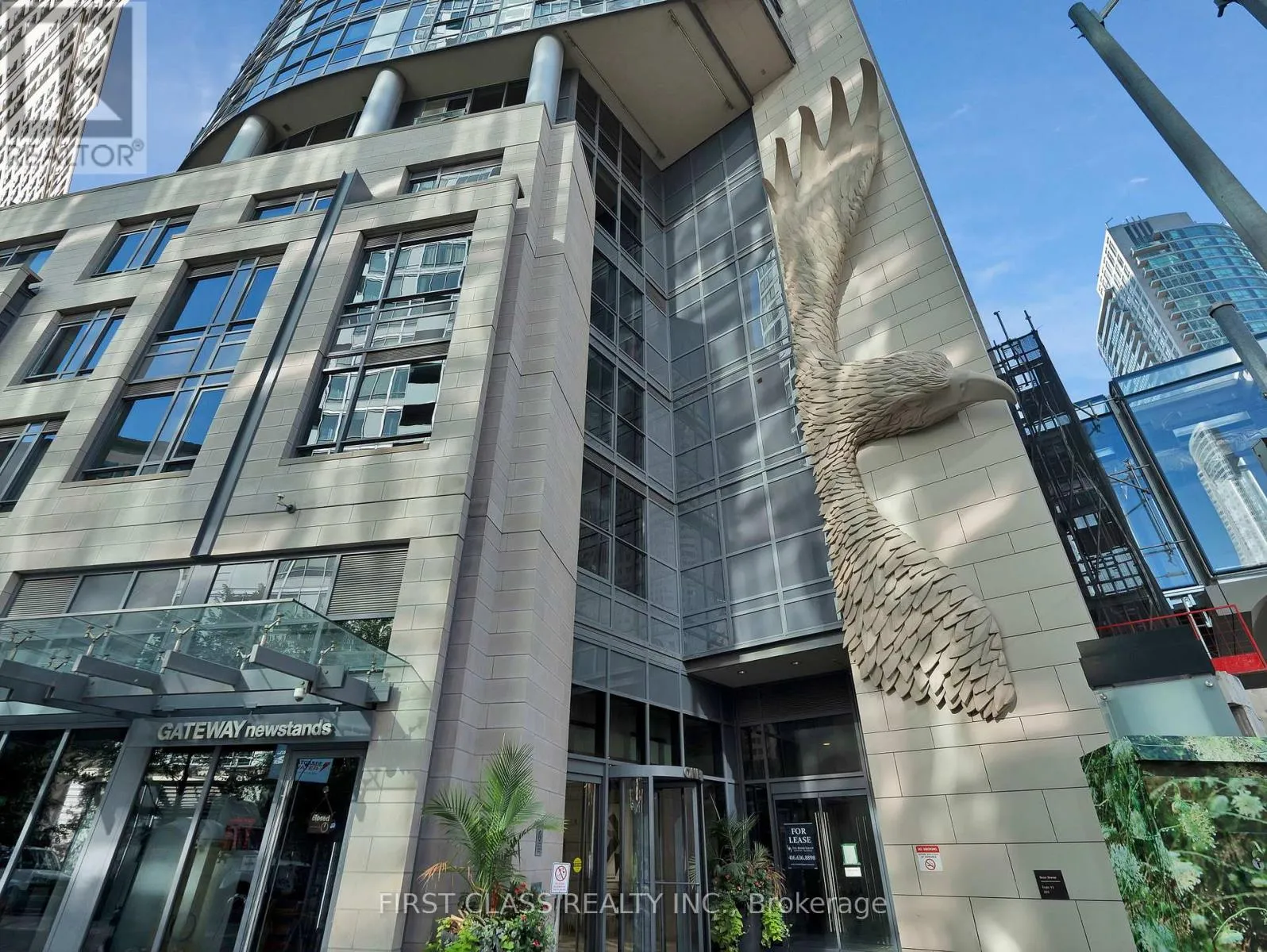 Cross Streets: Yonge St & The Esplanade. ** Directions: South. Your Search Ends Here! Stunning South-Facing 690 Sq. Ft. 1 Bedroom + Den (1 parking & Locker) at Backstage Condos in the heart of downtown Toronto! Enjoy breathtaking lake views overlooking the downtown skyline (CN Tower View) in a suite that blends modern upgrades with unbeatable convenience.Modern Kitchen with centre island, S/S appliances & granite counters, and Hardwood floors throughout Spacious bedroom with His & Hers closets. Custom wall units in den perfect for work or storage. Upgraded features: TOTO toilet, custom bar with built-in fridge, upgraded glass in bathroom, and smart automatic blinds (remote included) Unbeatable Location: Direct PATH connection to CIBC Tower 2. Next door to newly renovated Green P parking. Steps to restaurants, bars, St. Lawrence Market, shops, TTC, GO Bus/Train, Union Station & Financial District. Easy highway access. This suite truly offers the perfect balance of luxury, lifestyle, and location. (id:27476)