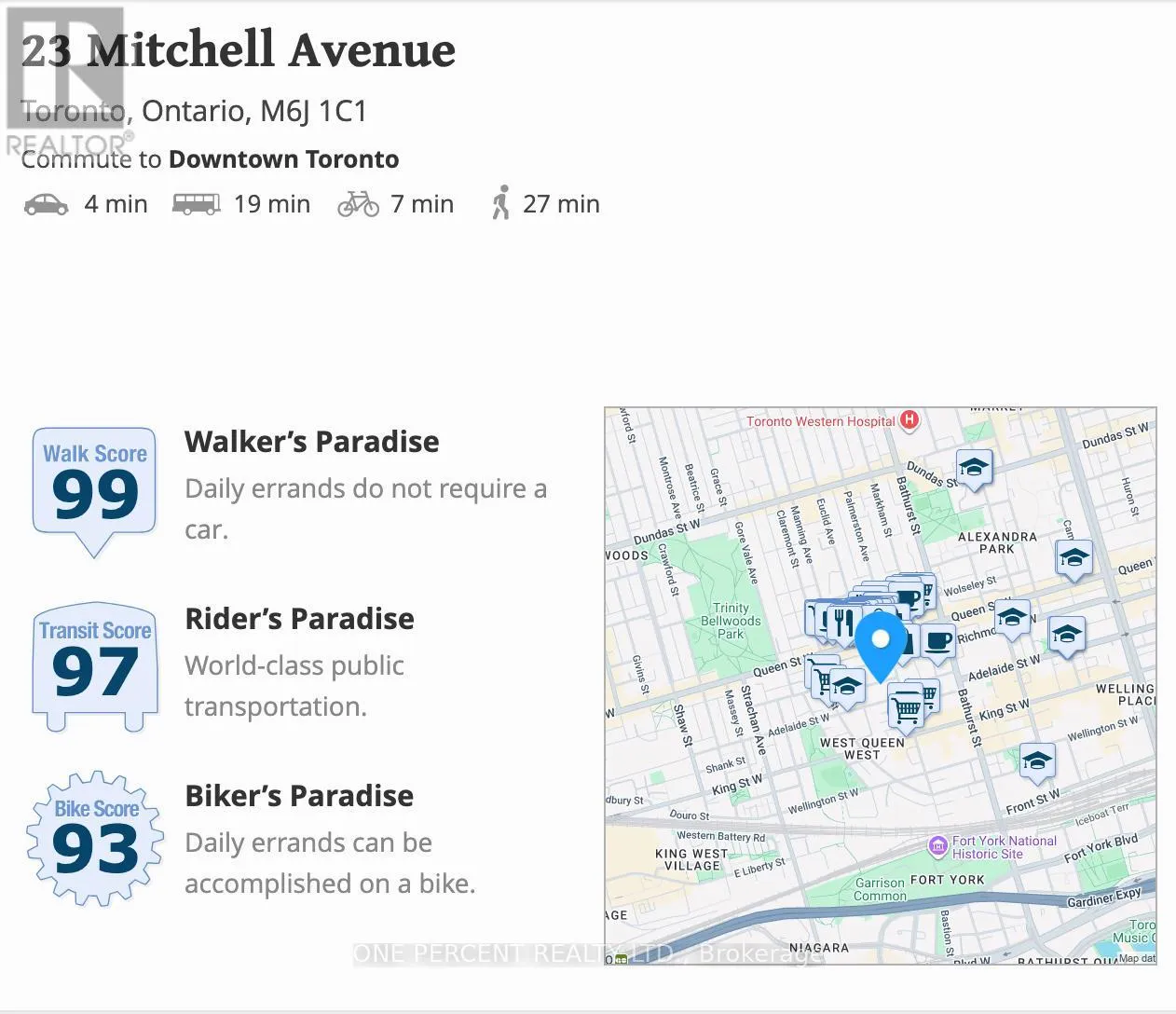 Cross Streets: Queen St W + Bathurst St. ** Directions: https://maps.app.goo.gl/x4UgwtczVAHmTJxh9. Welcome to 23 Mitchell Ave, a renovated detached home that offers a blend of modern design and functional living space. This two-story house, built in 2000 and renovated in 2025, sits on a 25x91 foot lot. It has 4 bedrooms and 3 full bathrooms, plus a main floor powder room. The kitchen is equipped with quartz countertops, a waterfall centre island, and high-end integrated and stainless steel appliances. The sunken living room is spacious, open, and overlooks the backyard. Throughout the main and upper floors, you'll find white oak engineered hardwood floors and LED pot lights. The home has 2,018 square feet of above-grade living space, with an additional 460 square foot lower level and 280 square foot garage. The lower level features a recreation room with heated floors and a walk-out to the backyard. A 3-piece bathroom was added to the lower level during the 2025 renovation, offering the potential for an in-law suite or fifth bedroom. Other features include a separate laundry room, built-in garage with interior access and private brick front pad, providing parking for two cars. Located in the vibrant Queen West neighbourhood, this property is close to many amenities, with an enviable Walk/Transit/Bike Score of 99/97/93. Commuting is a breeze, with the Queen streetcar providing a quick and direct route to the financial district, ScotiaBank Arena and Rogers Centre. The King street car offers quick access to the Distillery District and Leslieville. Once the Ontario Line is complete, the King-Bathurst Station will be in close proximity. Coffee shops and restaurants like Jimmy's Coffee and Terroni abound nearby. The home is also near parks, including Stanley Park and Trinity Bellwoods Park, which offer a range of recreational facilities. Venture south to find easy access to the lakefront. (id:27476)