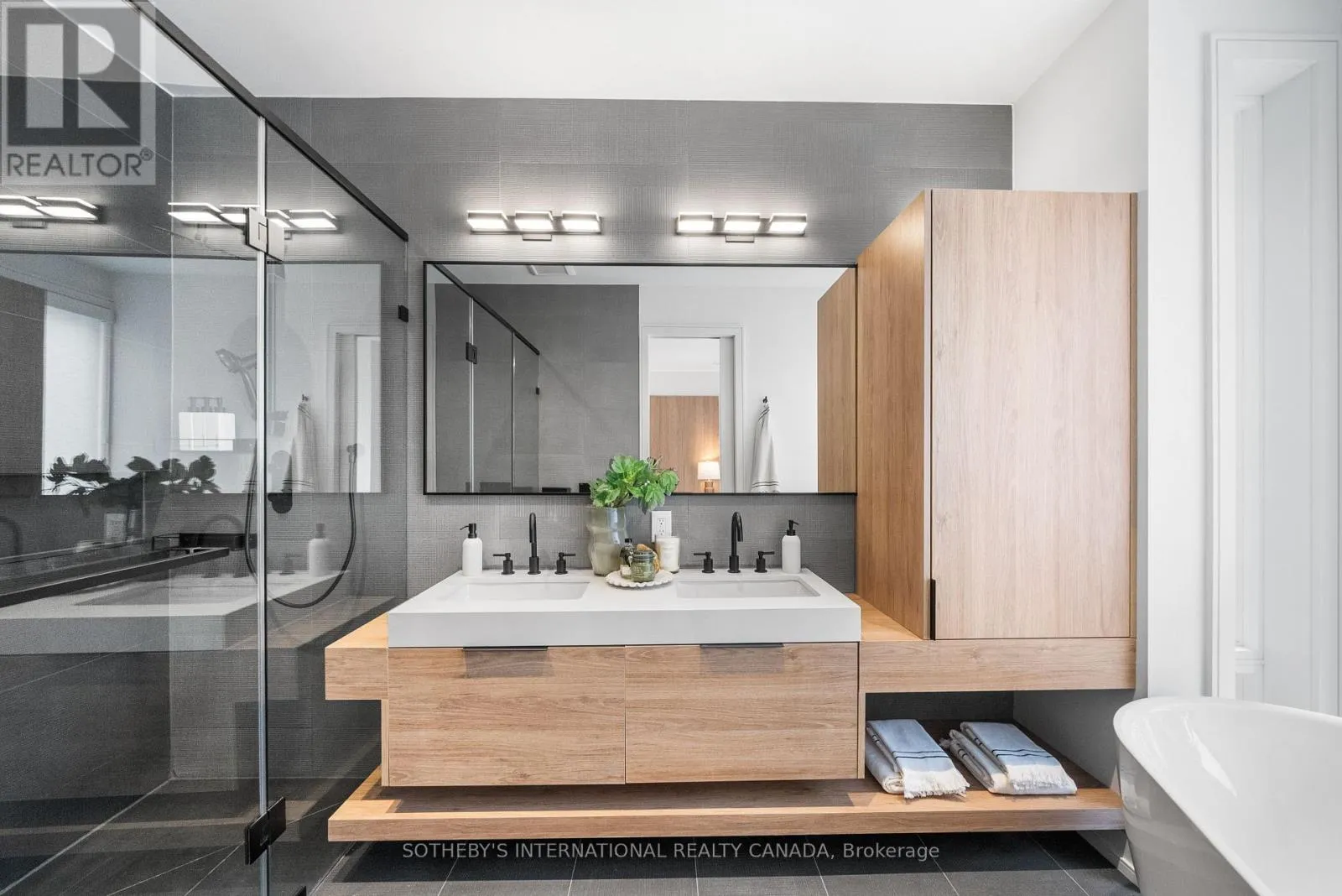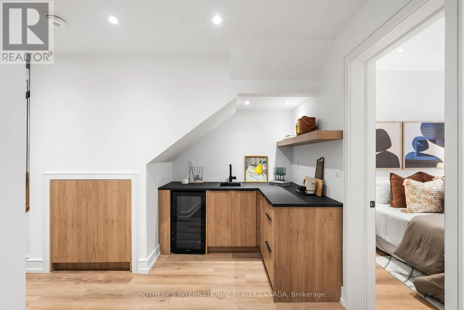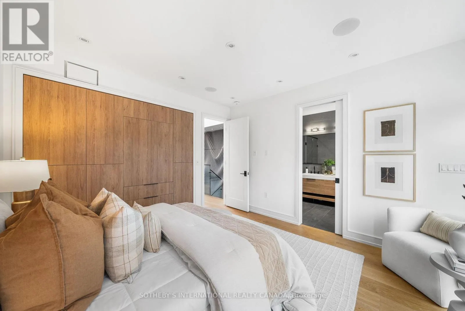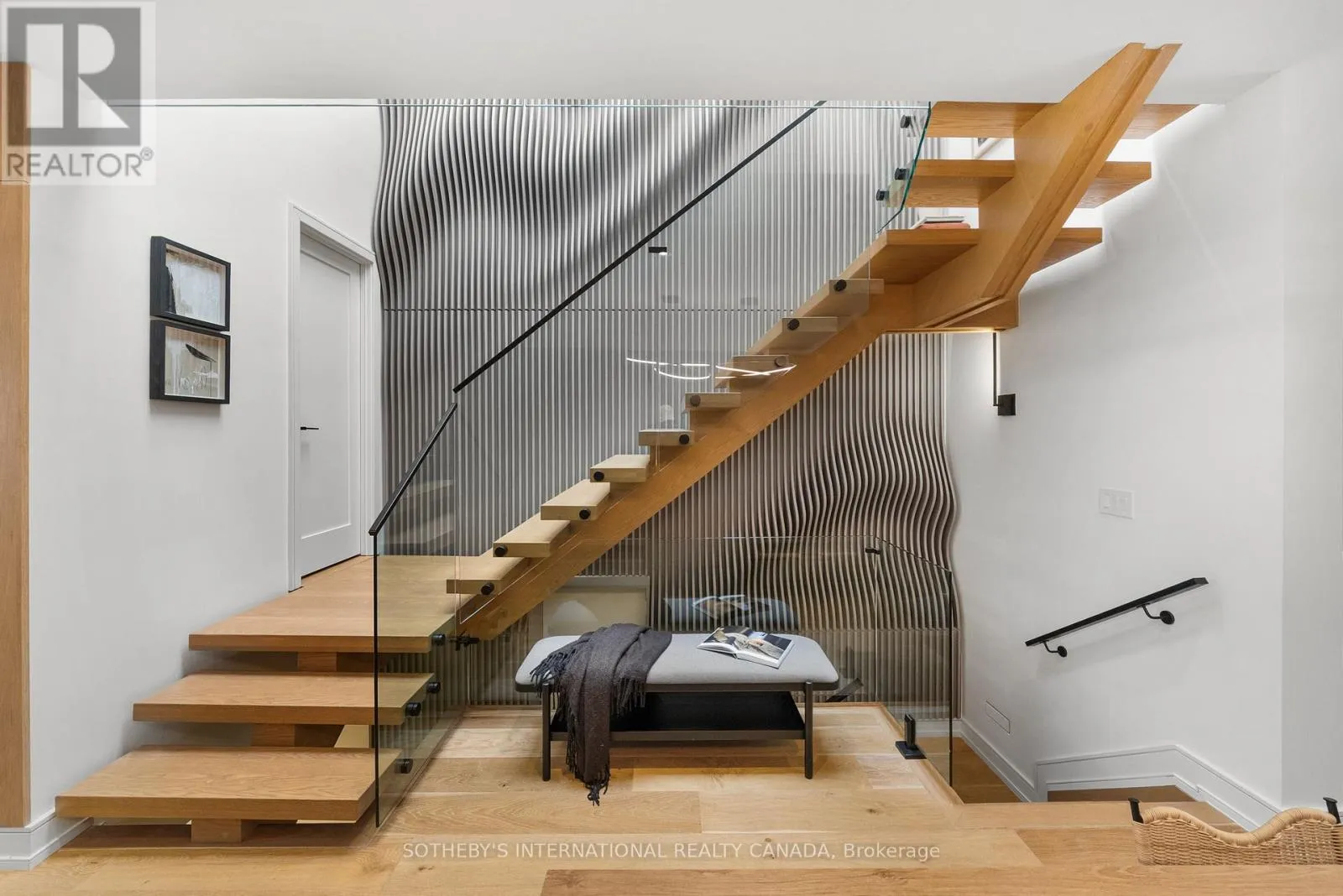 Cross Streets: Coxwell Ave & Cosburn Ave. ** Directions: Please, follow your GPS. From the moment you arrive, 83 Virginia Avenue stands apart with its striking wood façade and carefully considered design. Inside, the spaces are filled with light, natural materials, and a sense of balance that makes the home both sophisticated and comfortable. The main floor flows effortlessly between living, dining, and kitchen areas framed by floor-to-ceiling windows and rich hardwood flooring. A gas fireplace adds warmth, while the custom kitchen combines quartz counters, integrated dining, and built-in cabinetry designed for everyday living. At the rear of the home, the family room features warm custom-built-ins and opens through a glass door to a lovely private garden with a beautiful garden shed. A sculptural staircase ascends beside a dramatic 27-foot feature wall crowned by a skylight, drawing natural light deep into the home. Upstairs, the primary suite offers a calm retreat with custom wall-to-wall built-in closets, floor-to-ceiling windows, and a spa-inspired ensuite with a walk-in shower and deep soaking tub. Three additional generously sized bedrooms and a well-appointed laundry room- illuminated by its own skylight- complete the second level. The lower level extends the living space with a bright recreation room featuring a wet bar, built-in storage, and a large glass door that opens directly to the backyard. A convenient side-door entry enhances functionality, and a private guest bedroom and full bath provide comfort and flexibility for visitors. A built-in garage and private drive offer parking for three vehicles. Every finish, fixture, and proportion reflects careful thought- creating a home that feels both refined and welcoming. (id:27476)