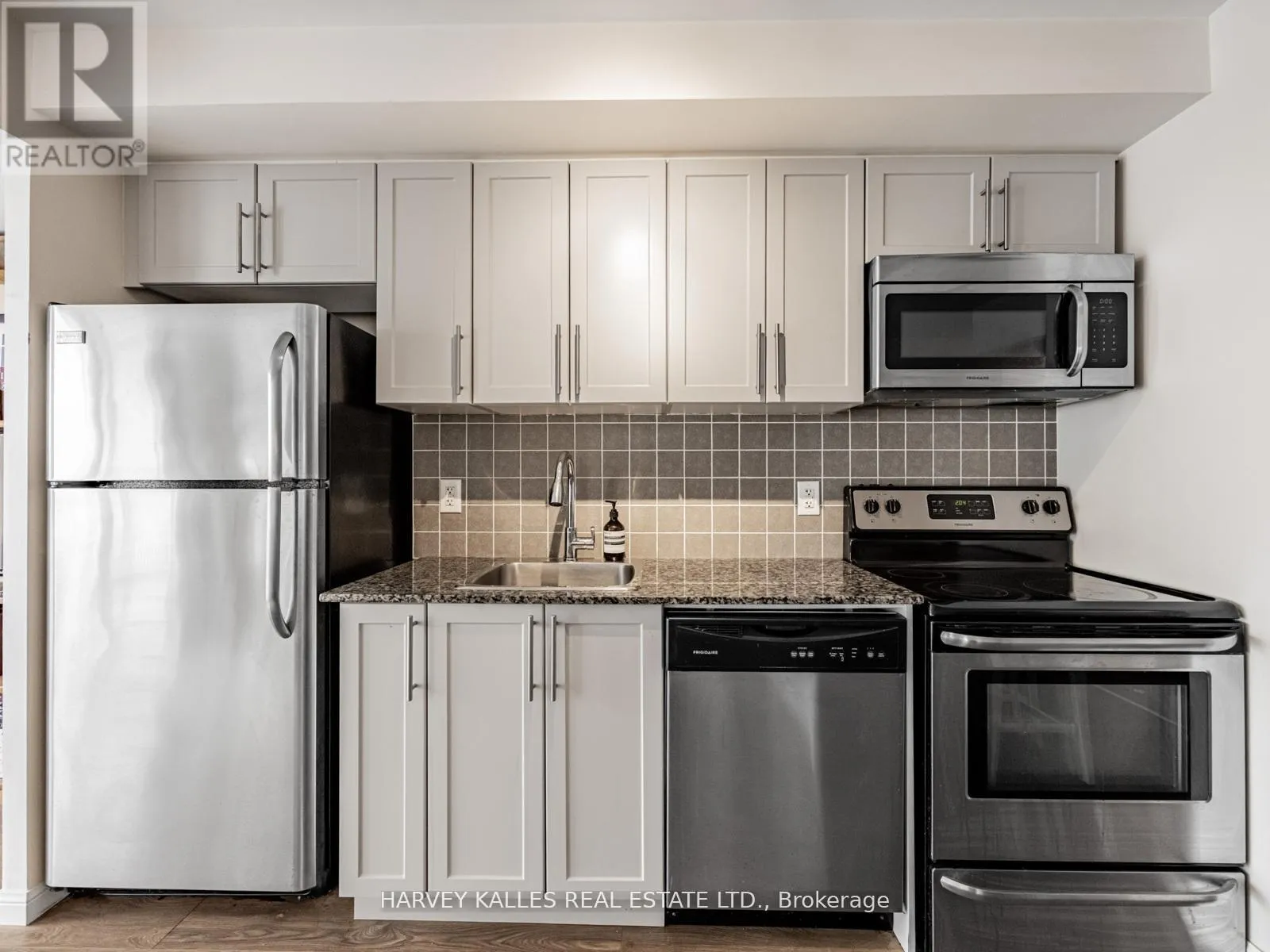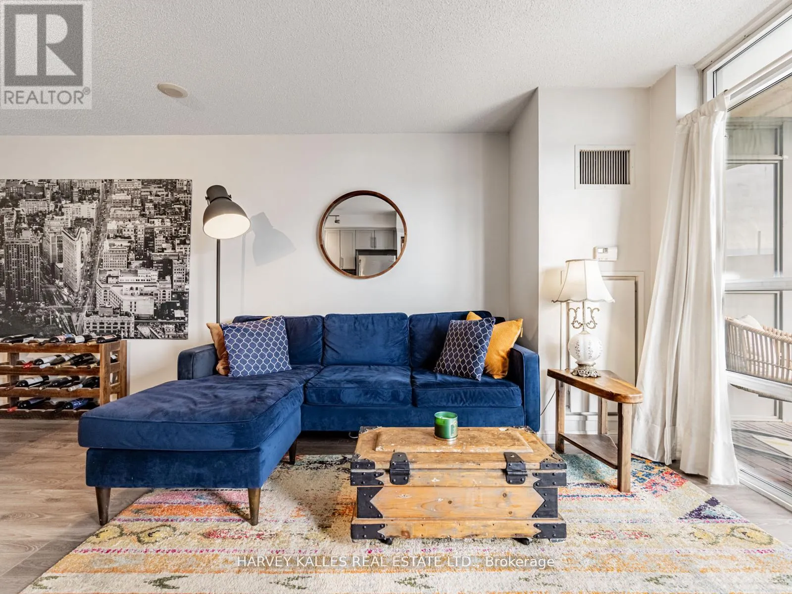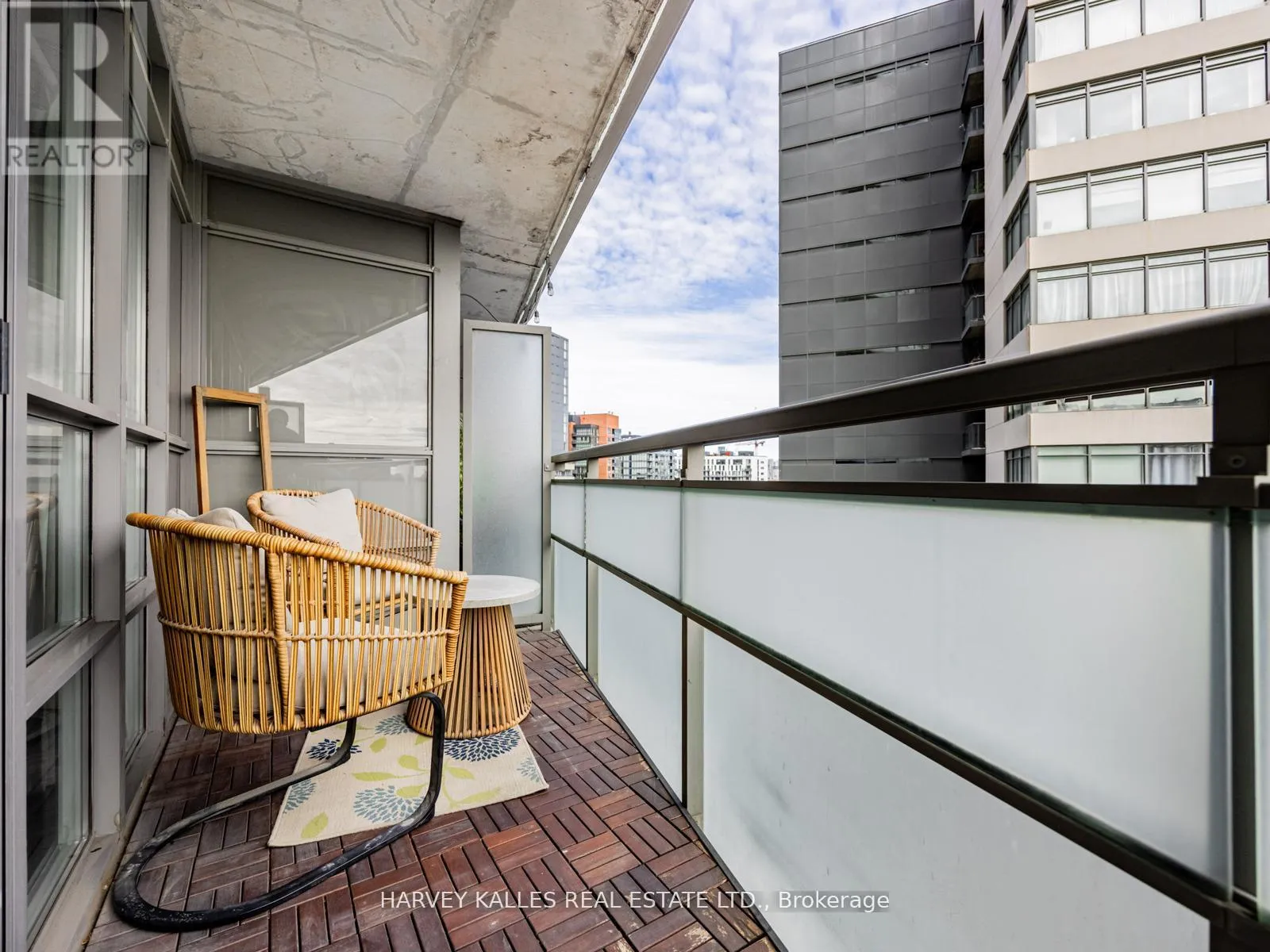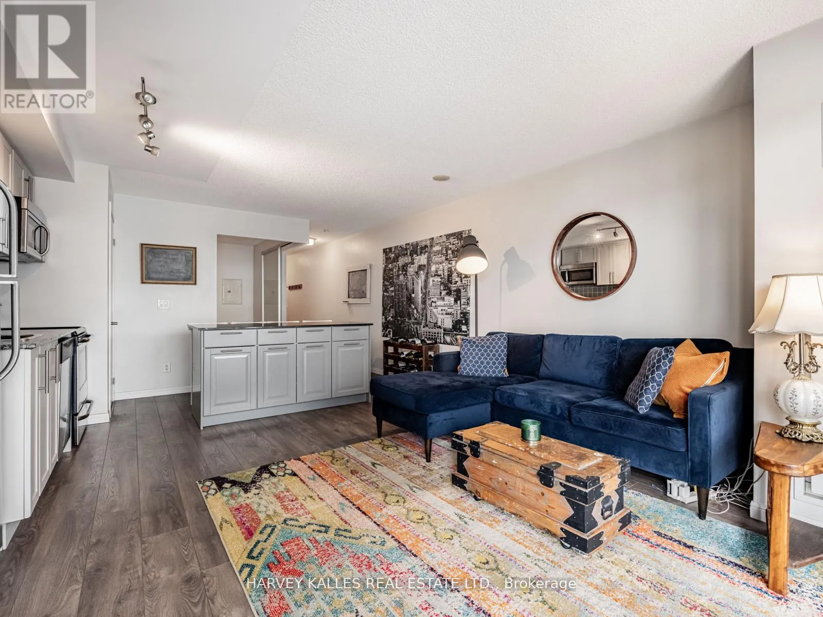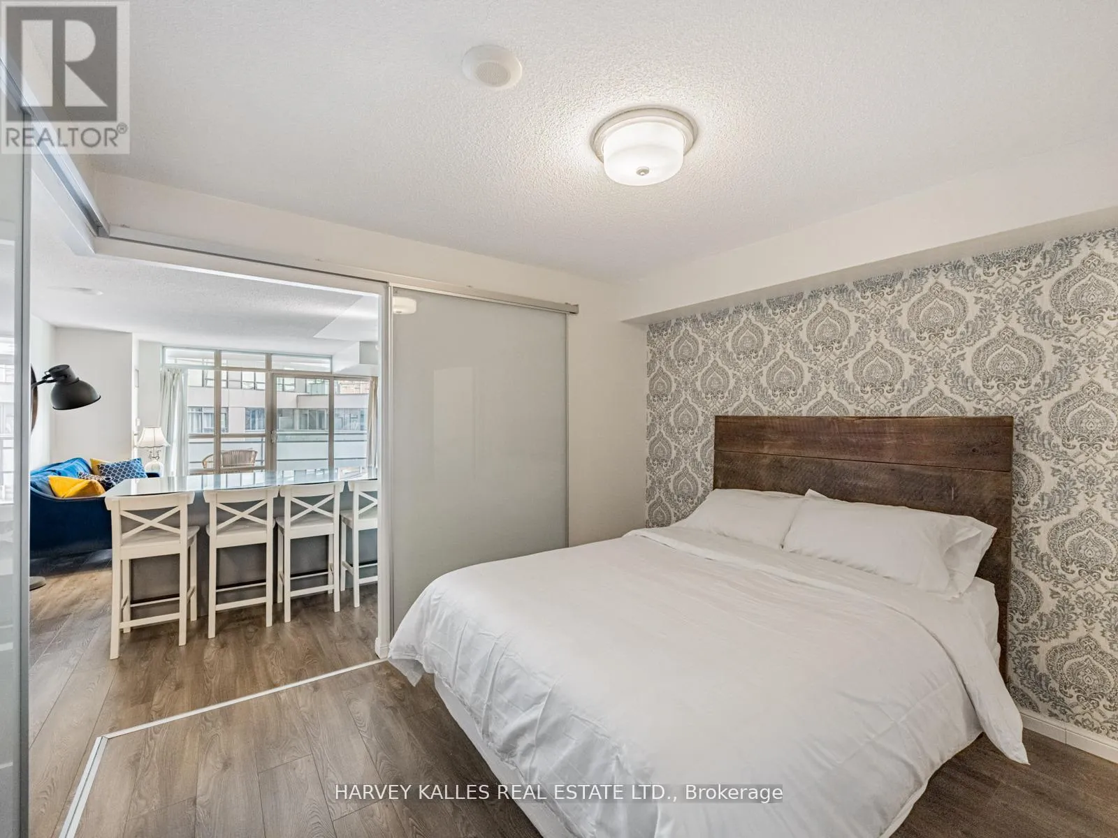 King/Dufferin Beautifully renovated and thoughtfully designed, this suite features a gourmet kitchen with updated cabinetry, stainless steel appliances, granite counters, and a unique extra-large movable centre island with built-in storage and seating for four. New laminate flooring throughout and a balcony with stunning city and lake views. The spacious primary bedroom offers a 4-piece ensuite and mirrored storage cabinet. Approximately 625 sq. ft. of perfectly laid-out space with excellent flow. Enjoy amazing amenities including access to a dog run. Located in the best part of King West-steps to restaurants, shops, public transit, and more. Parking and locker included. (id:27476)