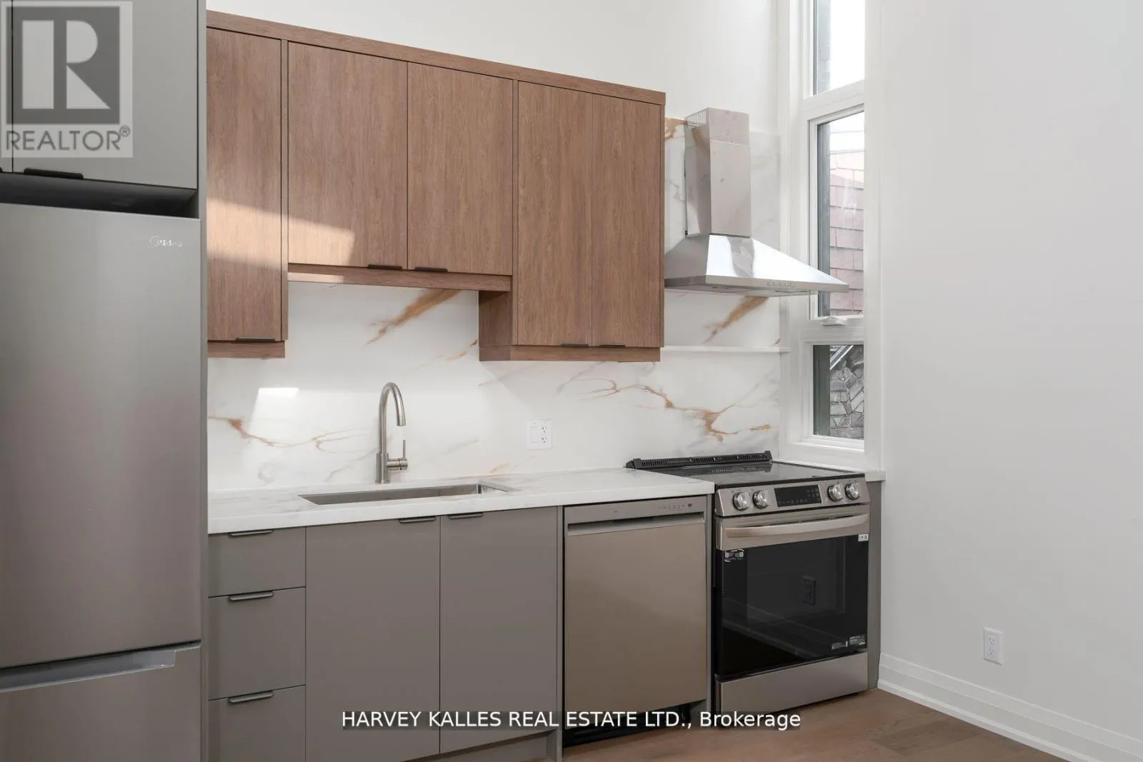 Queen St & Spadina Ave Perched atop this newly renovated Victorian era Brownstone, this stunning 2 magical bedroom, 1 Bath apartment with windows and elevated ceilings and skylights, invites more natural sunlight and vibes like an artist's loft. This apartment is one of 4 in this property, bright, modern, tastefully designed with higher end finishes, near the University Corridor - just North of Queen St. West, between University Ave. and Spadina Ave. - in one of Toronto's most vibrant neighborhoods with the highest walk scores in the business. 24 Sullivan Street sits on a quiet and friendly one way street. Ideal inhabitants may be professors, doctors, executives, professionals, or serious students who appreciate quiet, comfort, higher-end finishes and design, and will appreciate close proximity to all the vibrant areas of Toronto. Engineered hardwood flooring, Brand new modern kitchen with Stainless Steel appliances and modern showers and layouts. A modern bath with a large shower. Closets in each bedroom. Common area includes open concept family, dining and kitchen. Ensuite laundry and a separate entrance through the front or rear of the unit. Access to backyard via large fire escape stair. One parking spot is reserved for this unit - if required. This Semi vibes with New York appeal, and is easy on the eyes. Enjoy quick access to Spadina and Queen streetcars, Chinatown, Kensington Market, Queen St. W, OCAD, AGO, UofT, George Brown, TMU, all the major downtown Hospitals and all the TTC and GO services just minutes away. This unit may be rented with one parking spot. (id:27476)