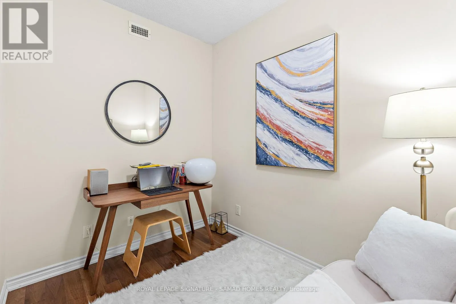 Royal York Rd & Dundas St W This is the home for someone who understand that true value isn't only about price - it's about where you live, who surrounds you, and how you feel everyday you come back from work. Did you know that Humber Valley Village, one of Etobicoke's most established and exclusive neighborhoods? Also, how important is it for you to have a smart design that makes the space feel larger than its actual size allowing your home to become your sanctuary? Come in and explore what practical living feels like and the benefits of having a proper den that functions as a genuine home office or flex space, the living and dining areas are bright and inviting, and the kitchen is cleanly designed with full-size appliances and smart storage. And a spacious private bedroom that is ideal for someone who values quiet evenings and an orderly routine. The unit comes with fitted with a premium parking and locker. This condo is for you if you recognize that that lasting value is never accidental and that it really does matter where you live. The James Club is known for its calm, well-managed environment and a mature resident profile. This is a building that attracts professionals, downsizers, and long-term owners-people who value respectful neighbors, consistency, and a sense of pride in where they live. Amenities include concierge service, an indoor pool, fitness center, guest suites, and refined common areas, all maintained with care rather than excess. Outside your door, the neighborhood does the heavy lifting. Surrounded by high-end homes and tree-lined streets, Humber Valley Village offers the kind of stability and prestige that can't be manufactured. Walk to Humber River trails and James Gardens, enjoy nearby golf courses, or take advantage of the convenience of Humbertown Shopping Centre just steps away. Everything you need is close-yet the area remains quiet, residential, and composed. (id:27476)