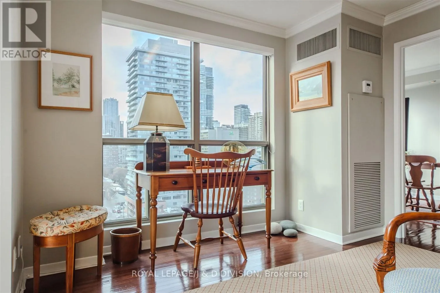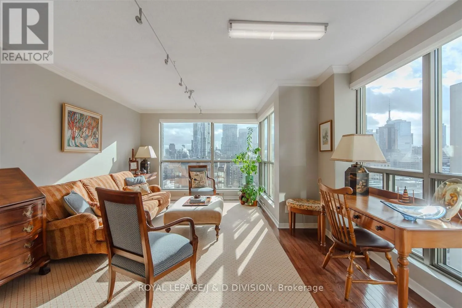 Cross Streets: between Carlton & Gerrard. ** Directions: Across from Allan Gardens. An absolutely wonderful layout is a highlight of this spacious (approx. 1170 sq. ft.) 2+1 bedroom/2 bathroom Downtown Toronto Garden District condominium. The prime south west corner offers bright panoramic city skyline views. Features include a formal entrance hall and foyer with ample closets, living room with both south and west views. A formal separate dining room with corner windows is a "bonus room" and could also be utilized as a family room, den or 3rd bedroom. Modern white kitchen features both Bosch and Miele S/S appliances. Principal Bedroom has accent lighting, two double mirrored closets & 5 piece ensuite. Second bedroom with mirrored closet & south views. Main 4 piece bath. Walk-in laundry room. Finishes include hardwood strip floors, crown mouldings, track and accent lighting, prime parking & storage room. Walk to Eaton Center, Historic Parks, MLG Loblaws, TMU, subway, restaurants and all centre city attractions. (id:27476)