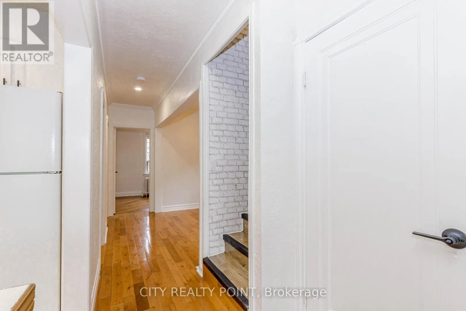 Royal York & Lakeshore Beautiful Updated Main/Upper part of a Detached 2-storey home on wonderful lot in Mimico. Walk to the lake in under 5 mins, enjoy the wonderful community of Mimico with a 15 minute drive to downtown. Walking distance to the Mimico Go Station. Real hardwood floors on the main level, with crown moulding throughout the freshly painted home. A white, bright kitchen that overlooks the living area, adjacent to a separate dining room. The main-floor primary bedroom is steps from a full 4-piece bath. Upstairs offers two spacious bedrooms with closets and laminate flooring & LED Lighting. Enjoy a large fenced yard a glass partition fence. Located just steps from the shops on Lake Shore Blvd, 6 minute walk from the lake and 2min drive to Mimico Go Station, 24-hr streetcar, parks, San Remo Bakery, schools, and more. (id:27476)