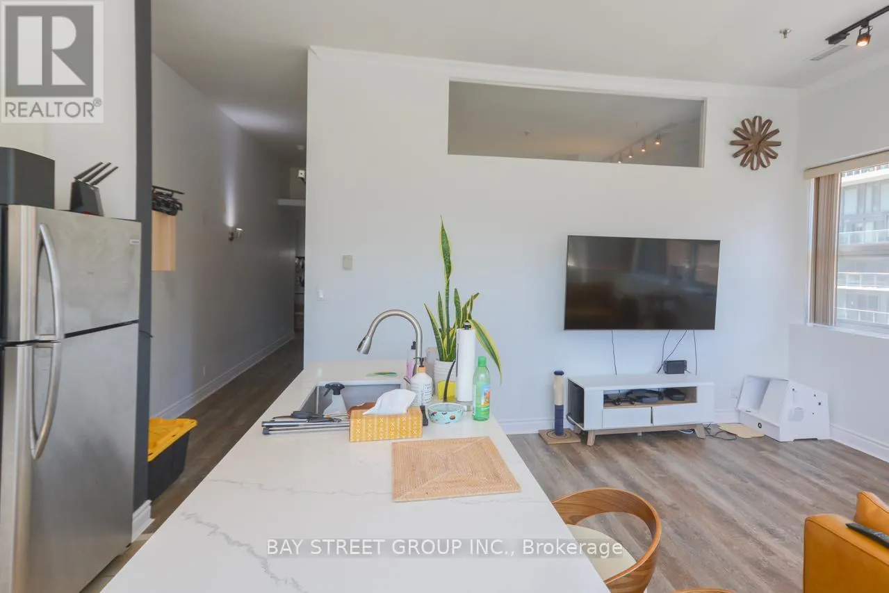Cross Streets: King St & Bathrust St. ** Directions: North of King Street. Discover a rare and exclusive opportunity to live in the iconic Clock Tower Lofts, a vibrant urban living experience in the heart of King West. This stunning, bright South-East facing corner unit (Bathed in natural sunlight every day!) boasts soaring 11-foot ceilings and an ideal split-layout with two spacious bedrooms, both bedrooms have large windows and enough space to accommodate Queen-sized beds. The primary suite features spectacular 180-degree views, a generous walk-in closet, and a 4-piece ensuite. The open-concept living and dining area is complemented by a modern kitchen with Italian quartz countertops, a large center island, sleek stainless steel appliances, and barn-style sliding doors. Hardwood floors run throughout. Step outside and experience one of the best rooftop patios in the city, offering 360-degree views, BBQ areas, and plenty of space to entertain. Perfectly situated at the corner of Bathurst and King, you're just steps from restaurants, cafes, shops, nightlife, grocery stores, and public transit. With 1 underground parking space included, this is downtown living at its finest, a must-see! (id:27476)